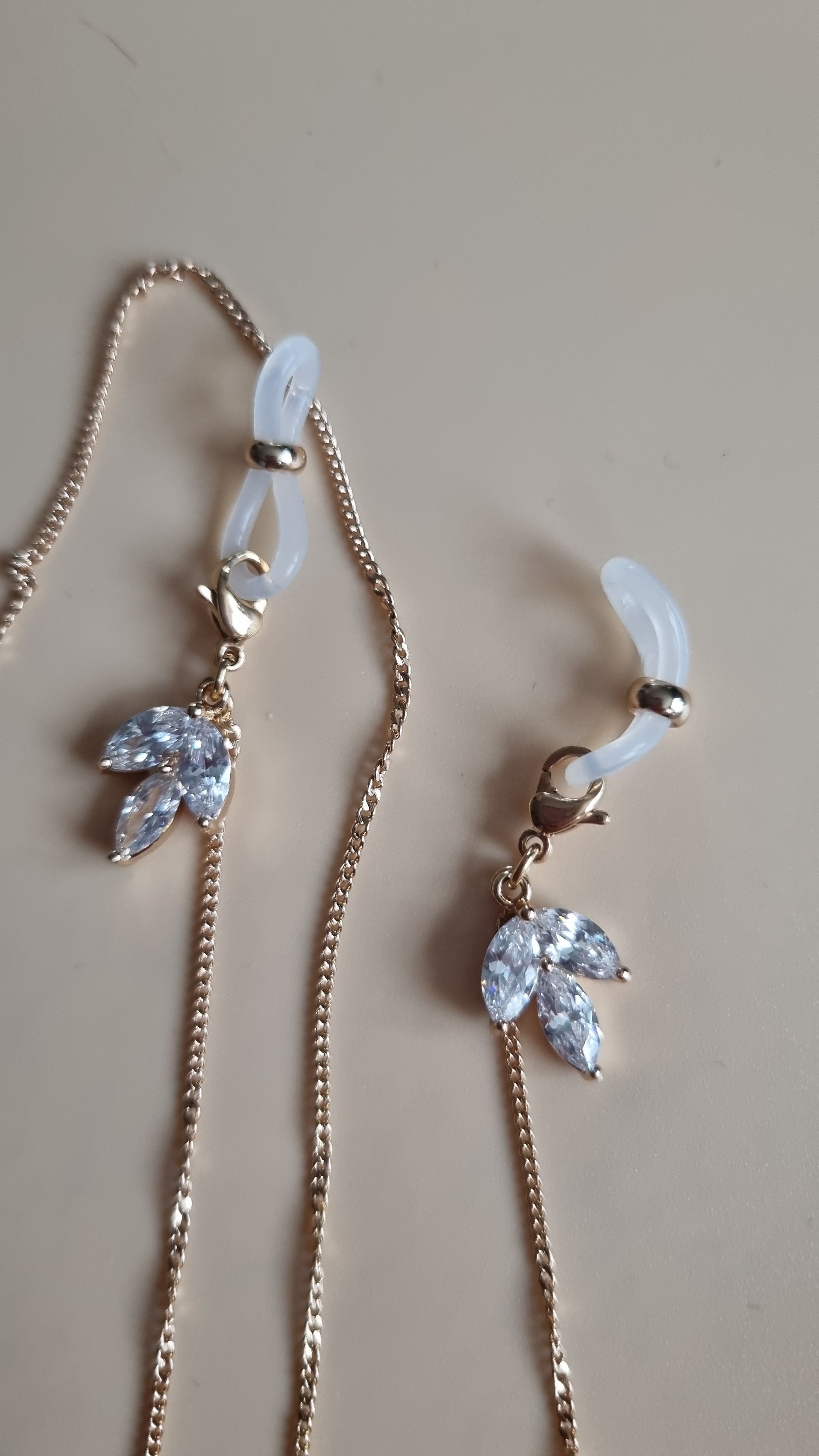 18kr.auksuota akinių laikiklio grandinėlė, atspari vandeniui be nikelio, hipoalerginė su cirkonio akmens kristalu