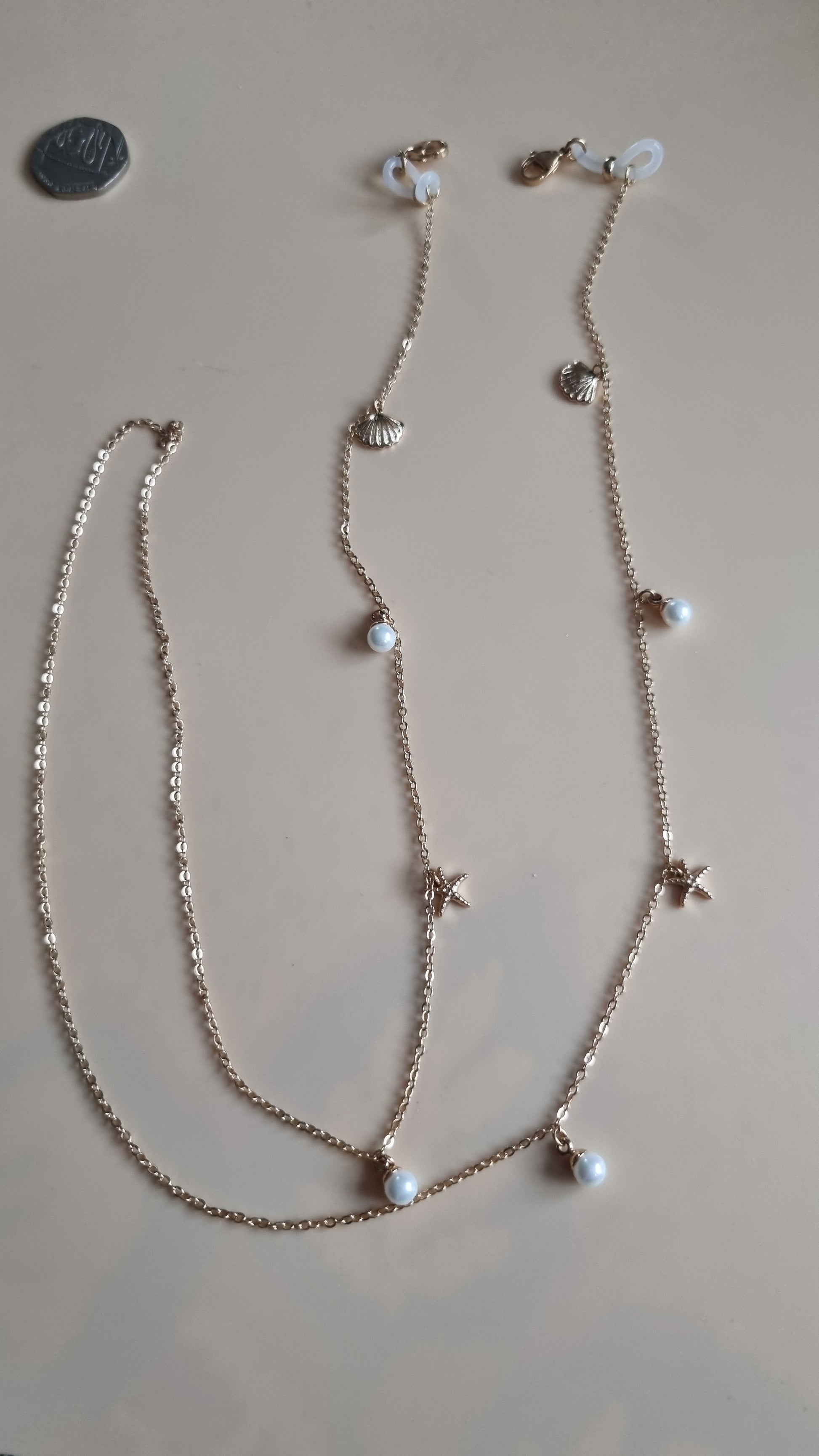 18kr paauksuota akinių laikiklio grandinėlė, atspari vandeniui be nikelio su gėlavandeniu perlu