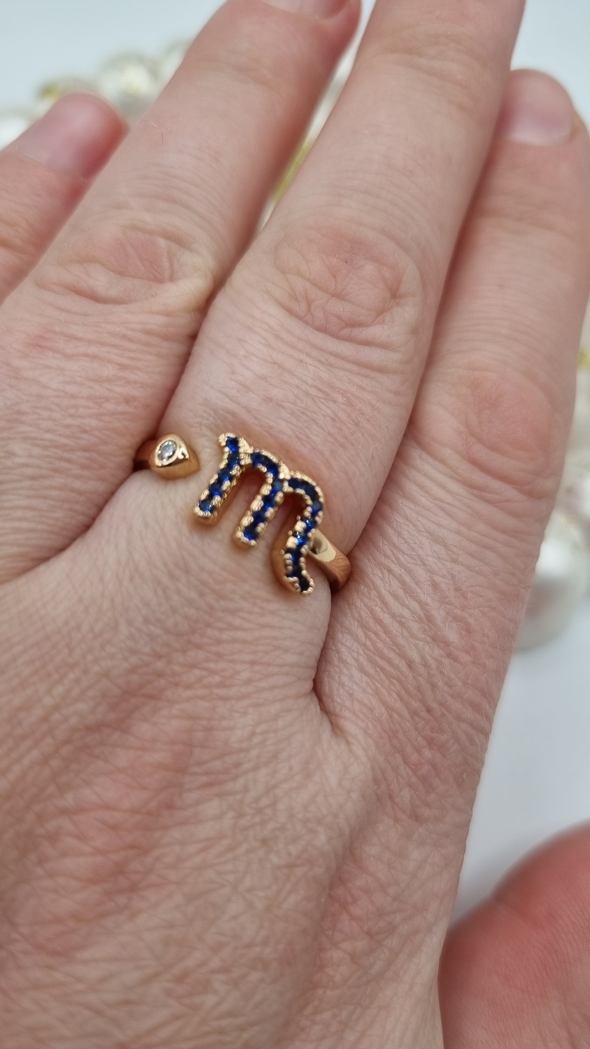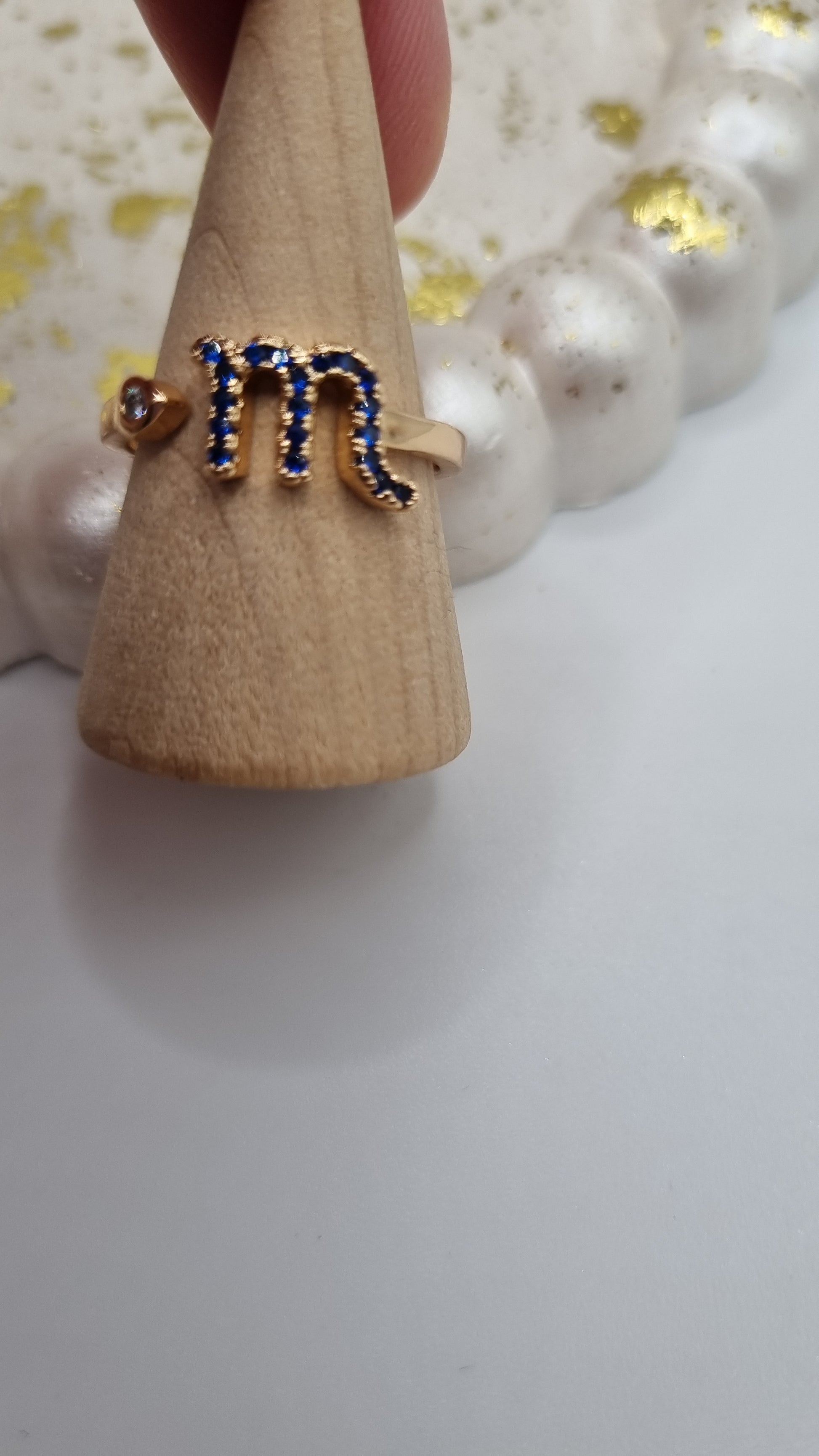 18kr.auksuotas žiedas su cirkonio akmeniu mėlynu be nikelio hipoalerginis