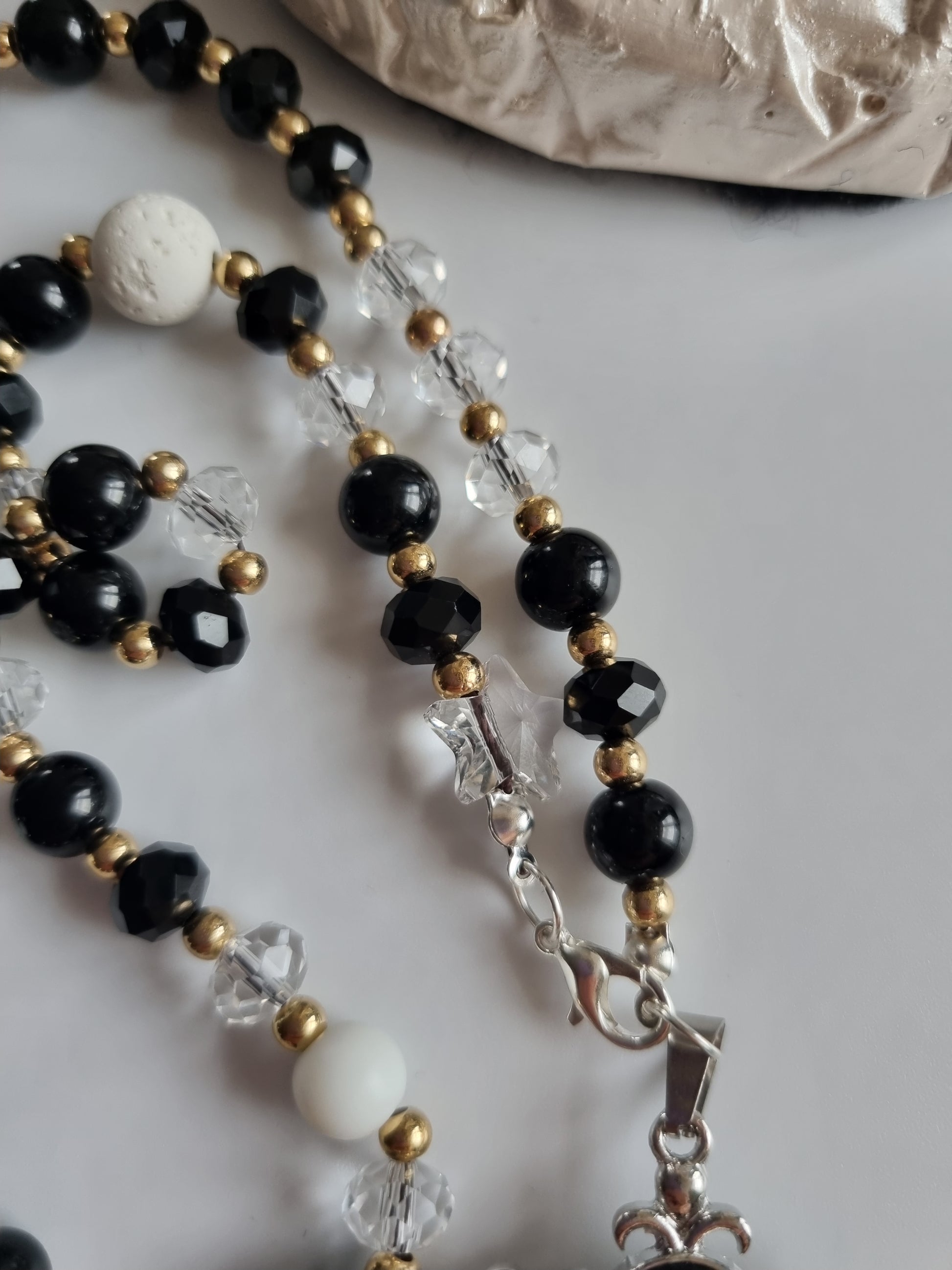 Automobilių dekoro aksesuarai veidrodinis pakabukas rankų darbo su sw.crystal start, brangakmenių juodas oniksas, stiklo krištolas ir juodas oniksas