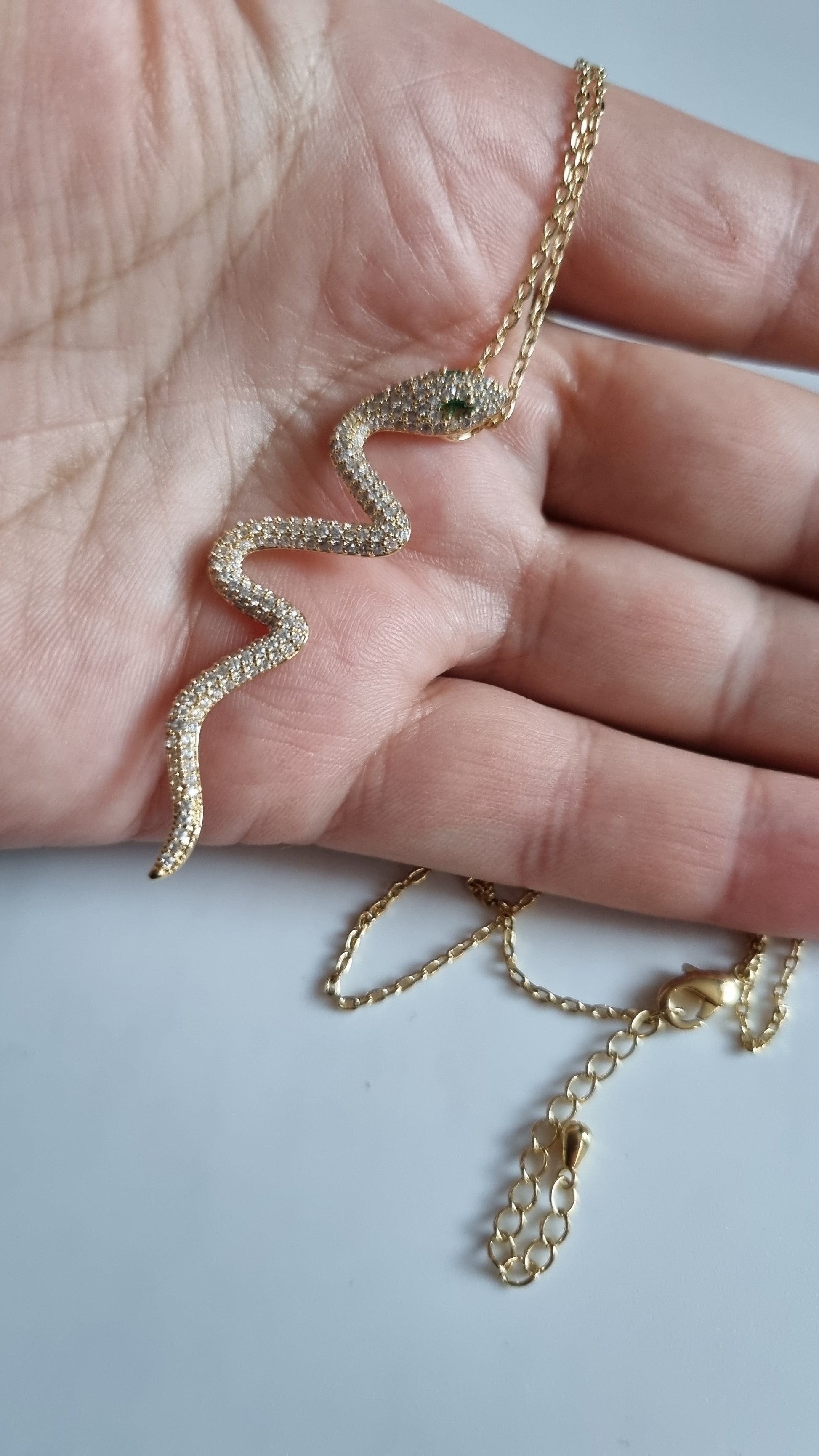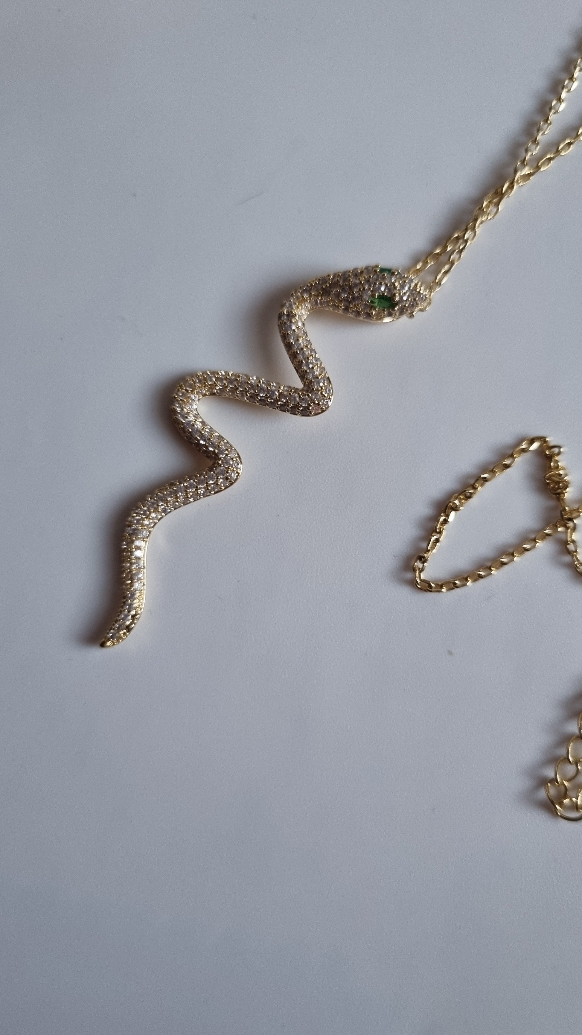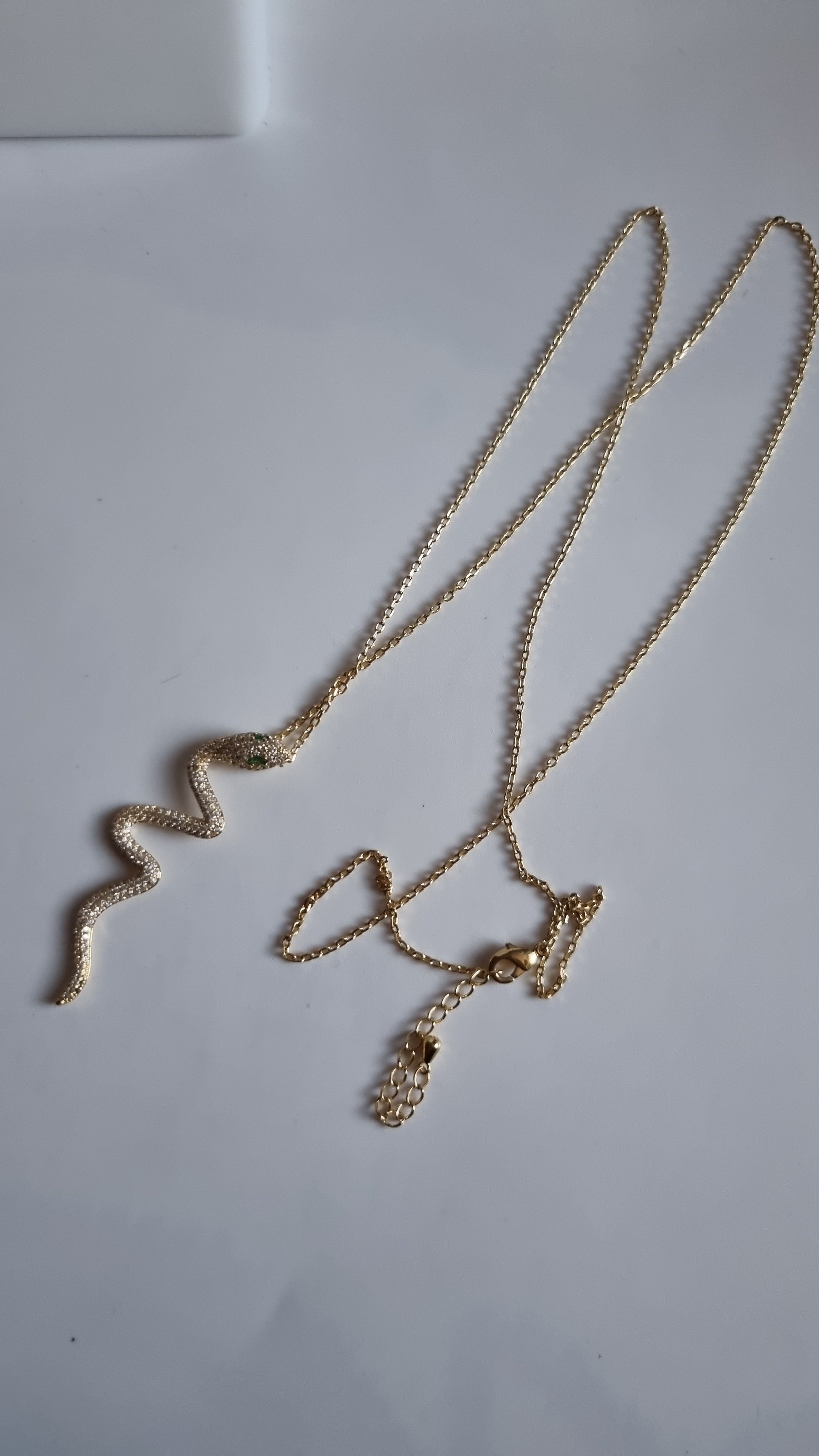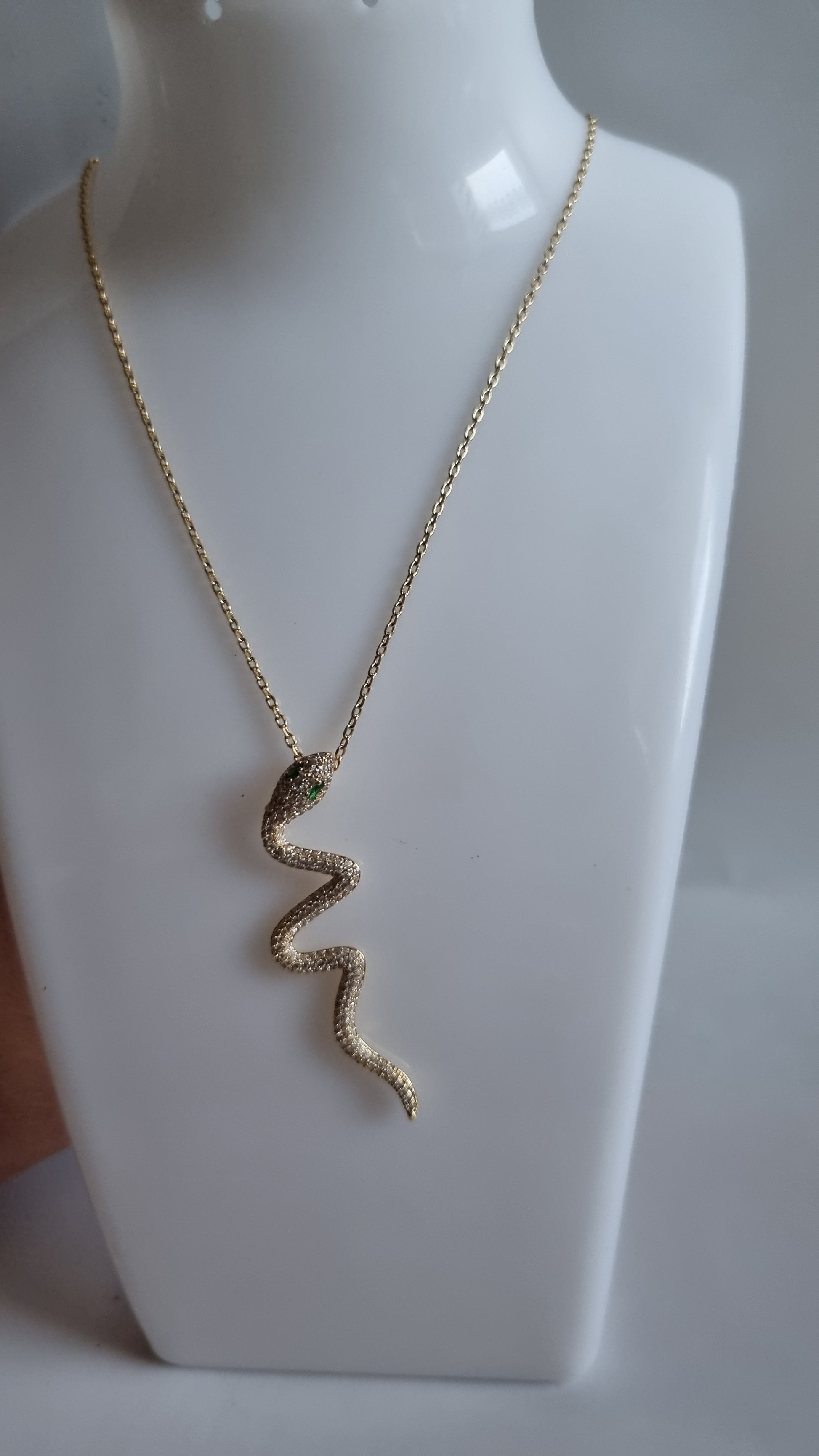 Hypoallergenic jewellery from copper metal plated gold 14kr. snake with sw.crystal very beautiful necklace