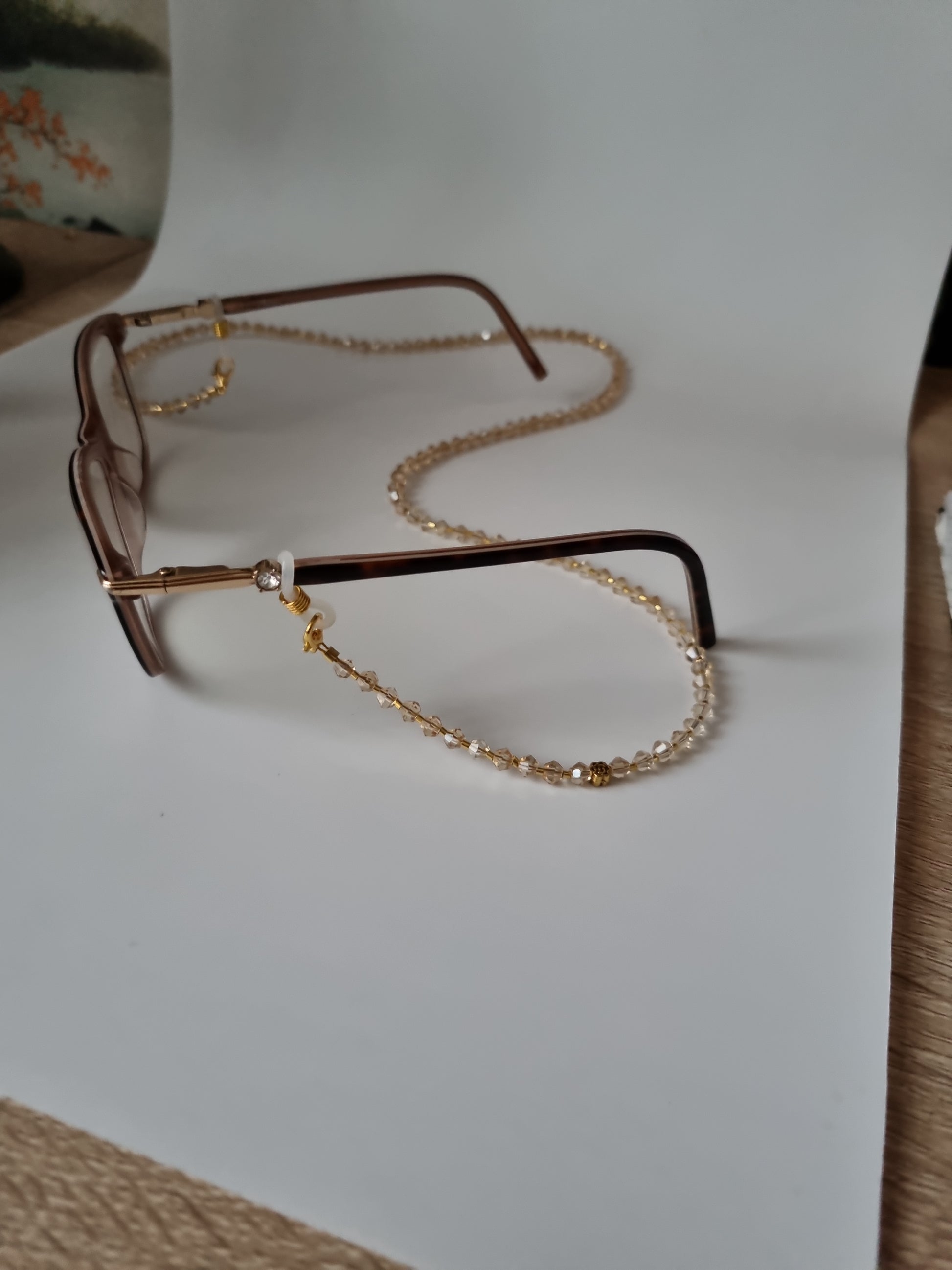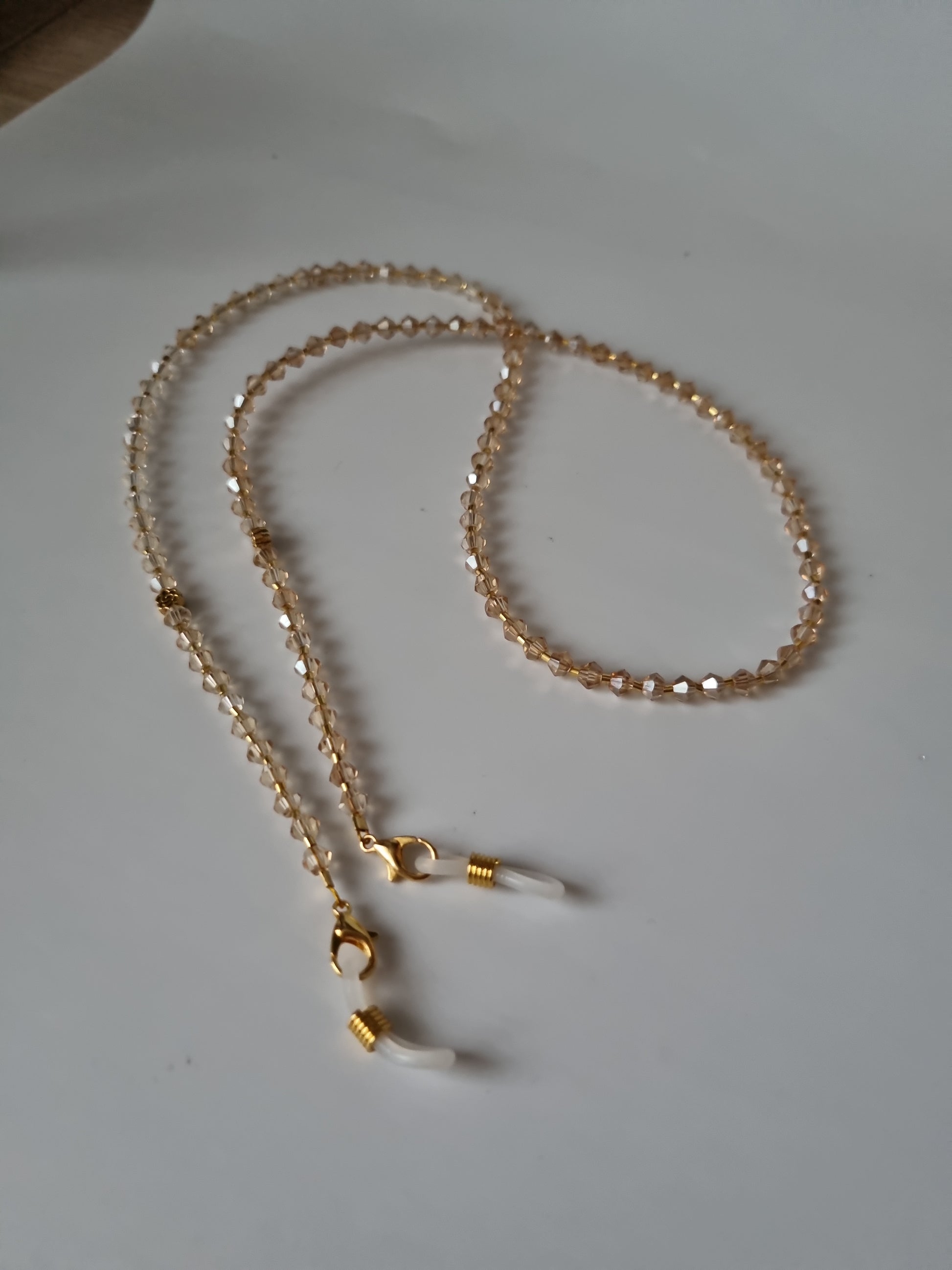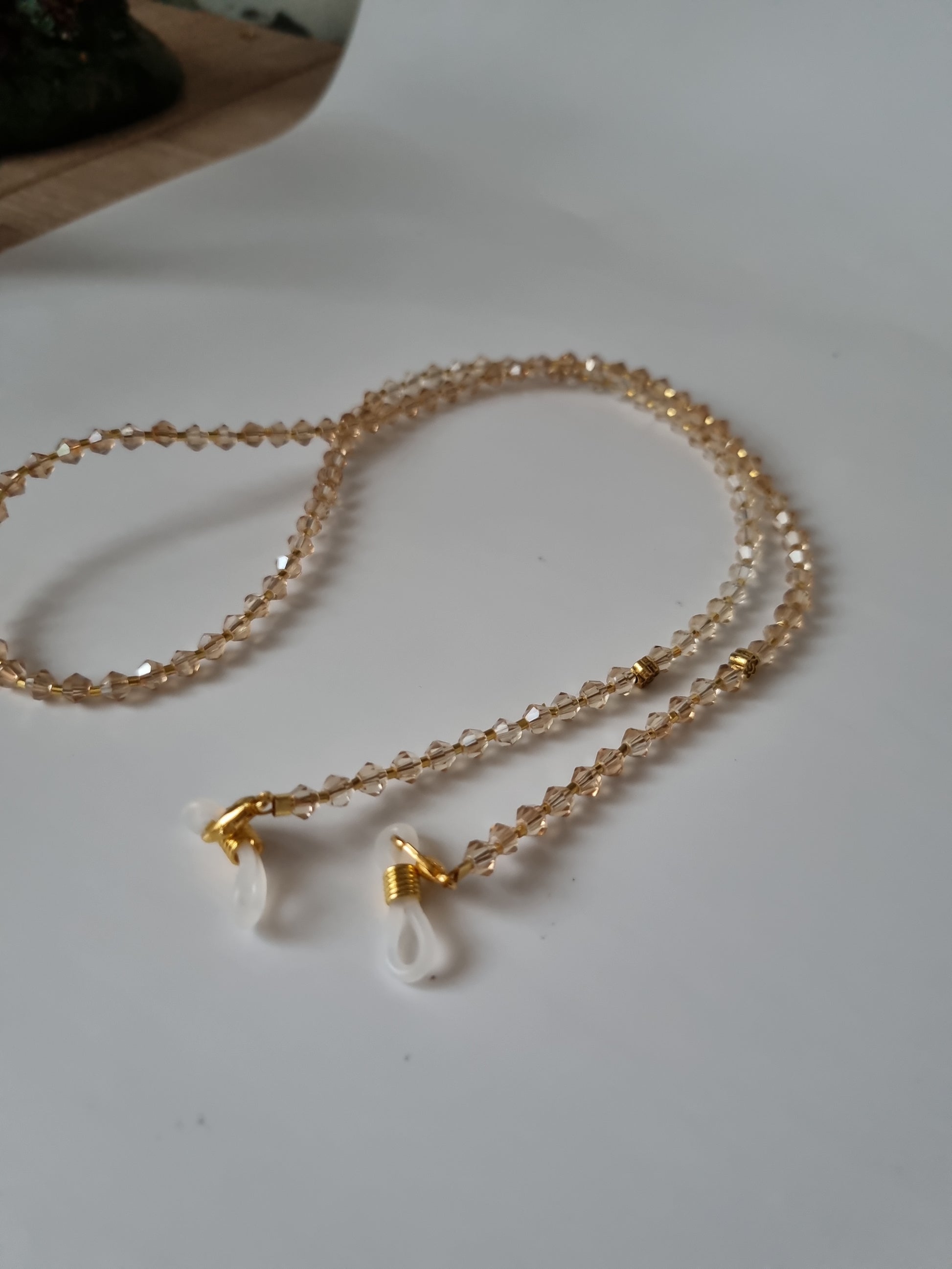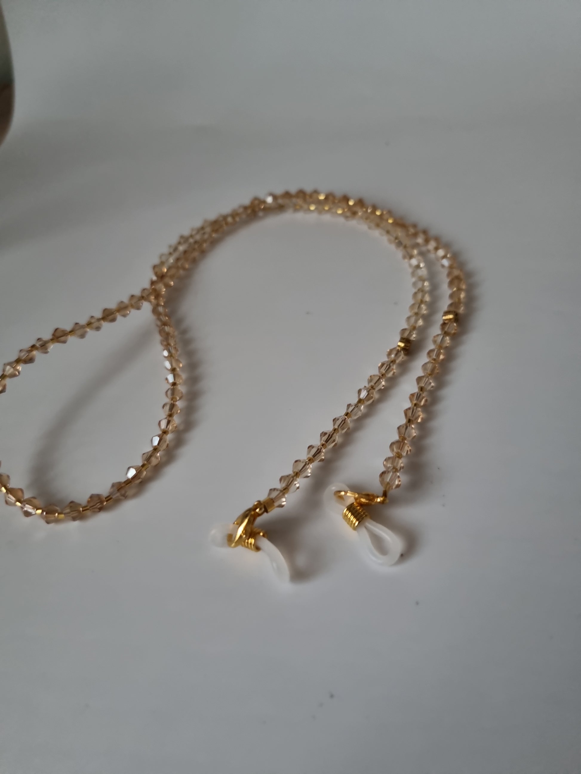 Rankų darbo akinių laikiklis iš šampano spalvos stiklo krištolo gražus