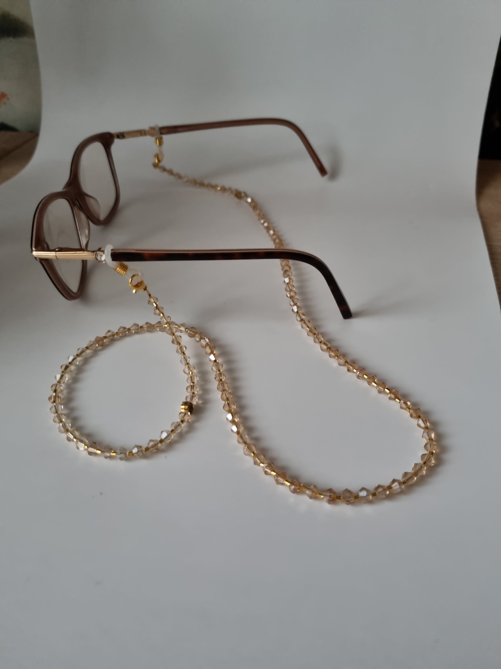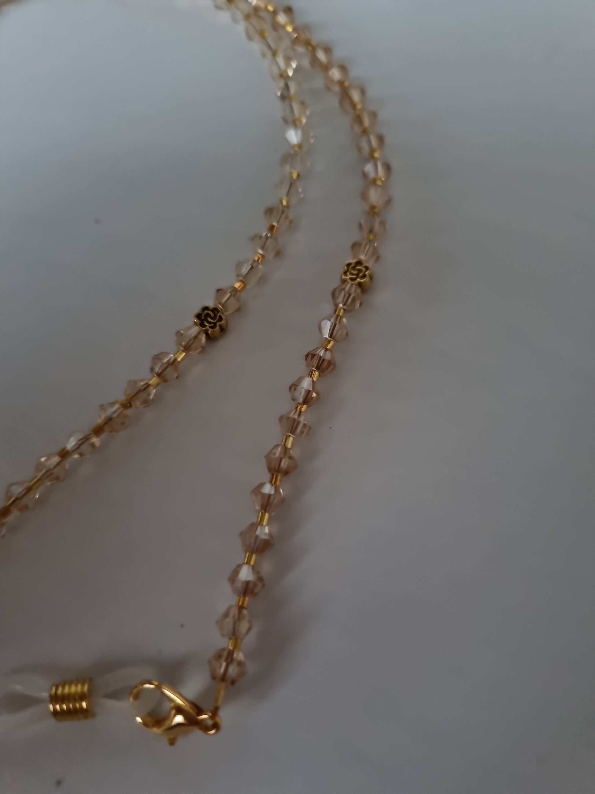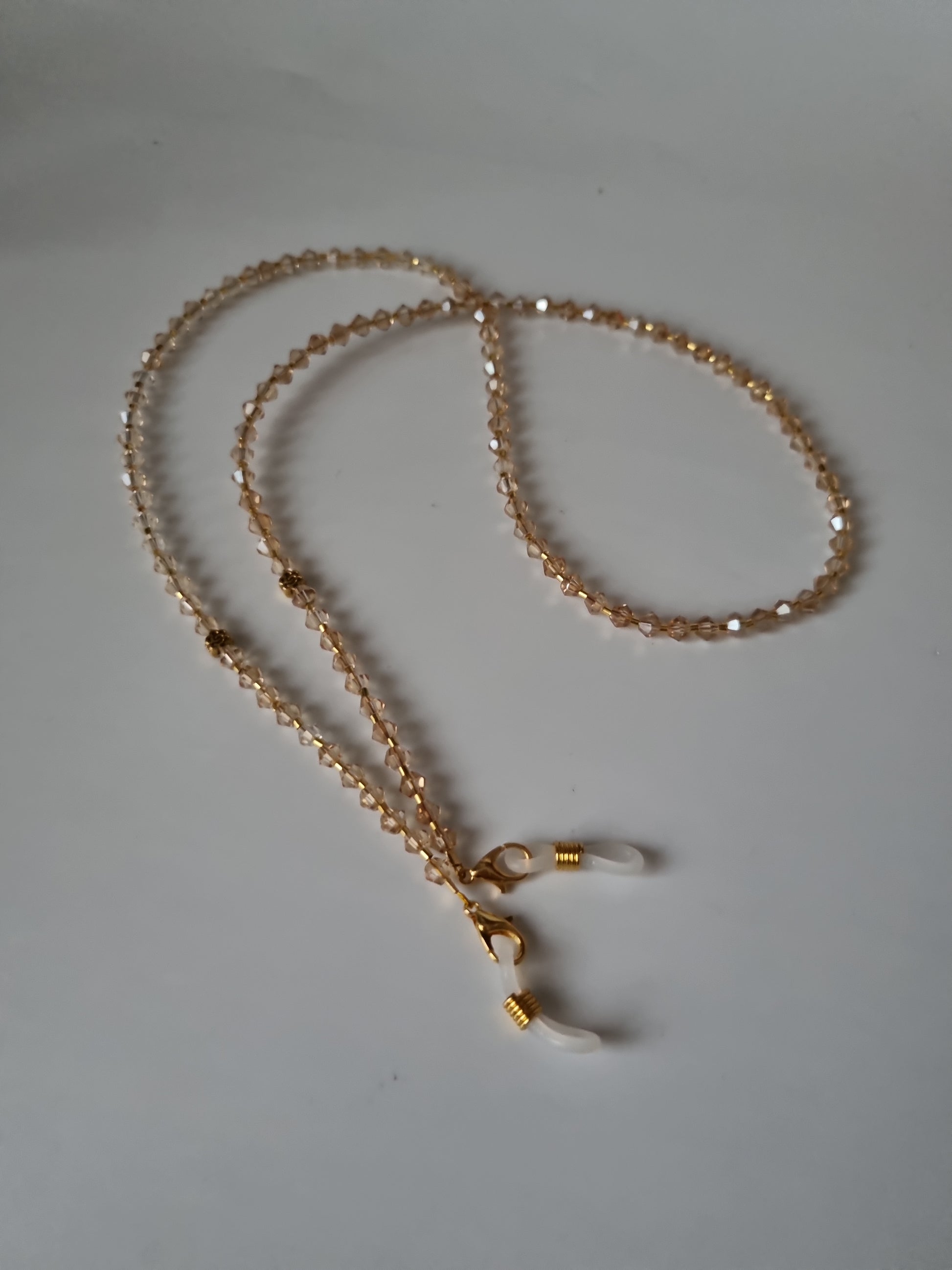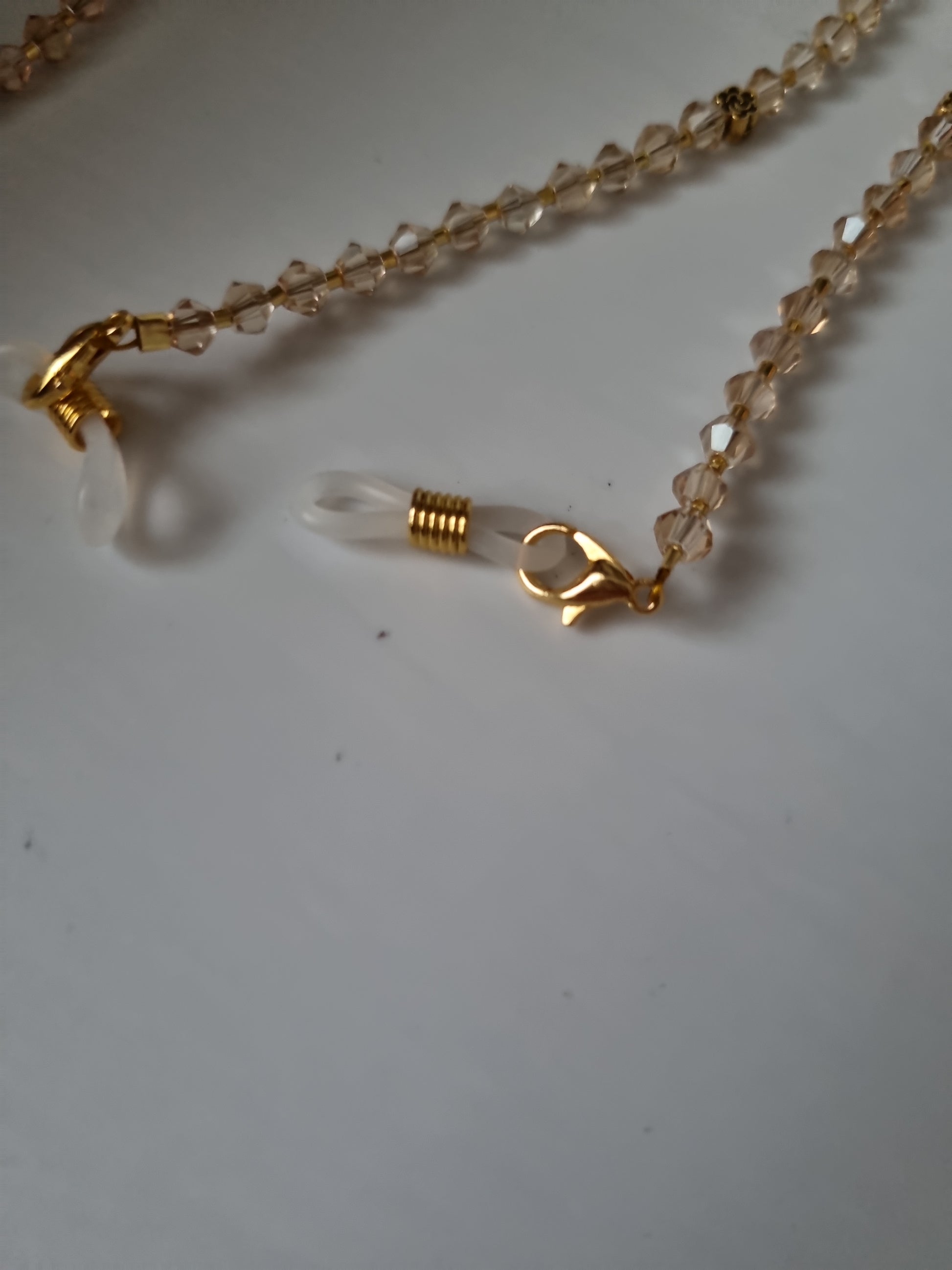 Rankų darbo akinių laikiklis iš šampano spalvos stiklo krištolo gražus