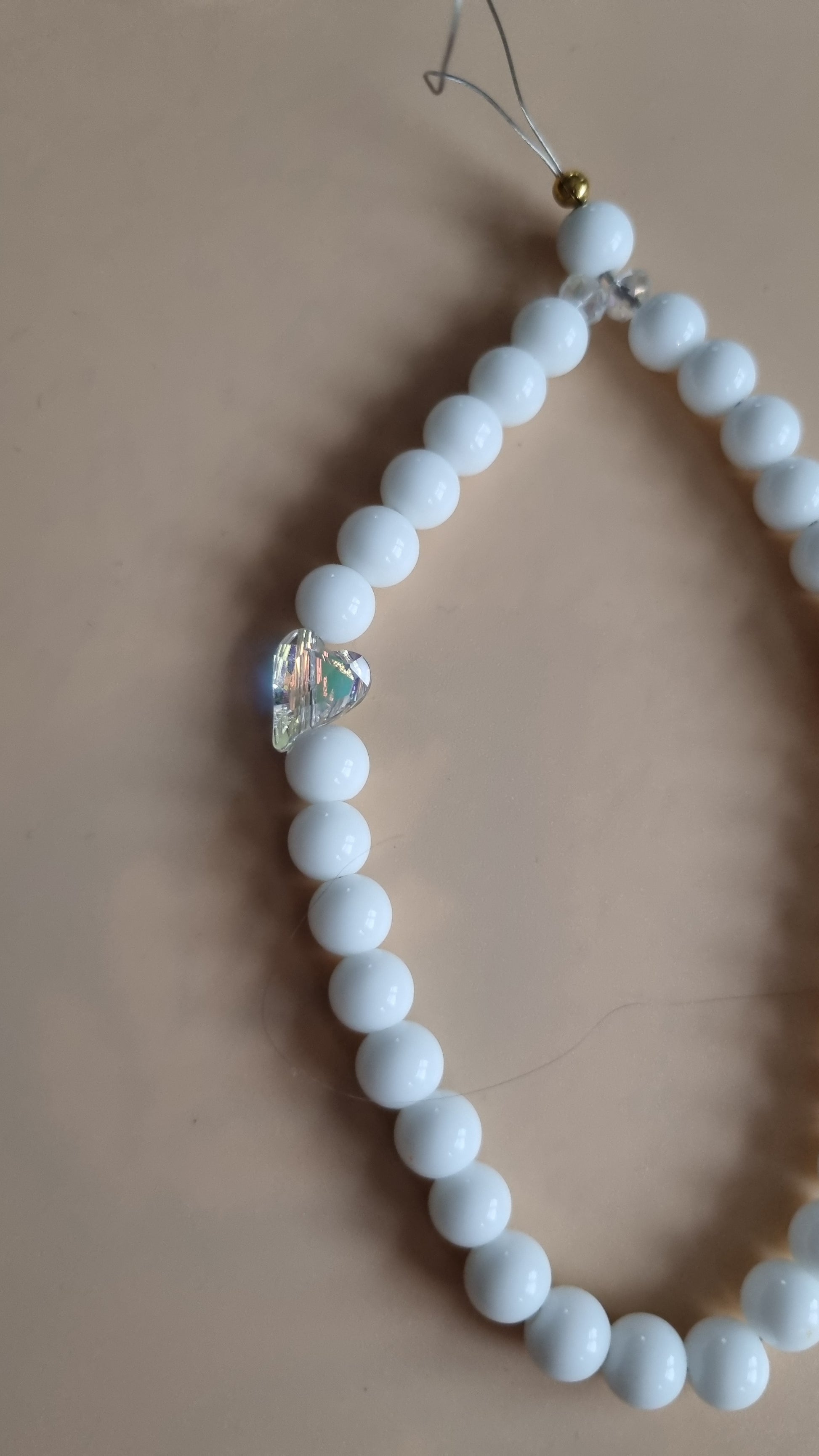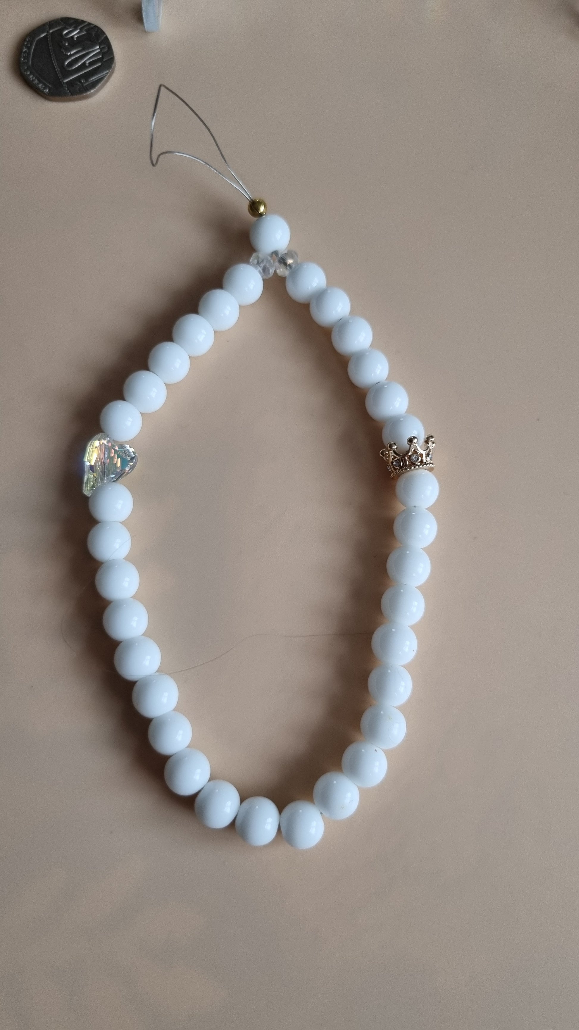 Rankų darbo telefono laikiklis su krištolo širdele ir gražia aukso spalvos karūna