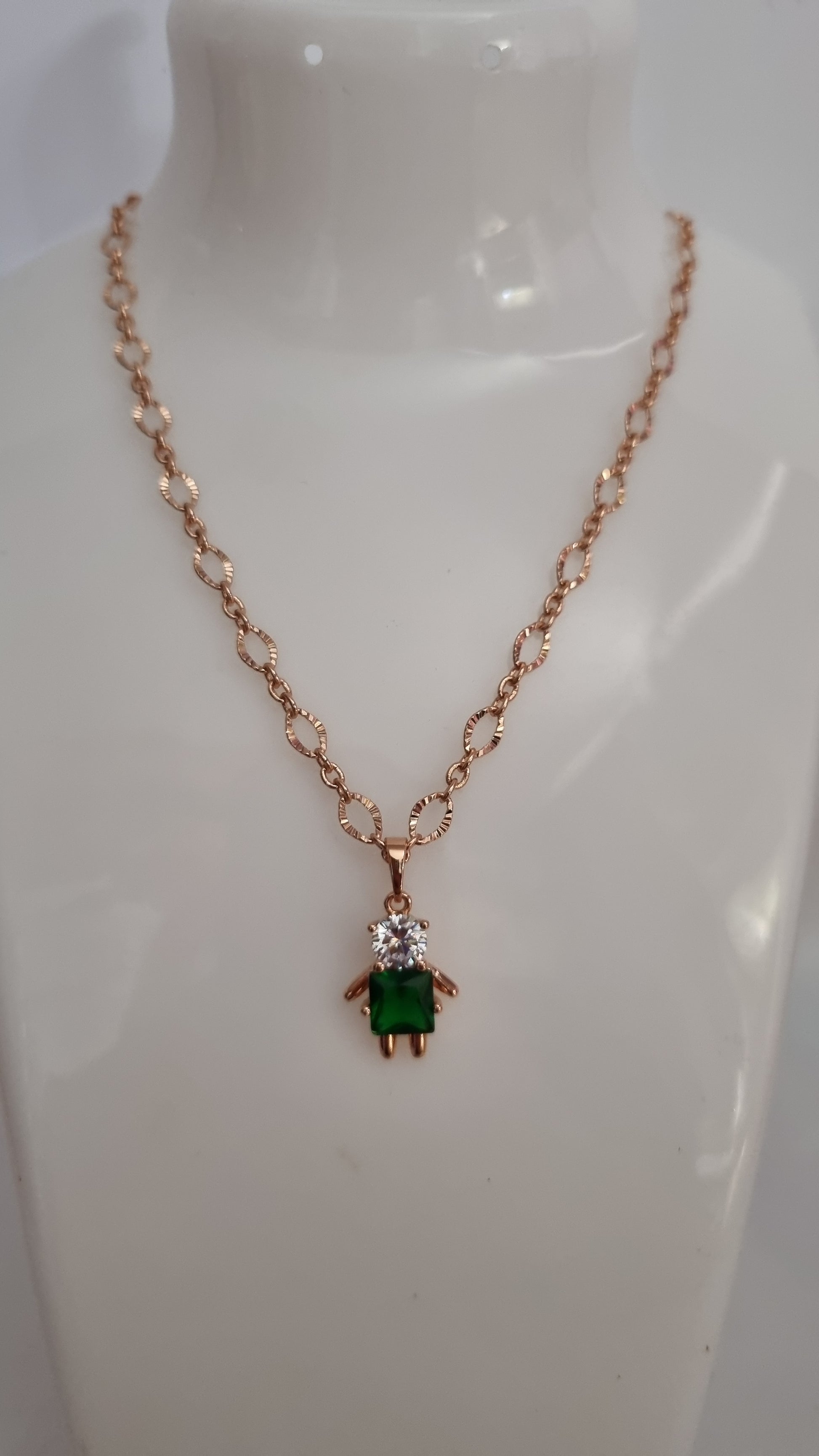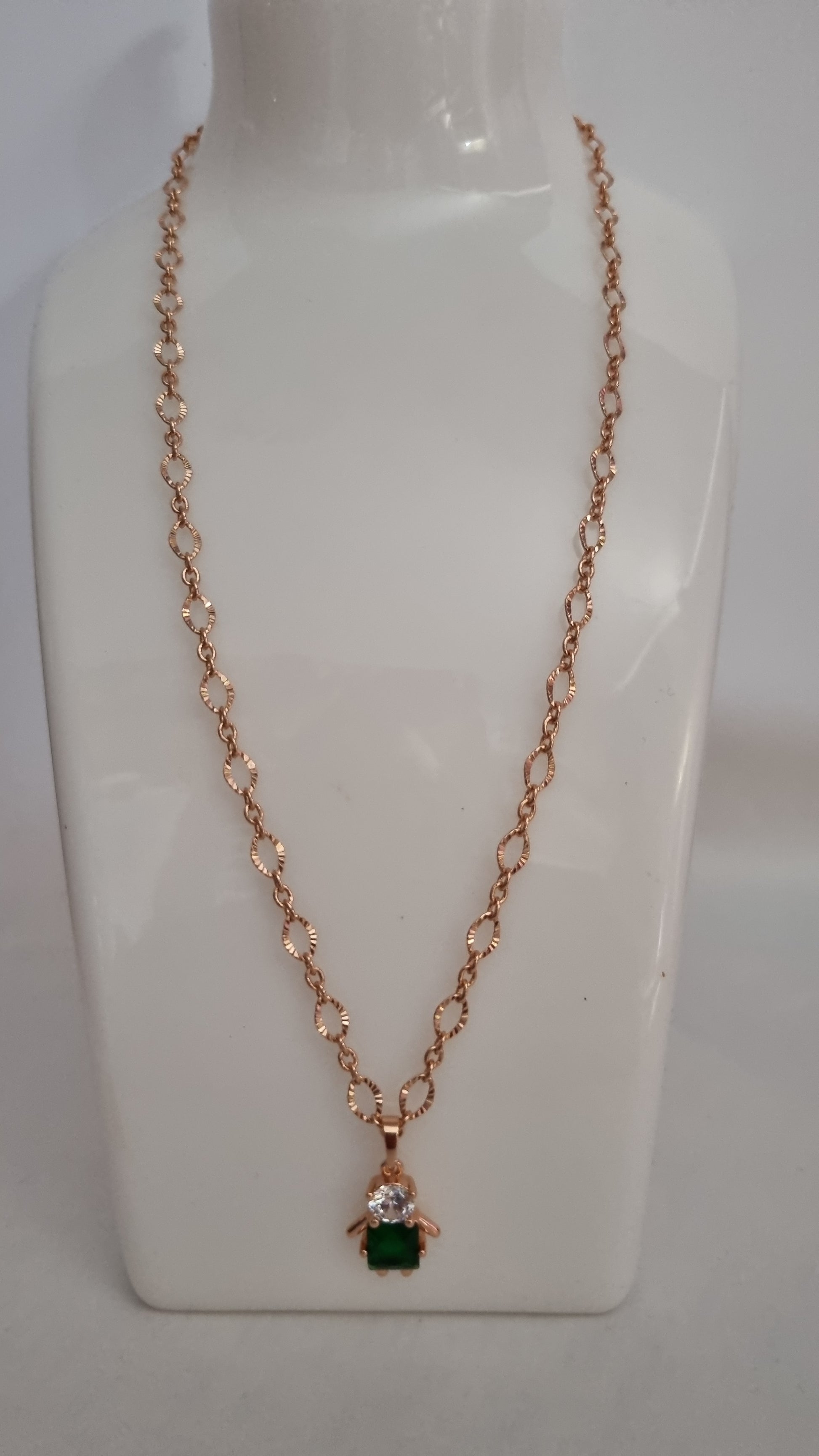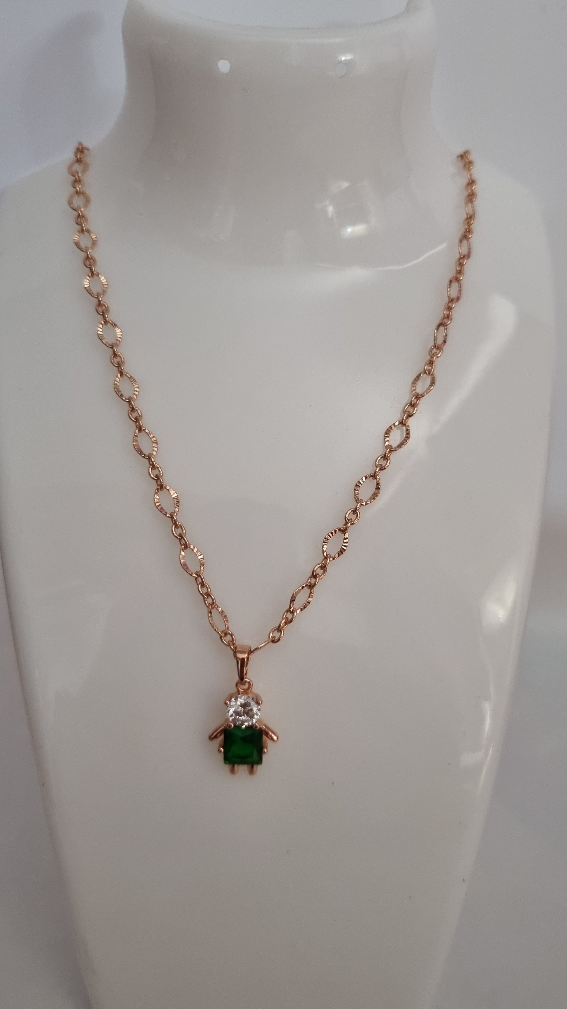 Crafted with a beautiful rose gold plating, this jewellery set features a 45cm long necklace chain and a stunning pendant decorated with green and white zircon stones. Its hypoallergenic and waterproof design makes it suitable for those with sensitive skin. Enjoy the beauty and durability of this set without worrying about nickel allergies.
