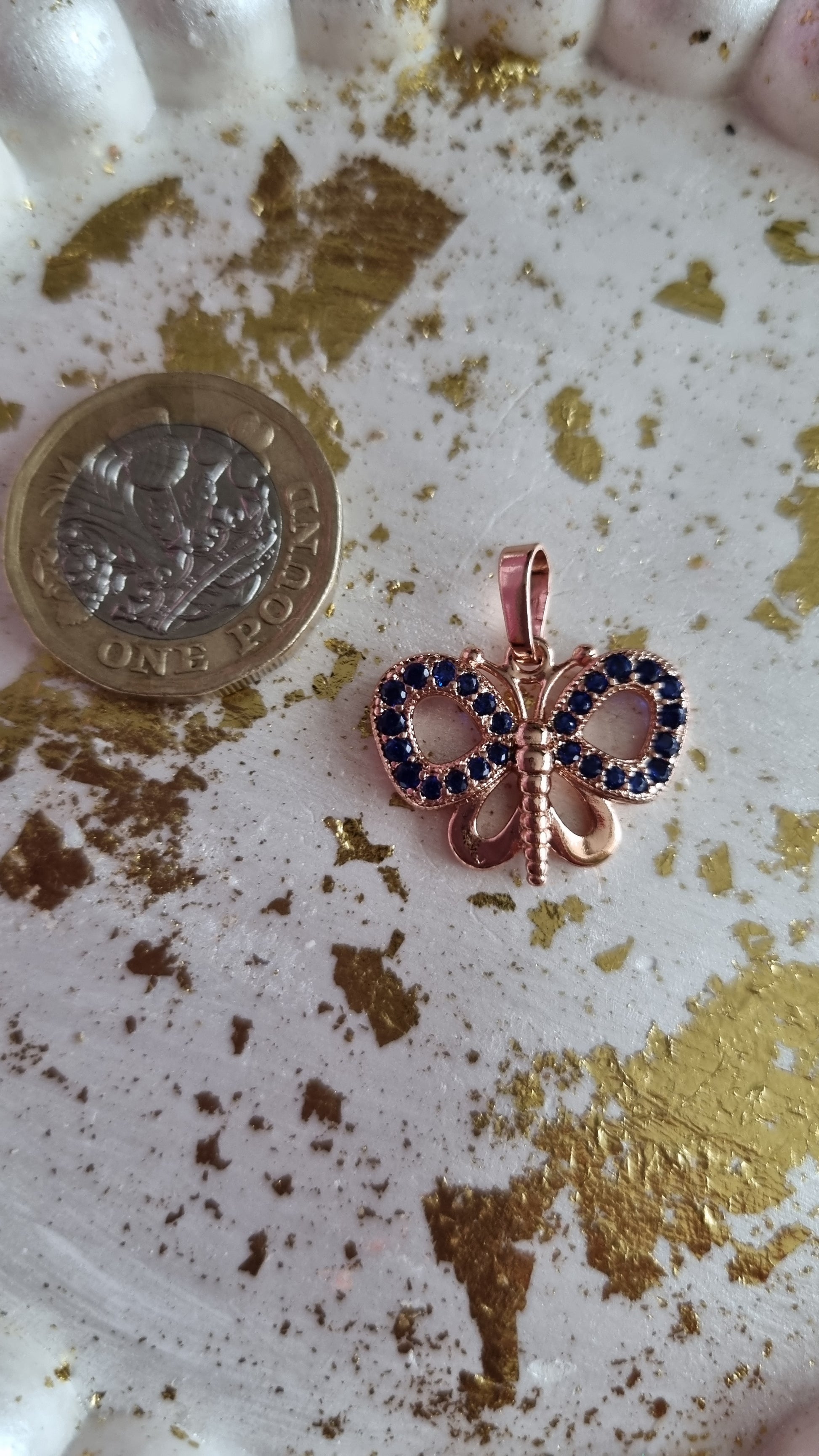 Rose gold plated pendant with zircon stone blue colour