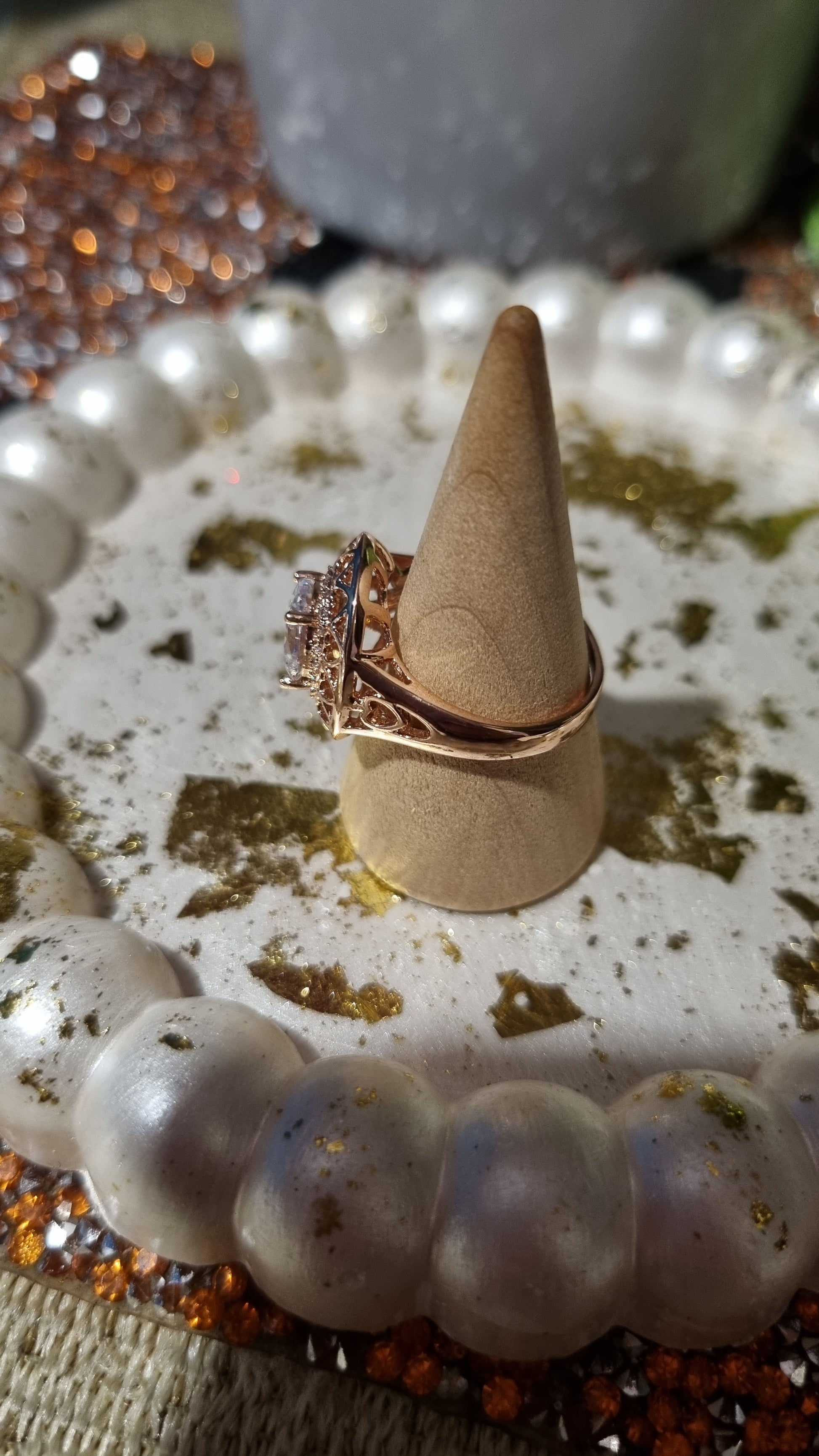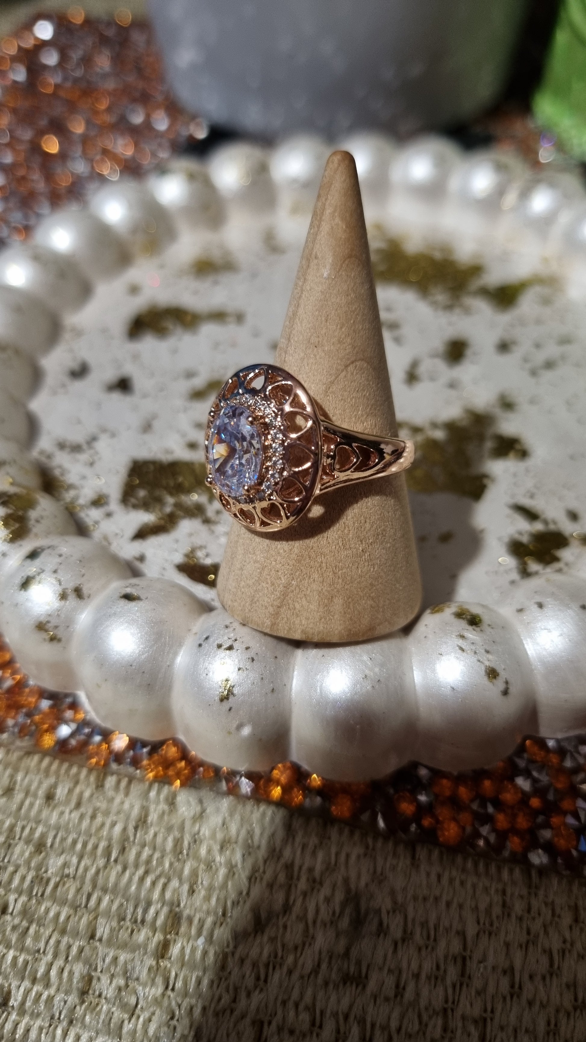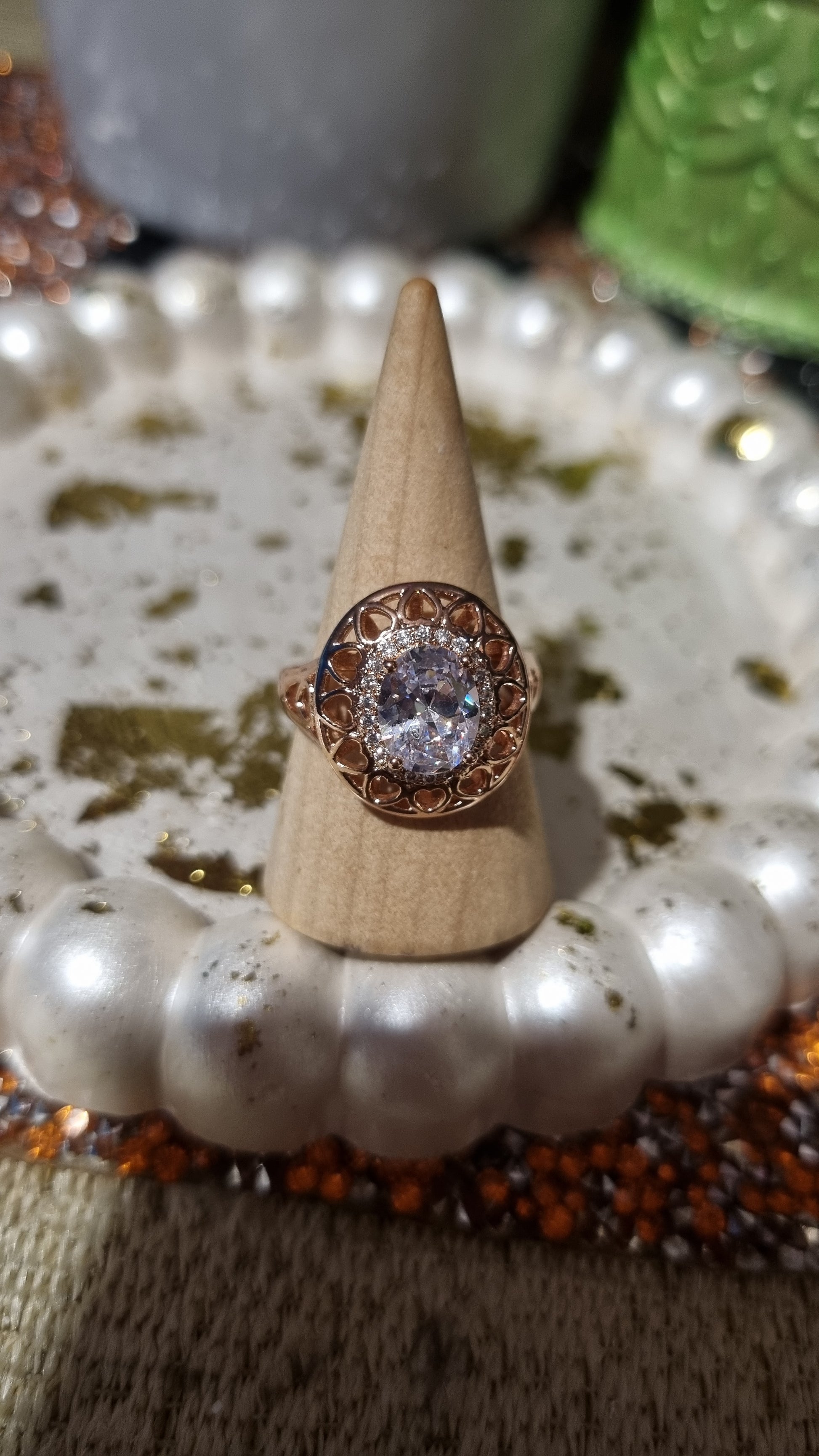 Rožinio aukso žiedai su cirkonio akmenimis