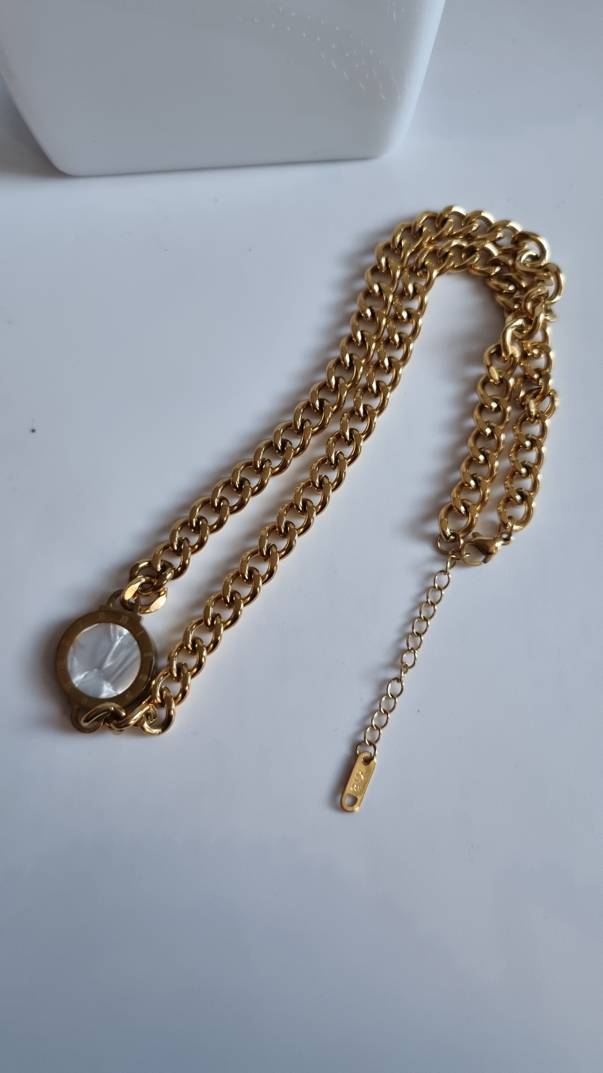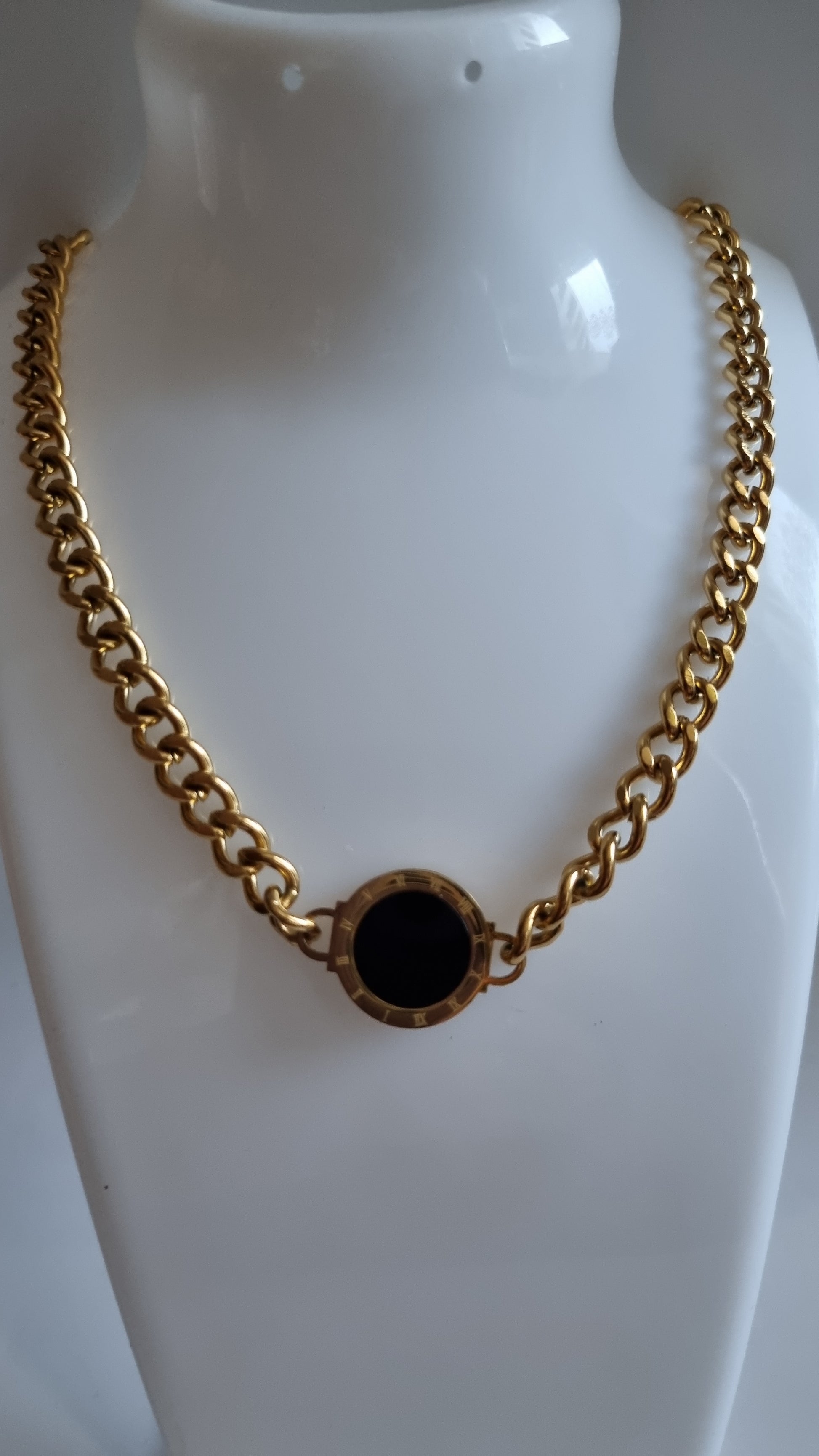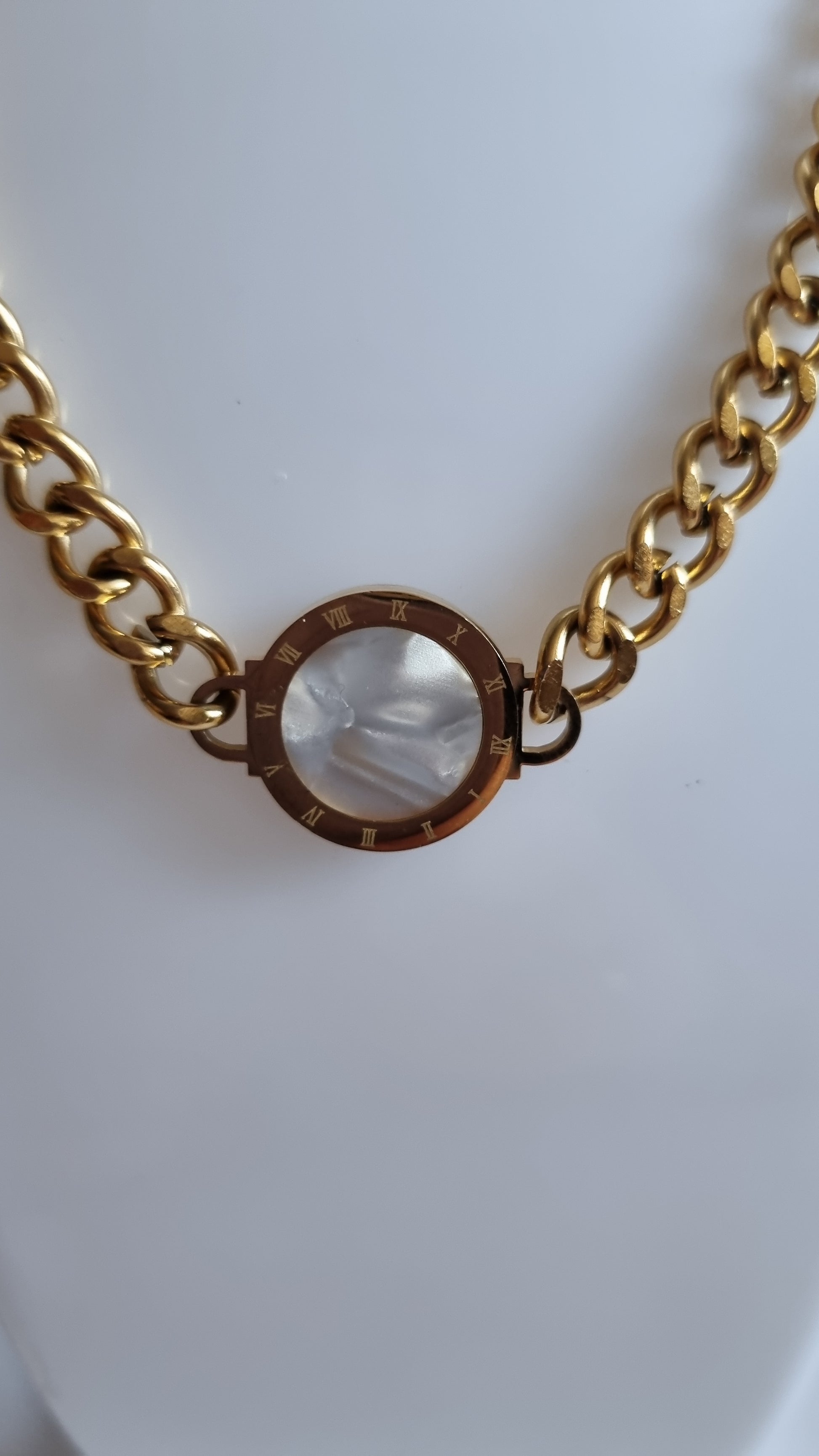 Stainless steel necklace double sided with shell pearls pendant white and black