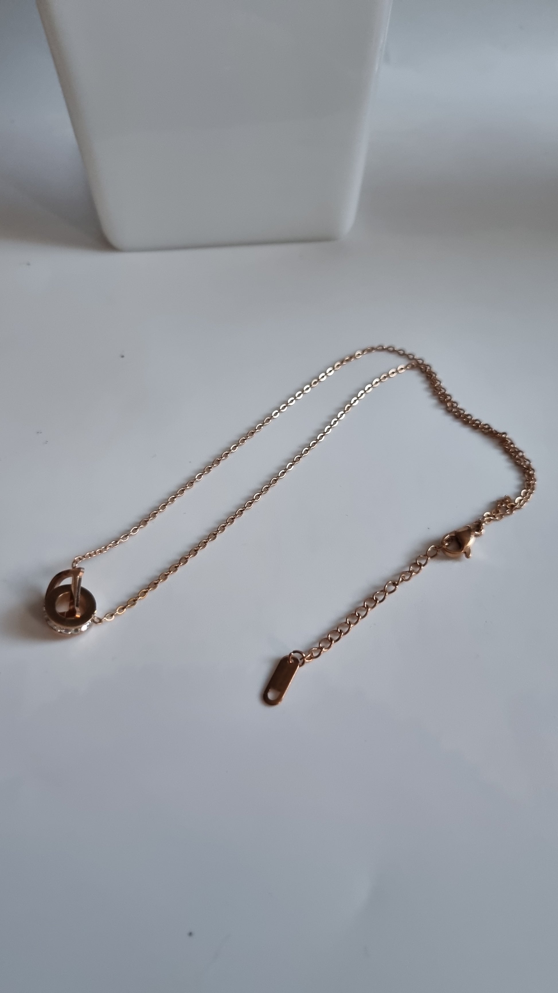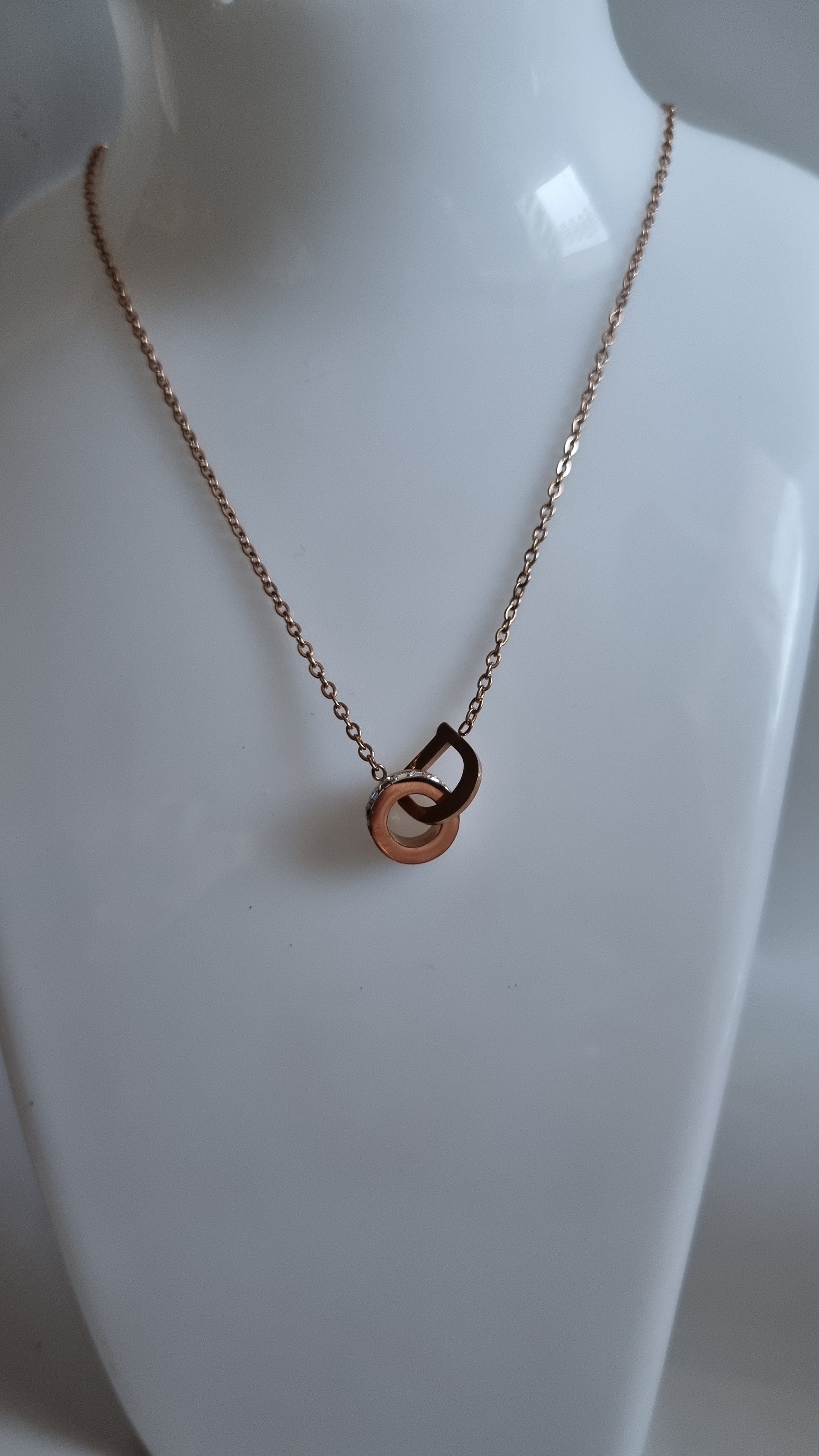 StainlessSteel rose gold plated necklace with sw.crystal and D very beautiful