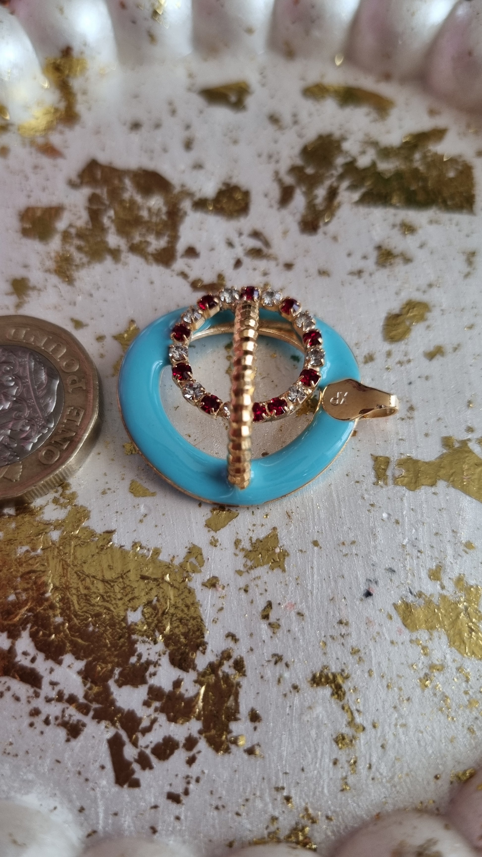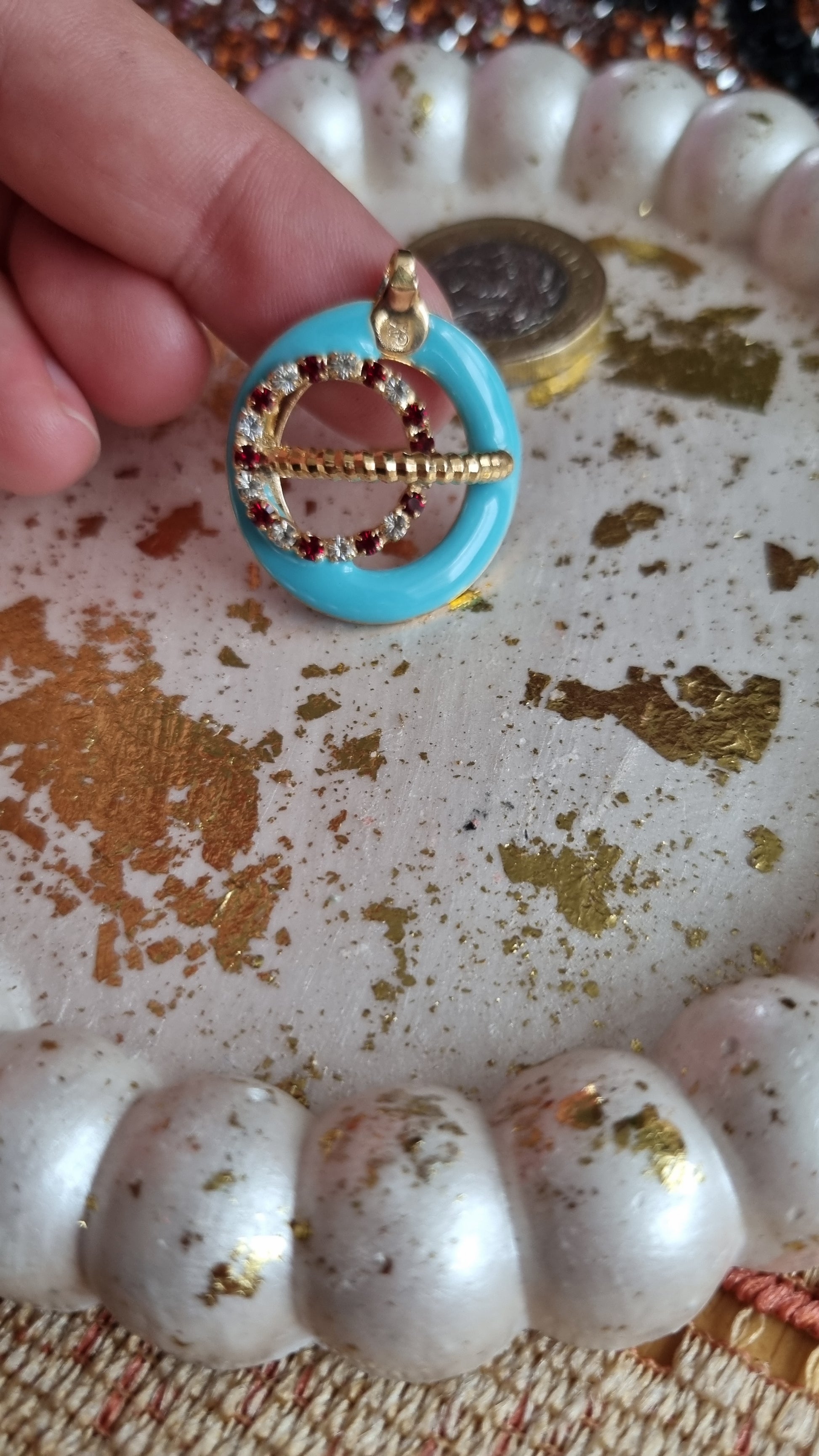 18kr.gold Plated pendant with zircon stone granet color and white Medical gold jewellery