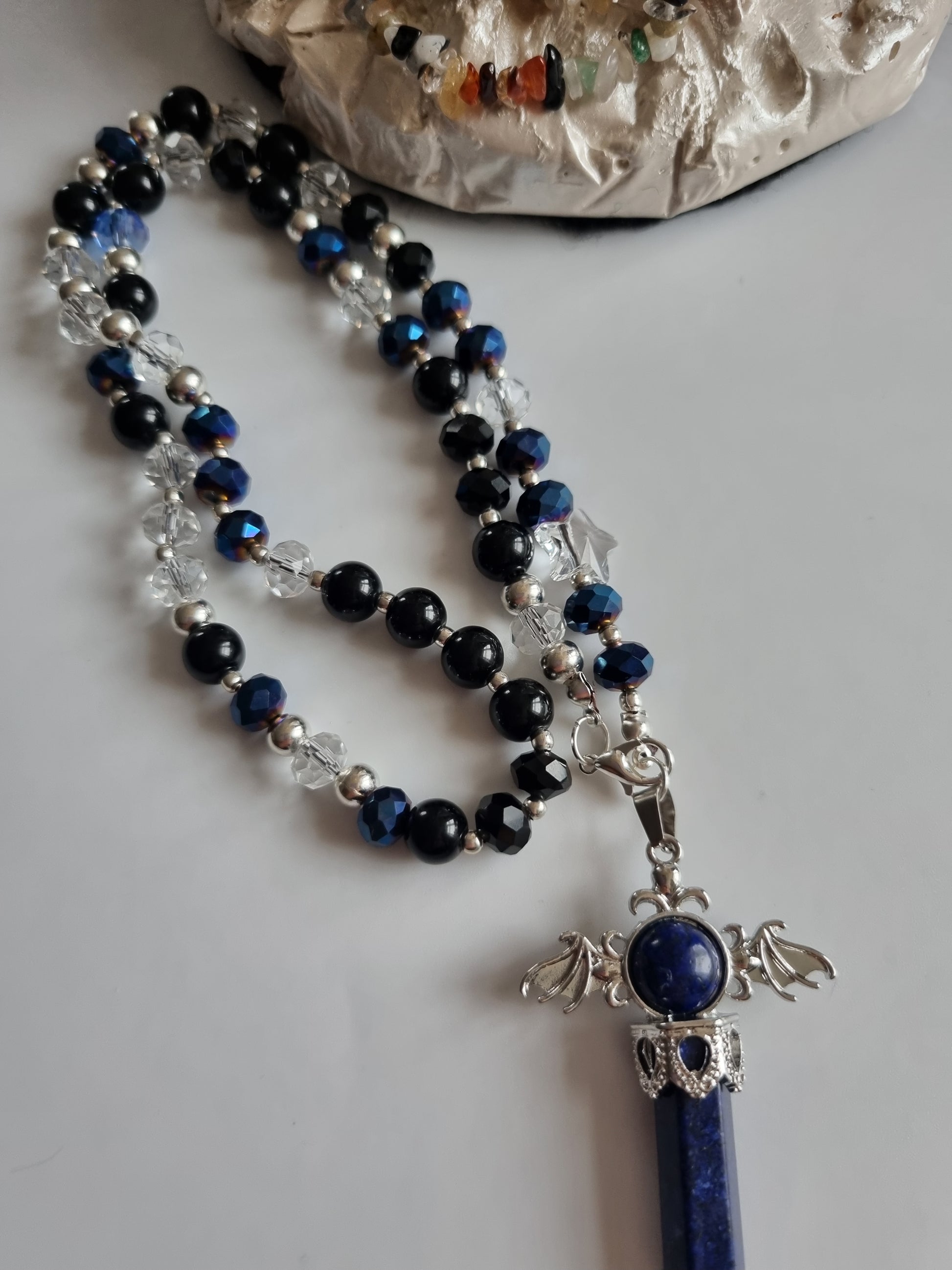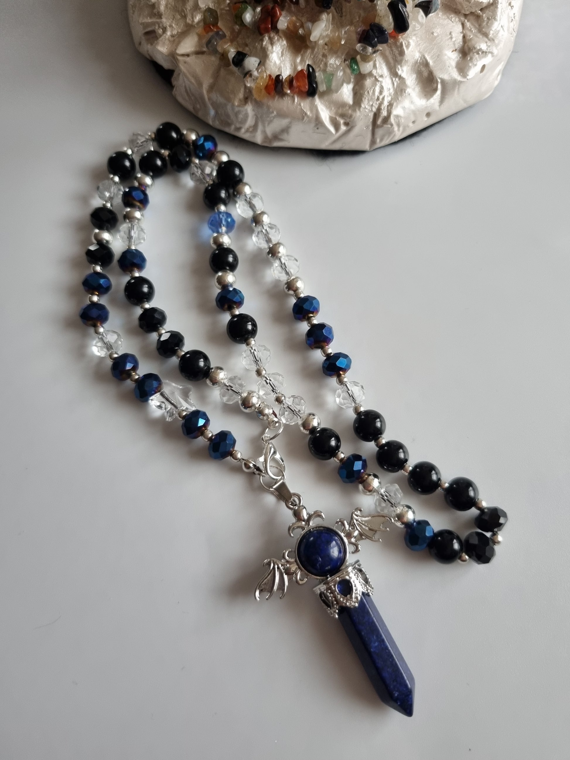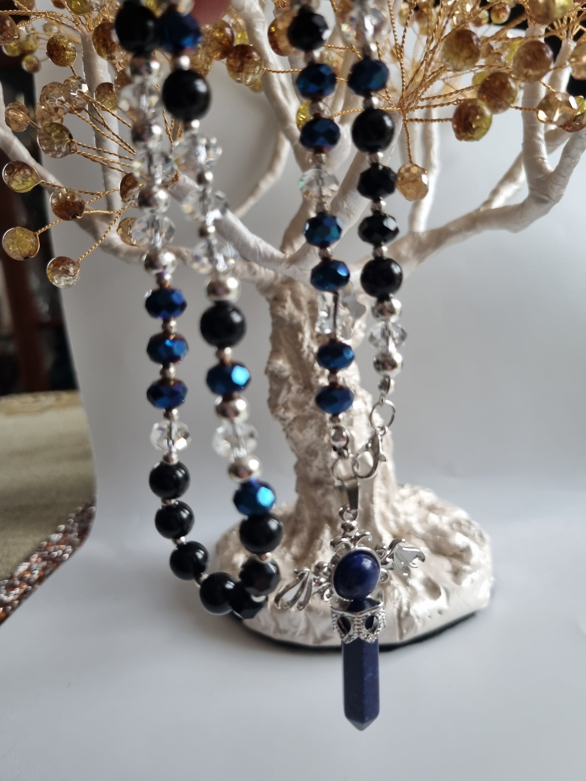 Car decor accessories mirror pendant handmade with sw.crystal start, gemstone lapis lazurite blue ,glass crystal and black onyx