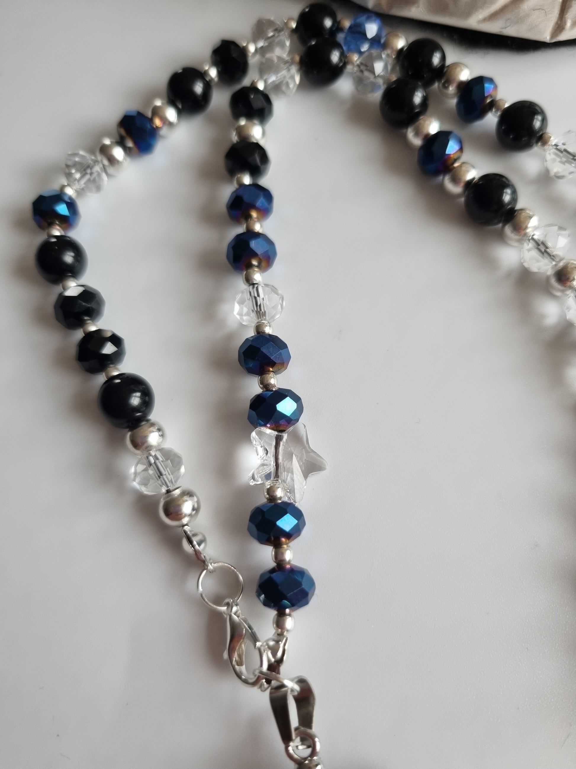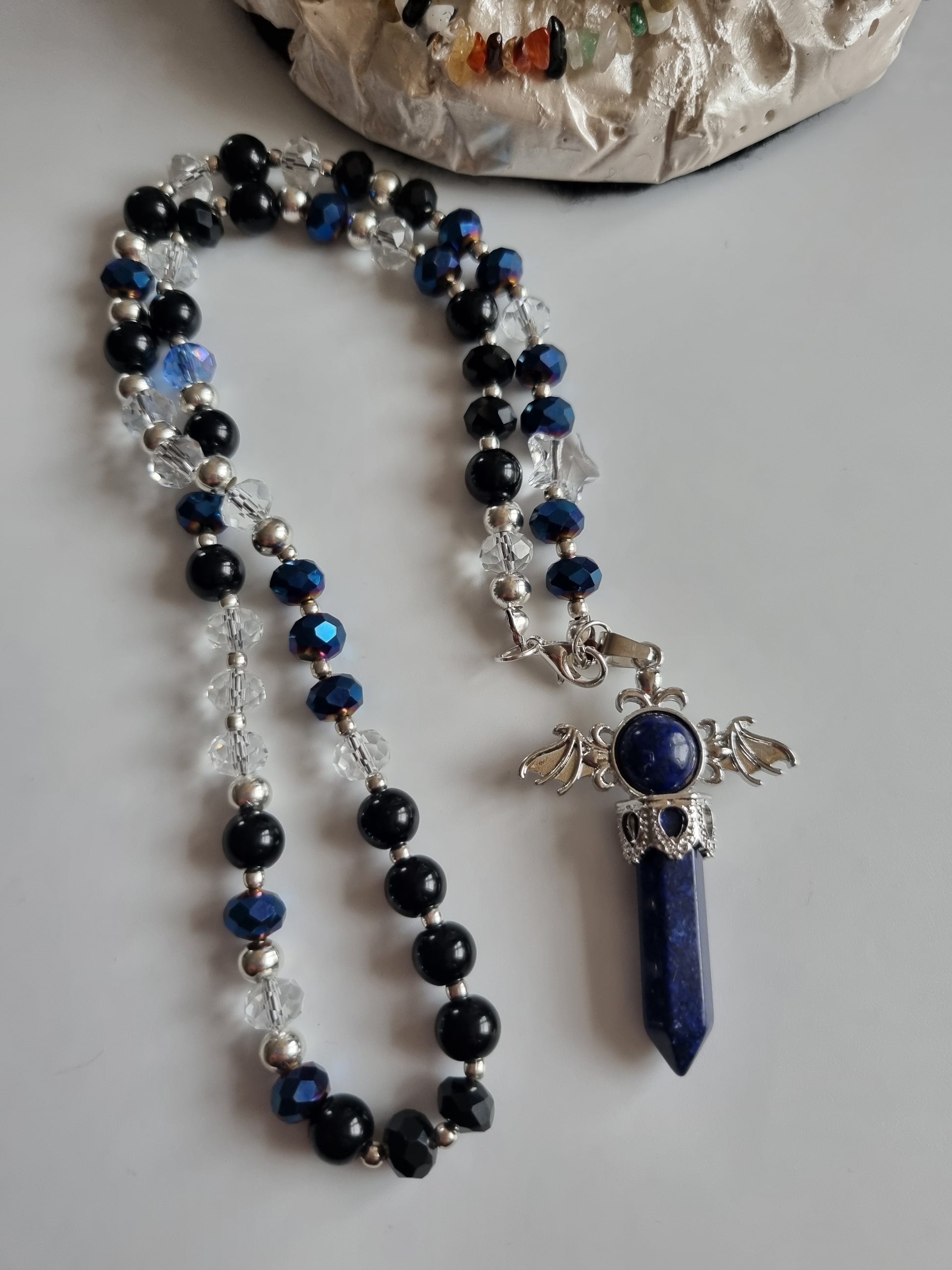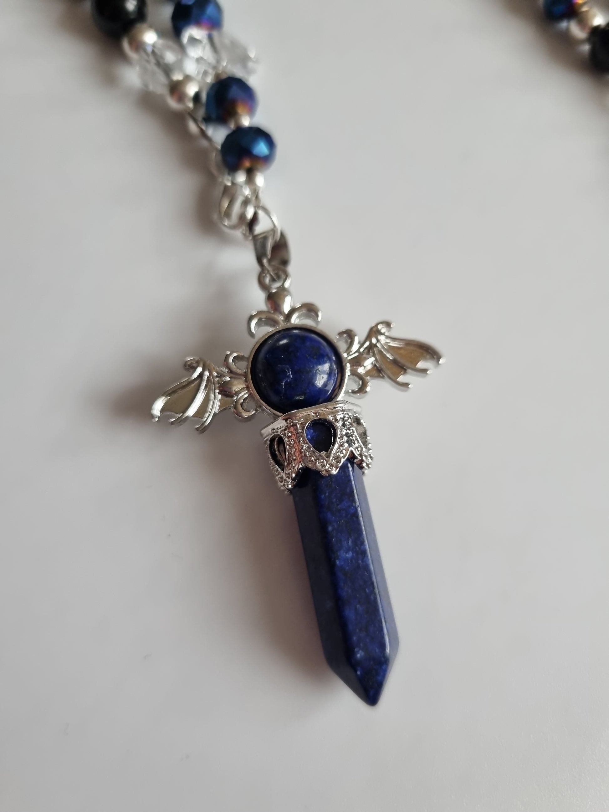 Car decor accessories mirror pendant handmade with sw.crystal start, gemstone lapis lazurite blue ,glass crystal and black onyx