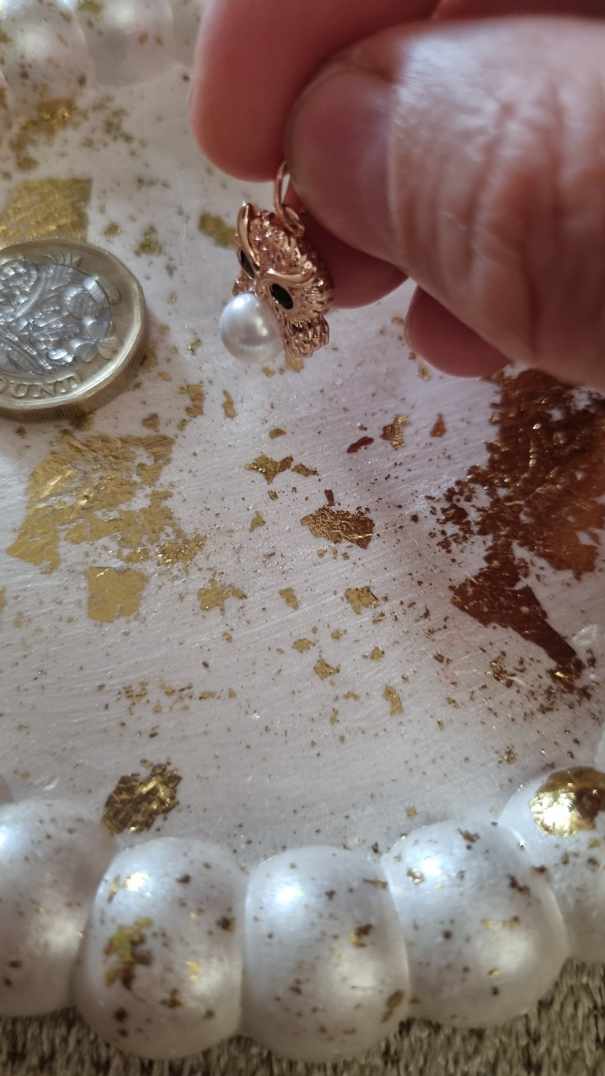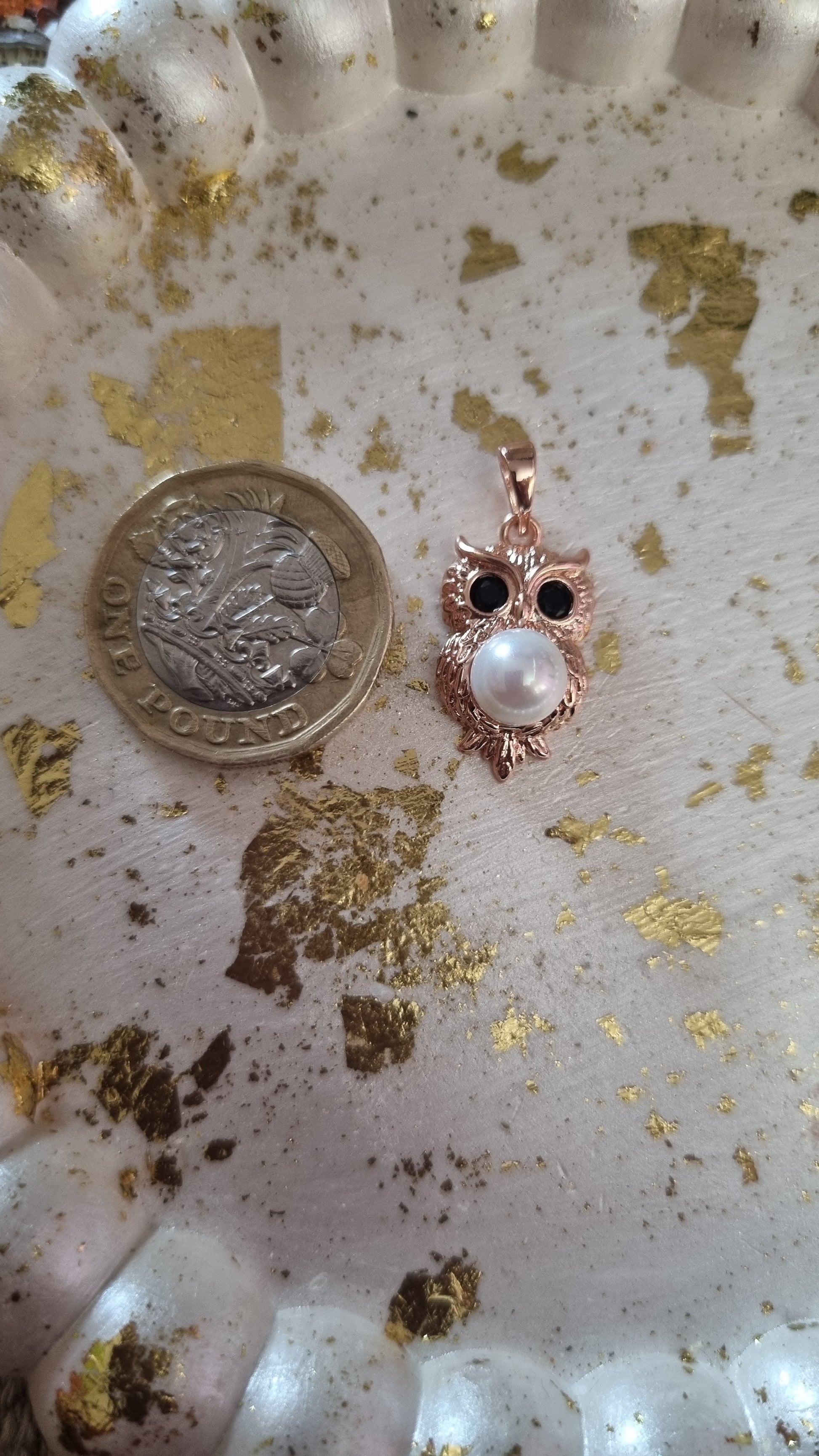 Rose gold plated with zircon crystals and natural fresh pearl