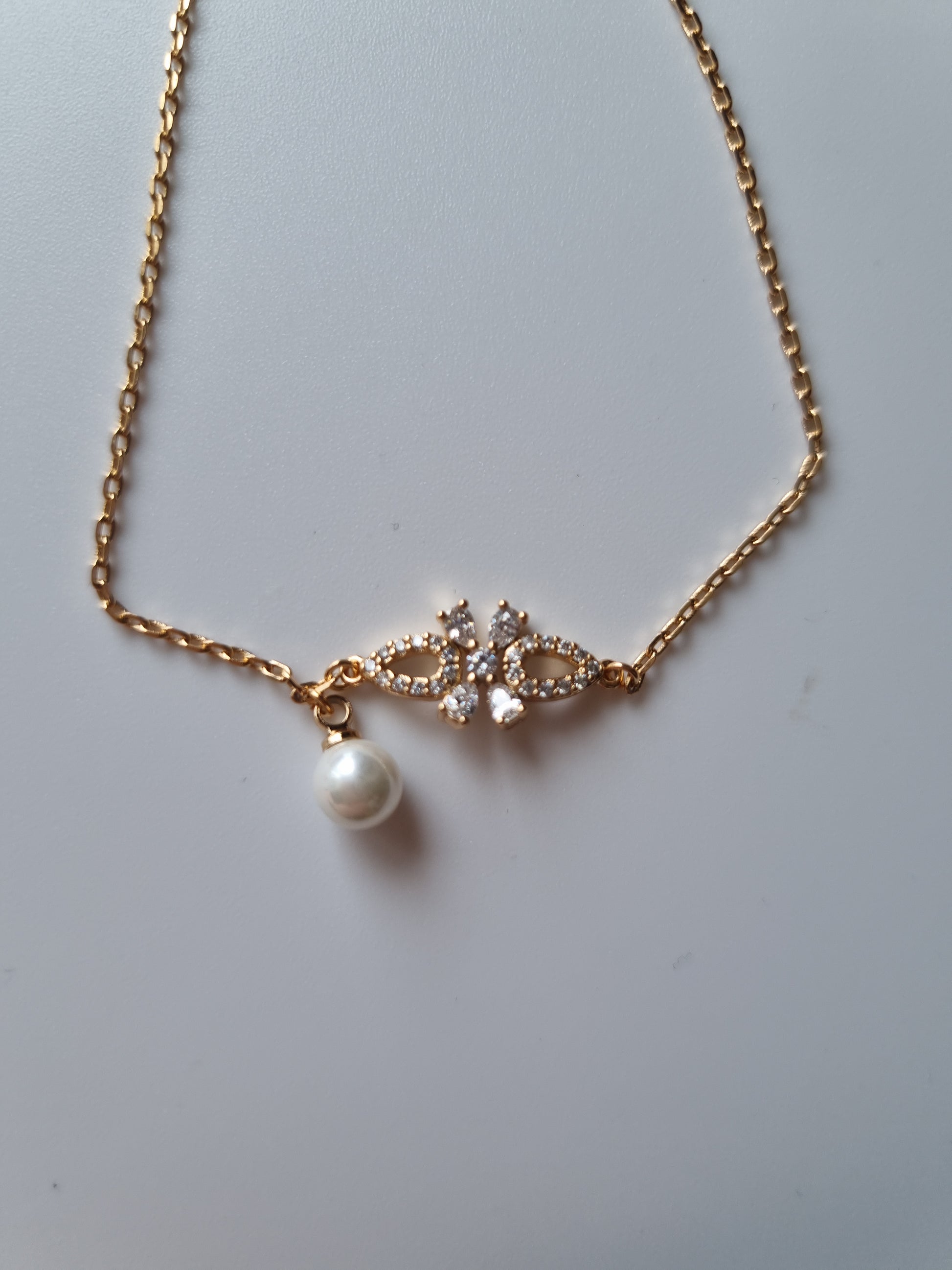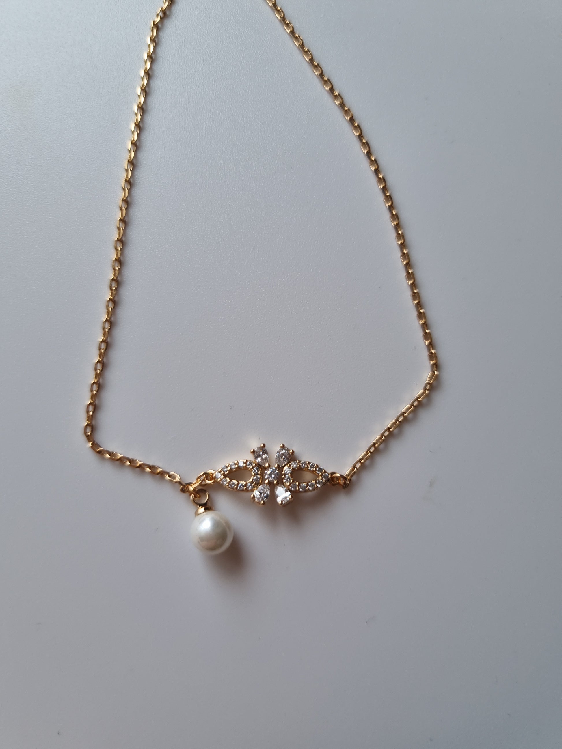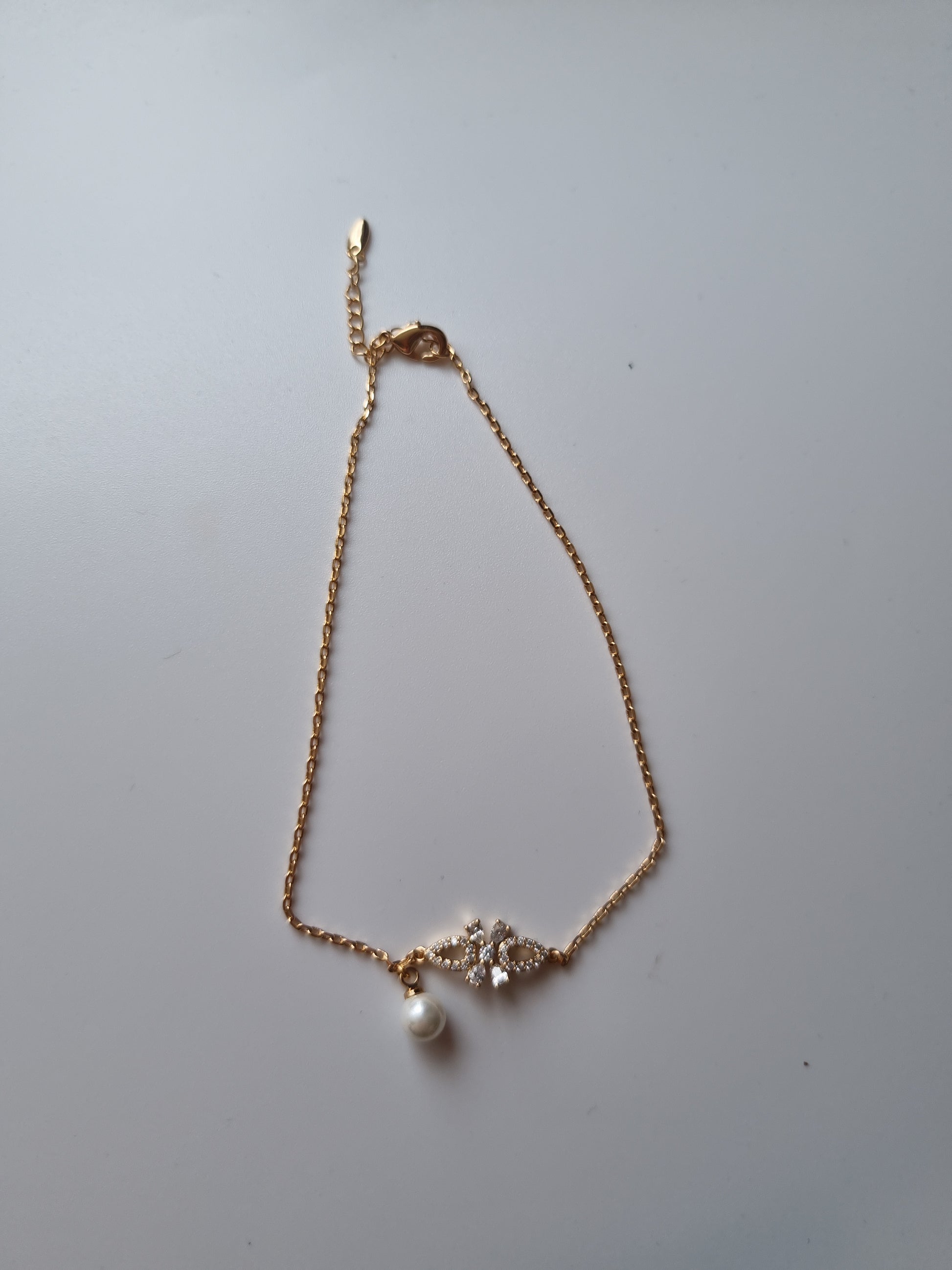 18kr.gold Plated ankle with freshwater pearl and zircon crystals