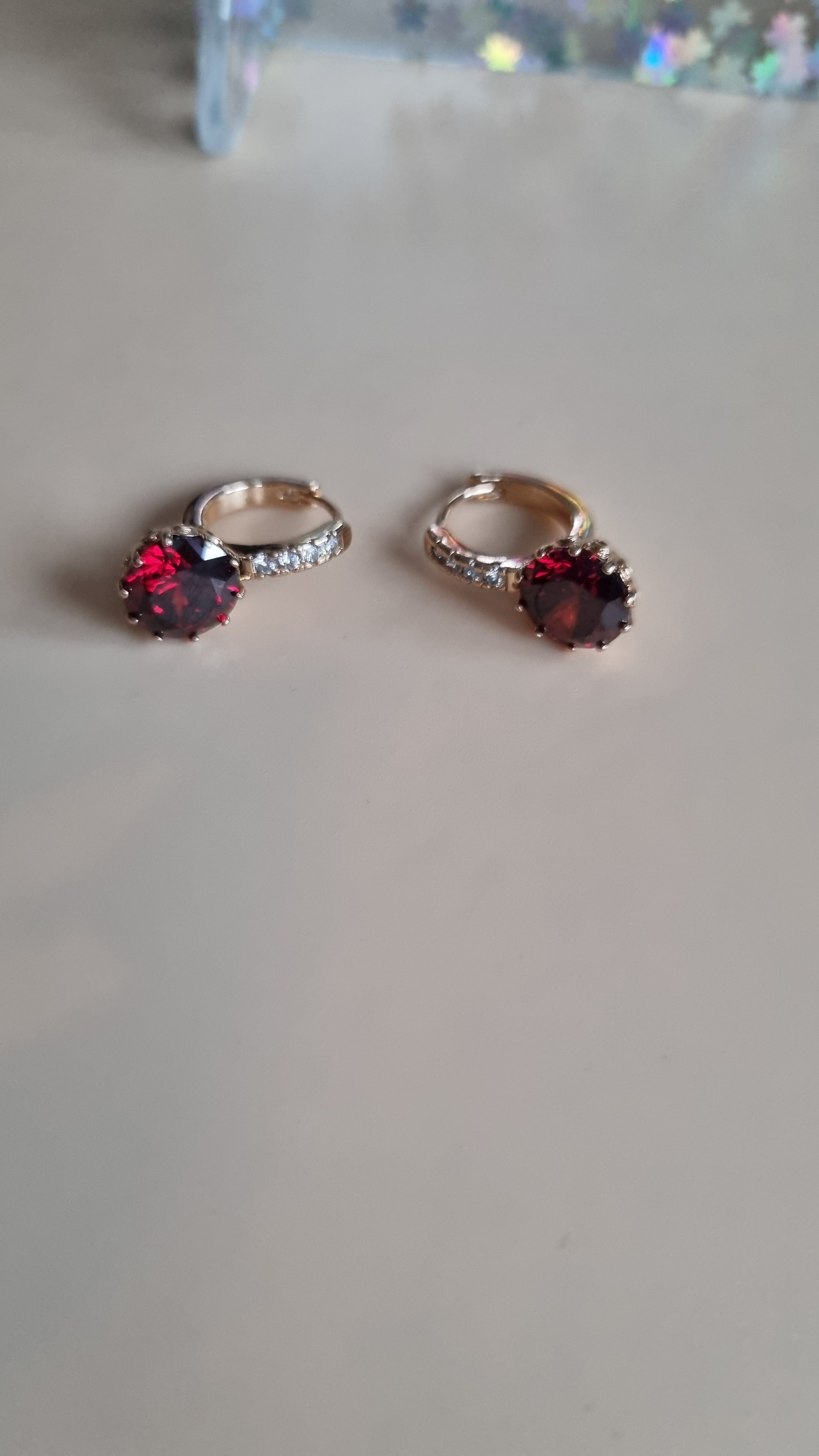 18kr gold plated earings hypoallergenic waterproof free nickel with zircon stone granet