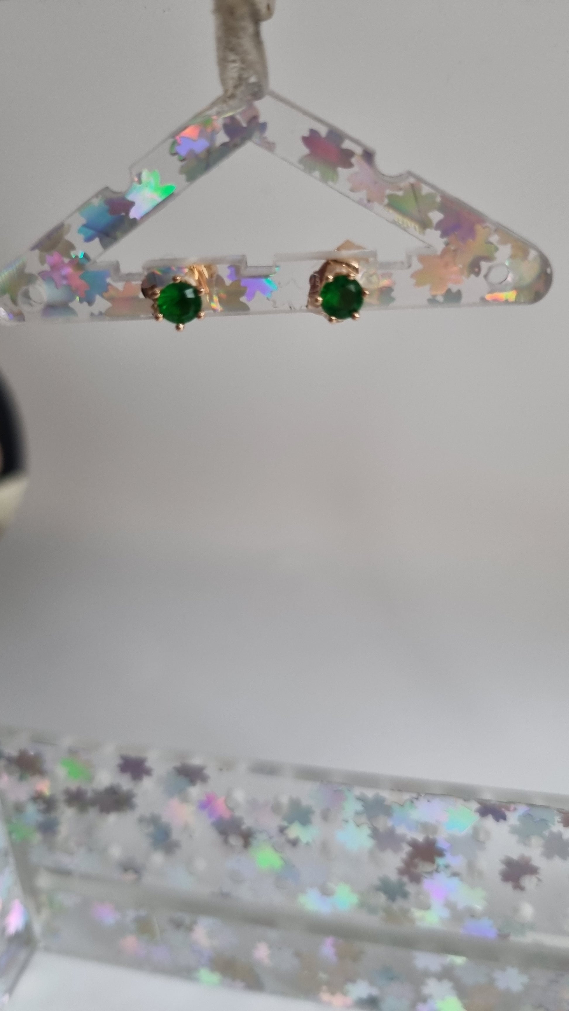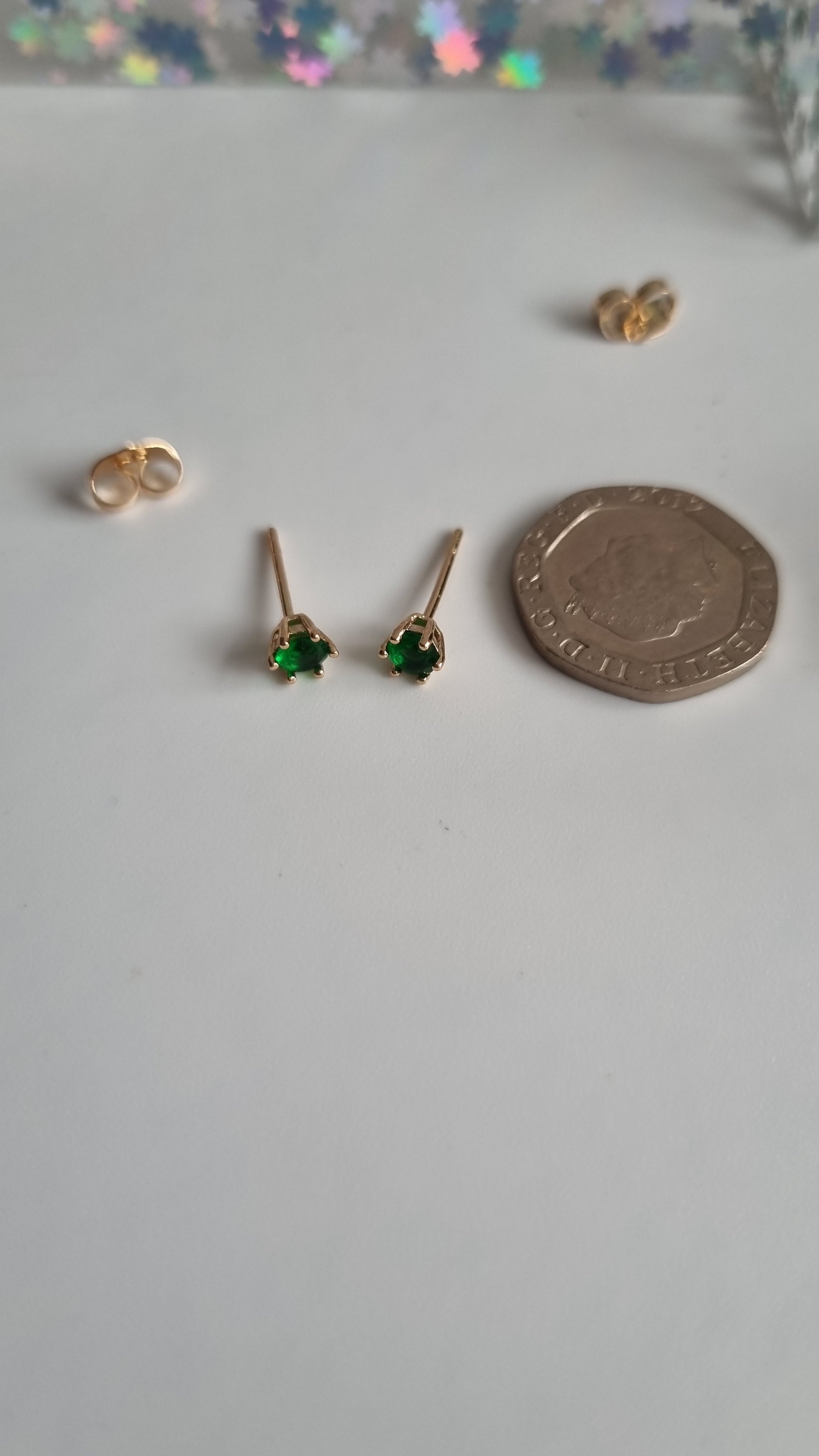 18kr gold plated earings stud with green colour zircon stone free nickel hypoallergenic waterproof