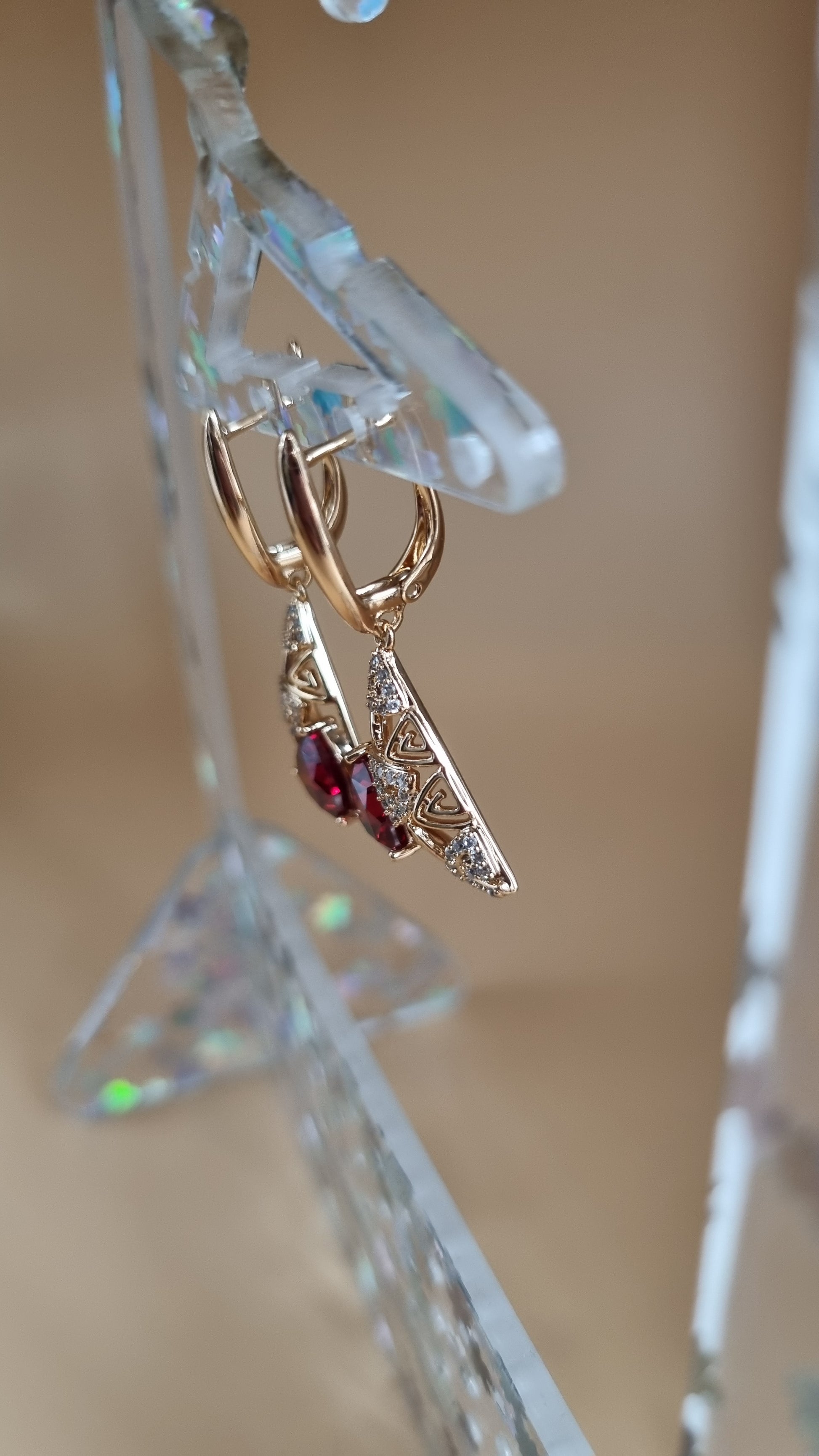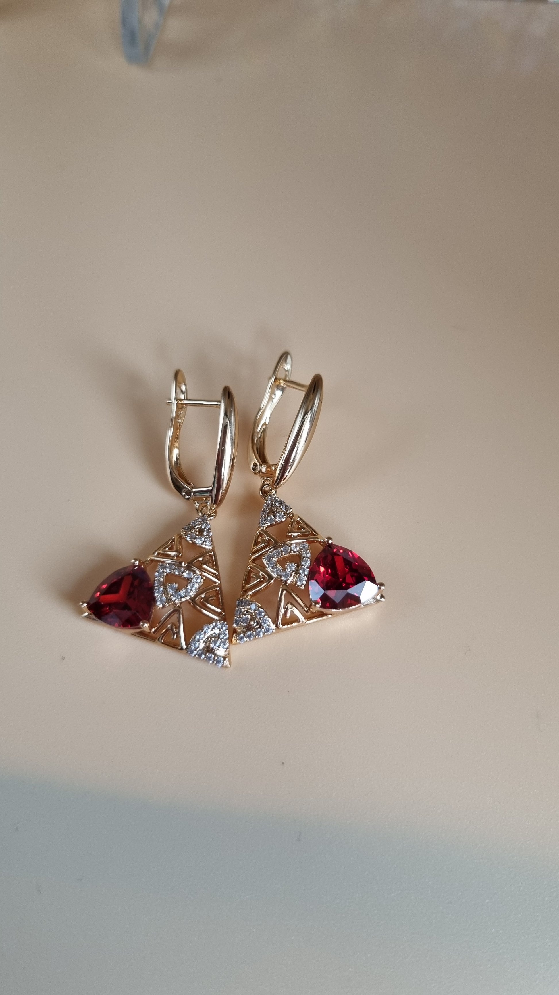 18kr.gold plated earrings waterproof free nickel hypoallergenic with granet zircon stone