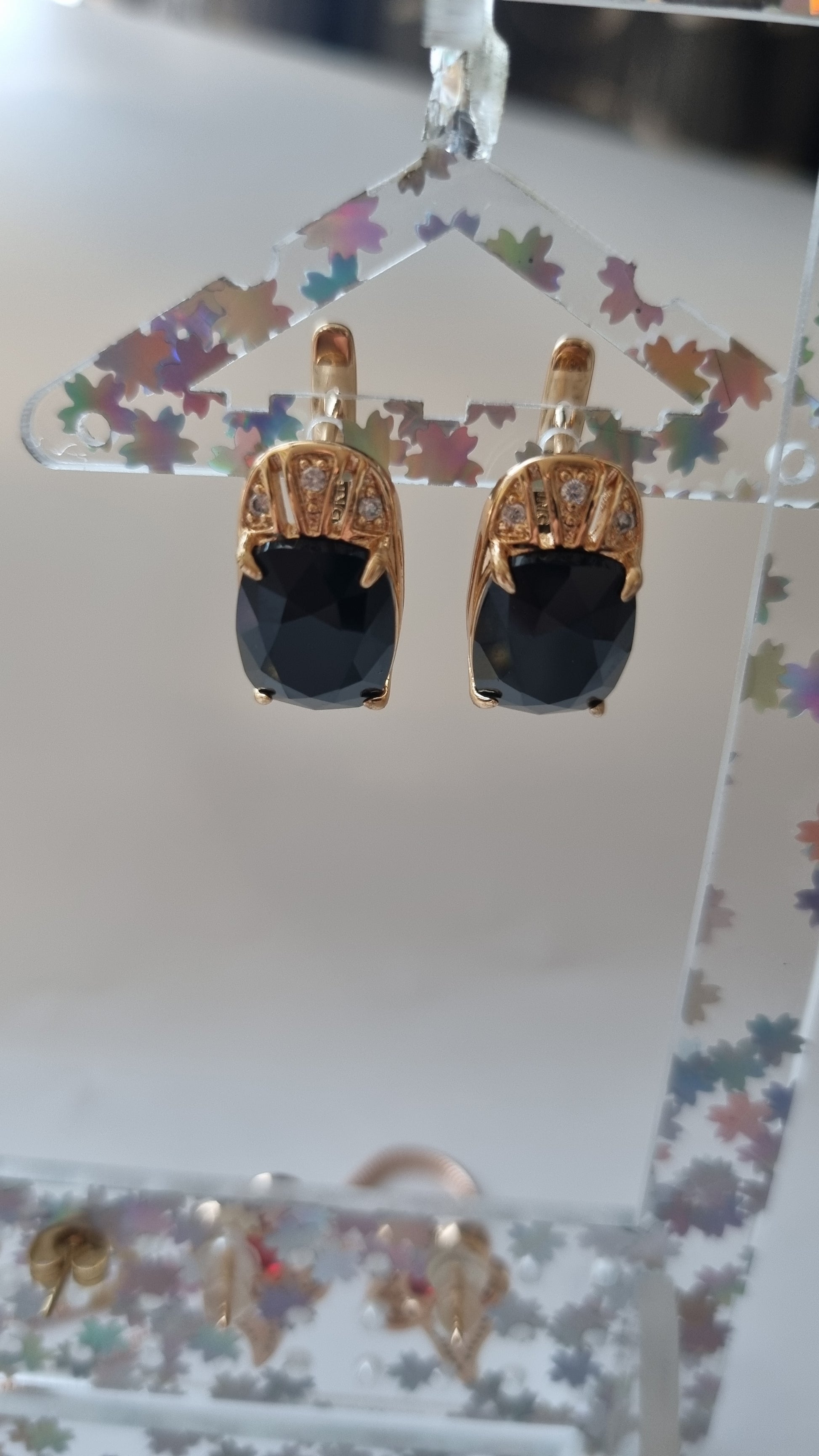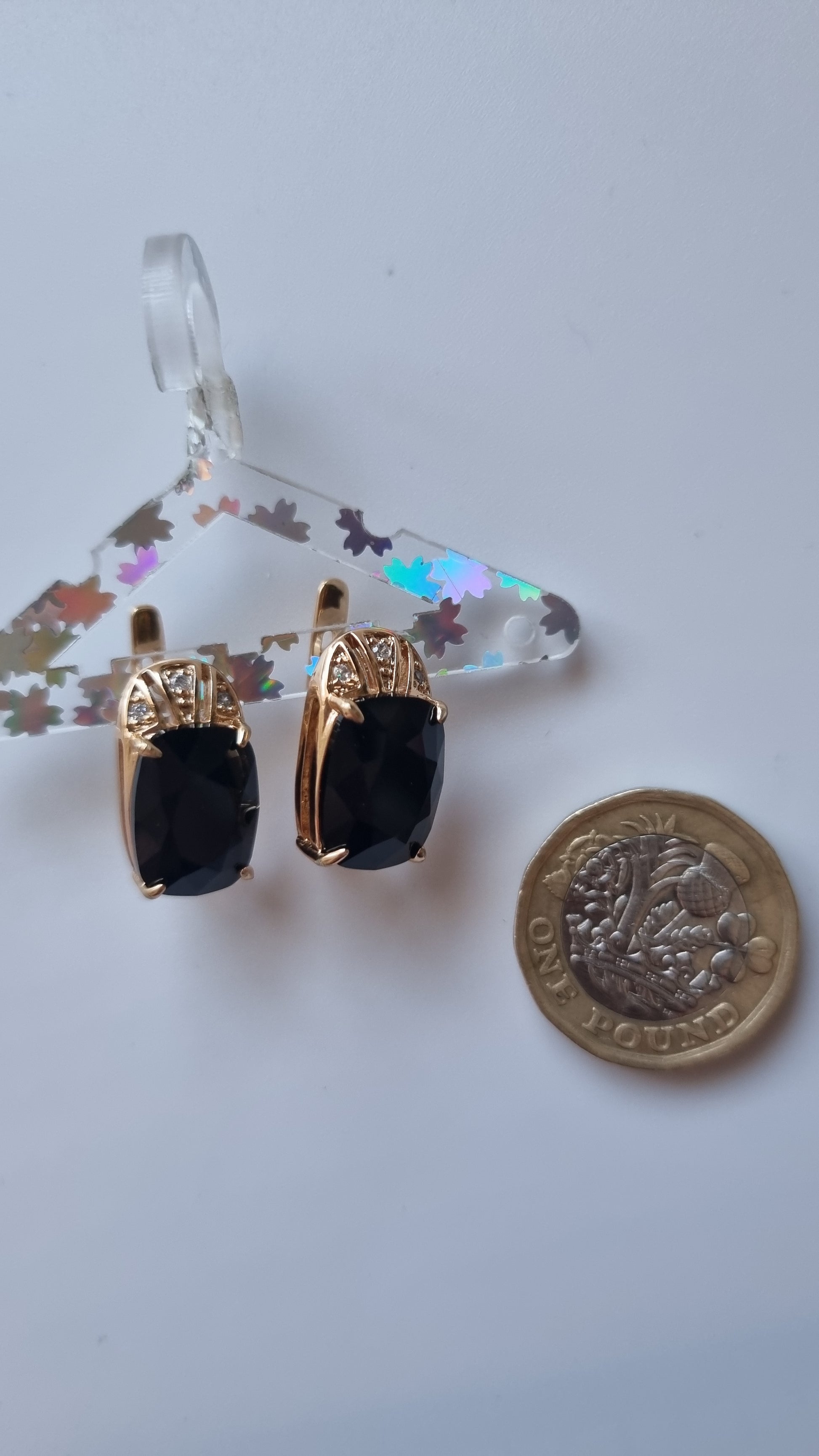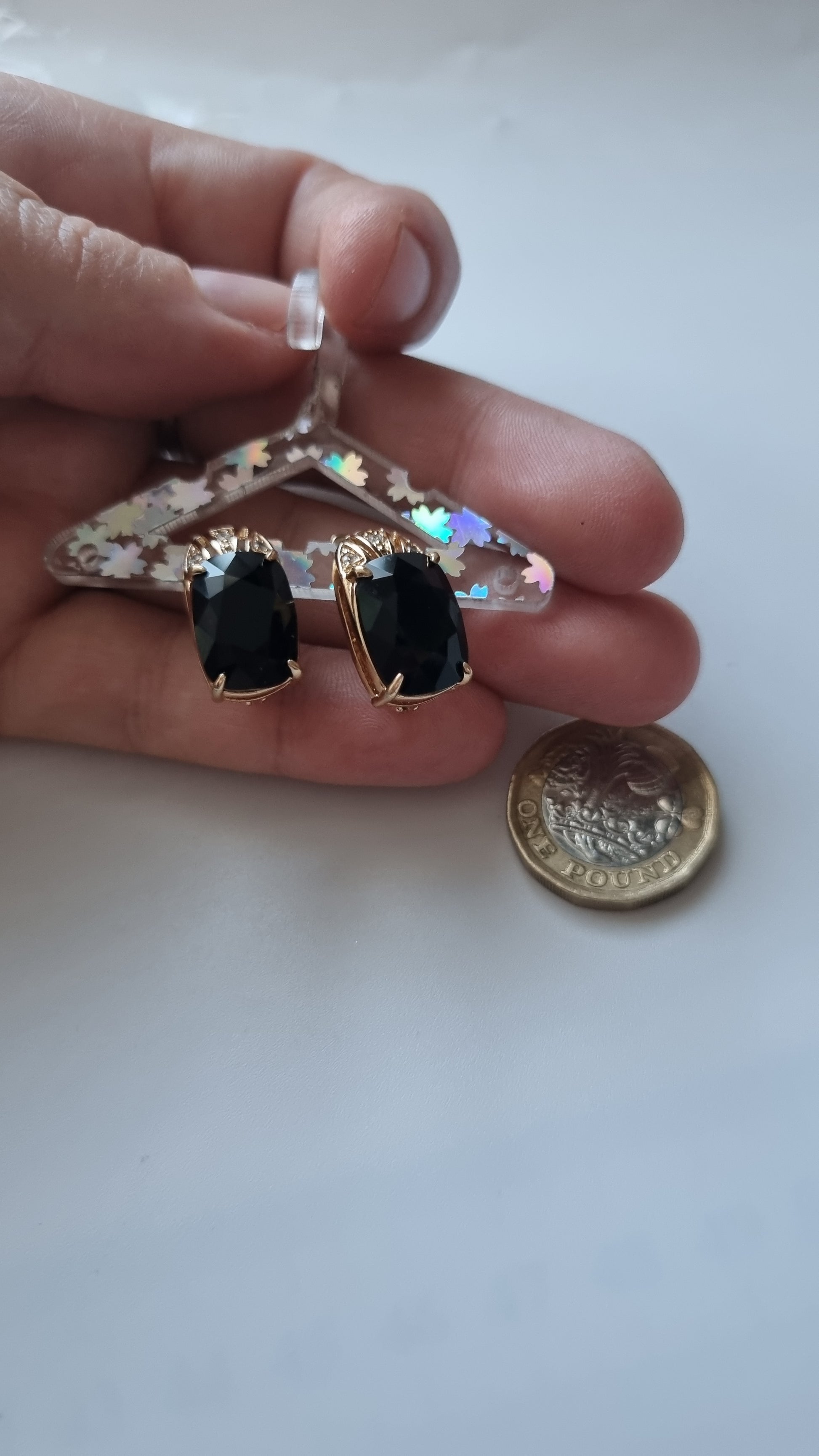 Expertly crafted with black swarovski crystals, these elegant 18k gold plated earrings are both beautiful and hypoallergenic. The waterproof design ensures they can be worn daily without worry, while the nickel-free materials make them safe for even the most sensitive ears. Topped off with a secure English lock closure, these earrings are a must-have for any fashionable woman.