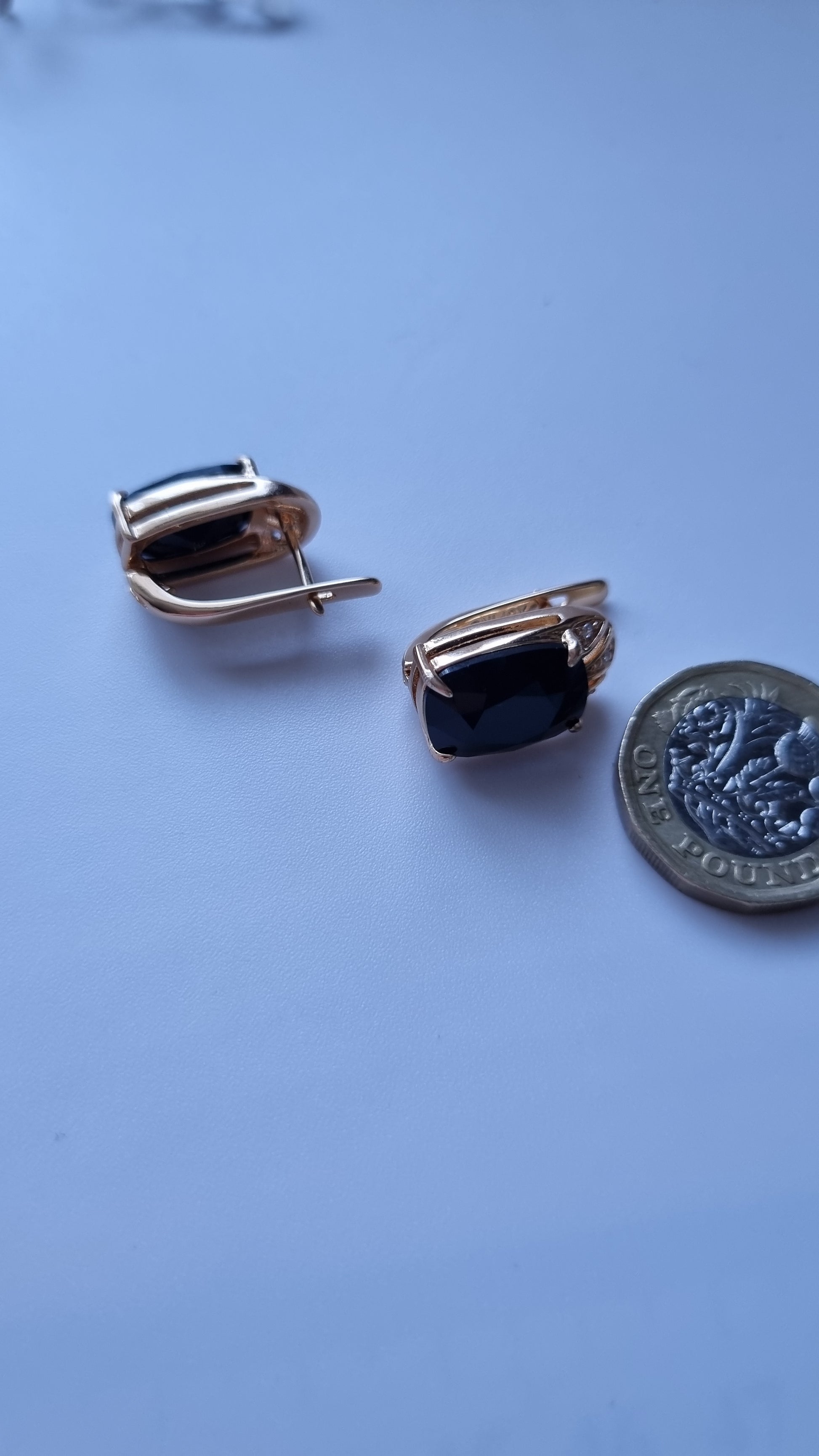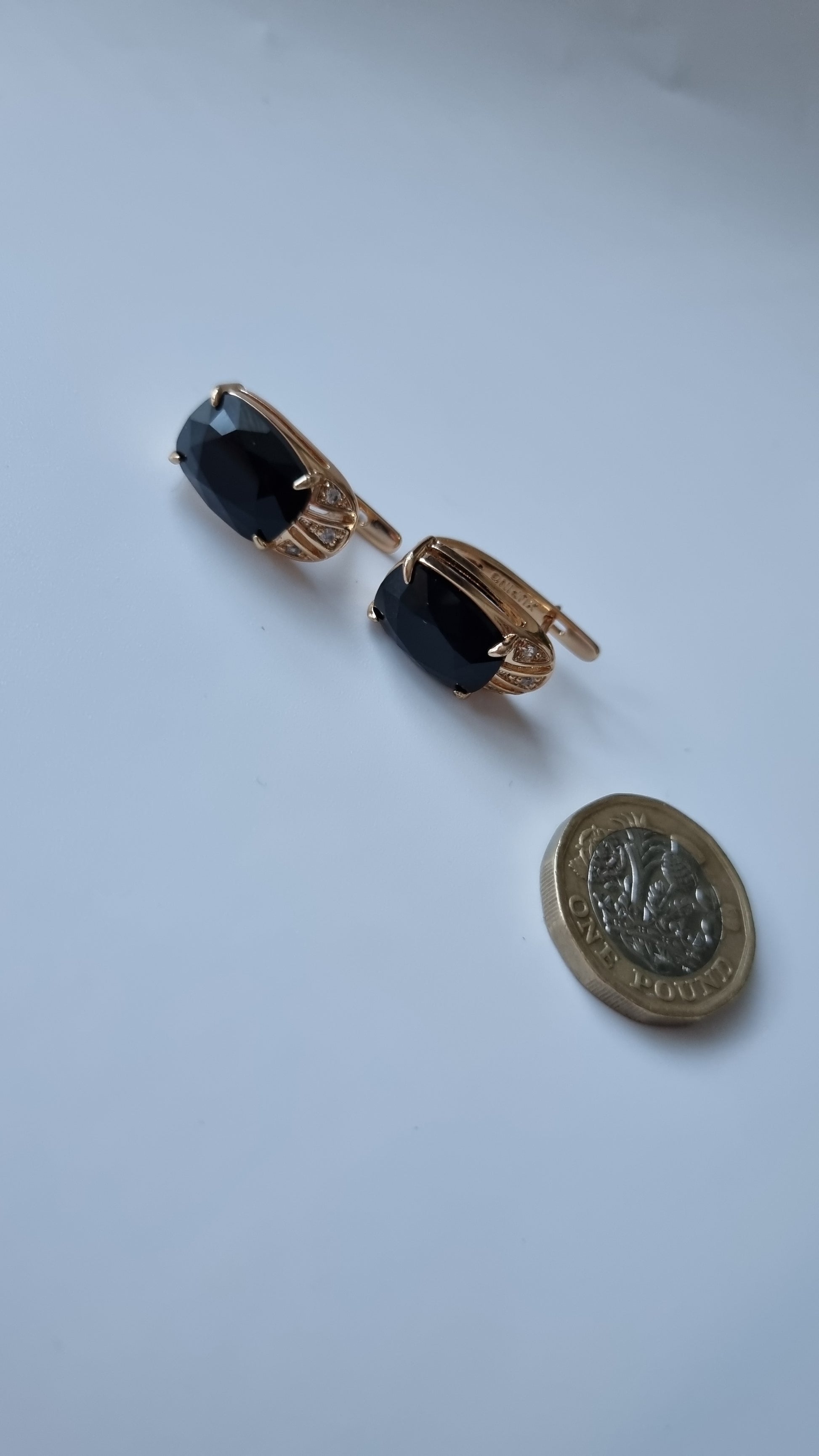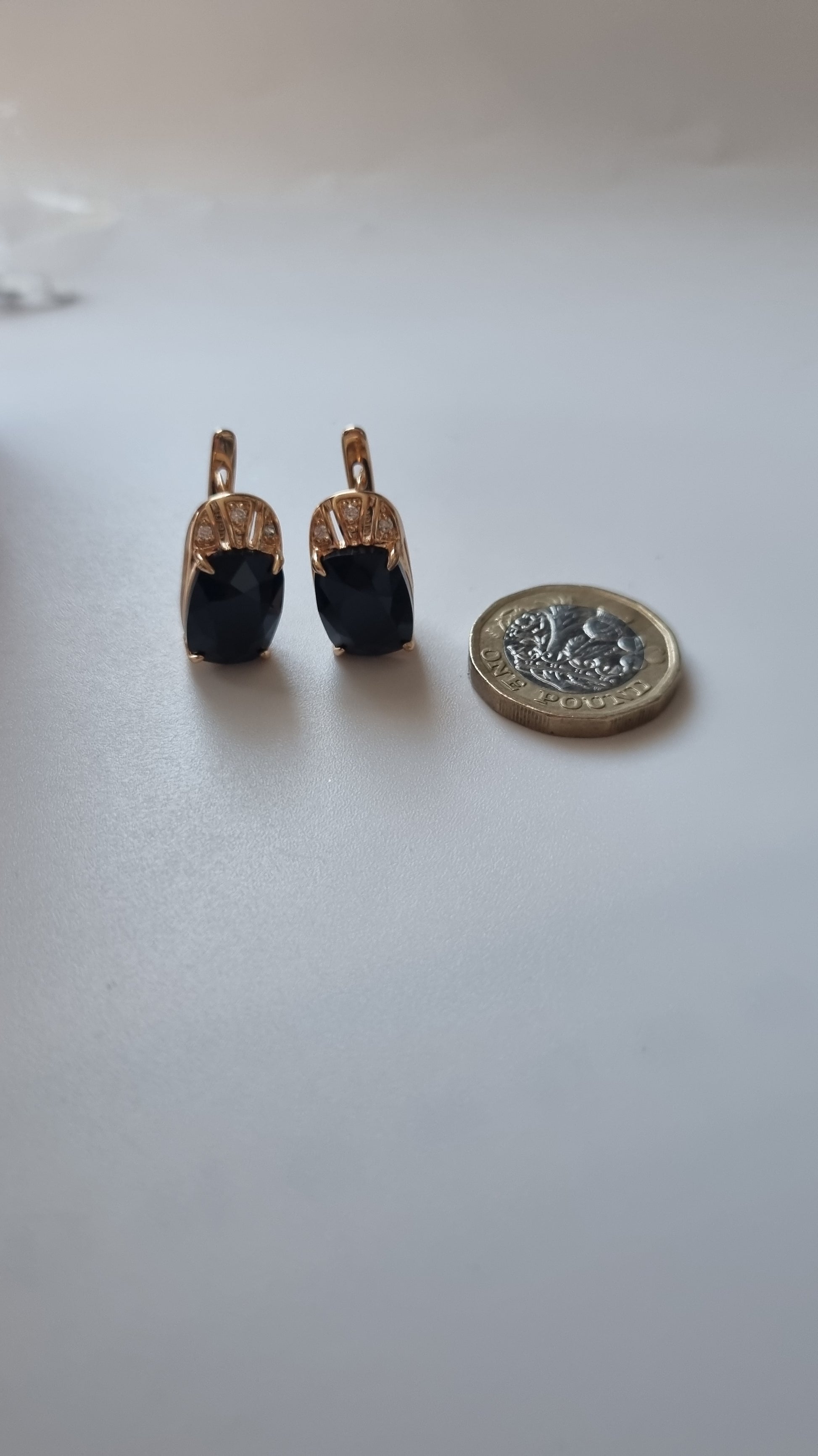 Expertly crafted with black swarovski crystals, these elegant 18k gold plated earrings are both beautiful and hypoallergenic. The waterproof design ensures they can be worn daily without worry, while the nickel-free materials make them safe for even the most sensitive ears. Topped off with a secure English lock closure, these earrings are a must-have for any fashionable woman.