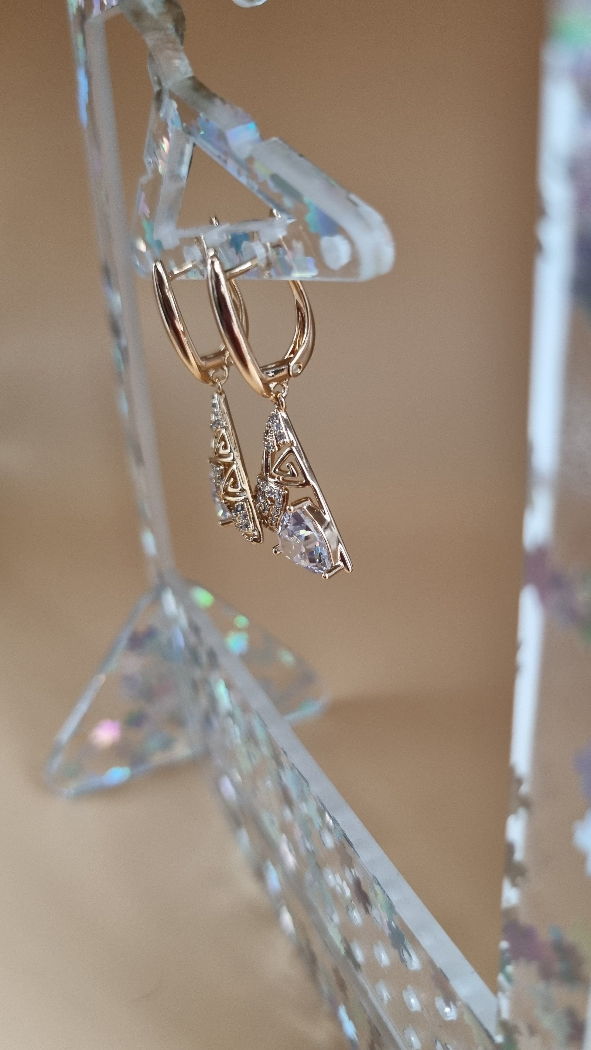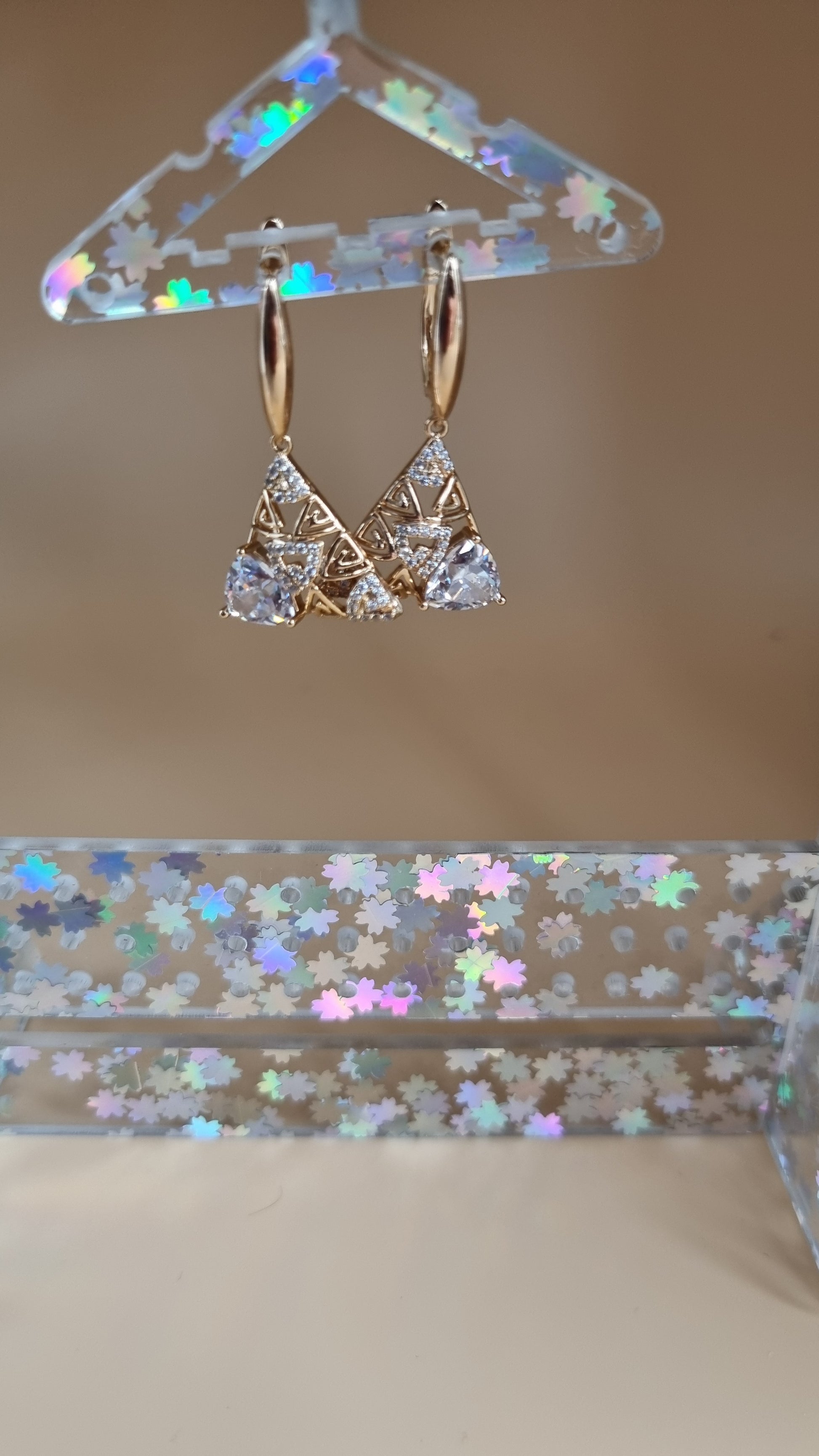 18kr.gold plated earrings with white zircon stone free nickel hypoallergenic waterproof