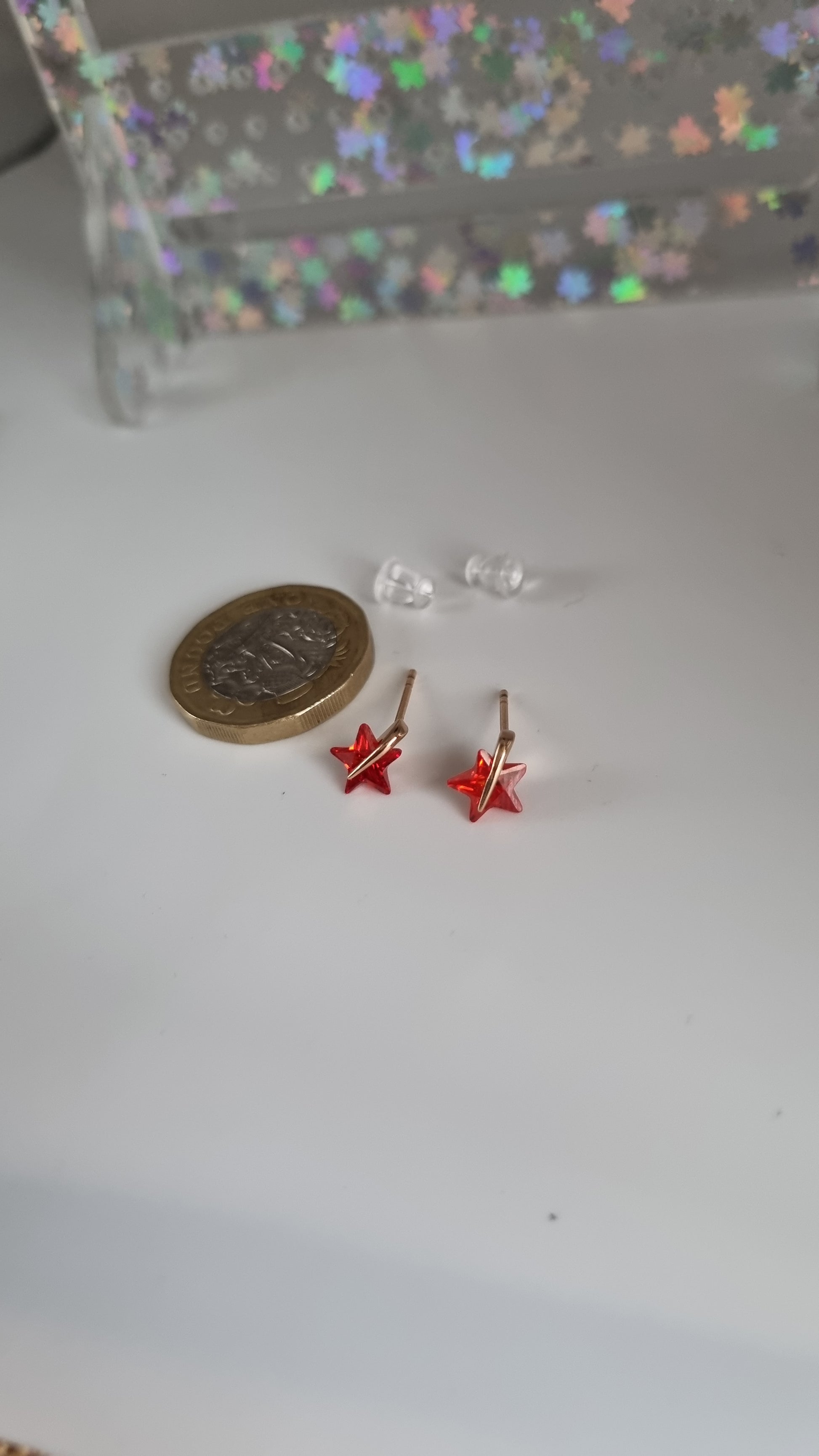 18kr.gold plated earrings with zircon stone red star charm stud