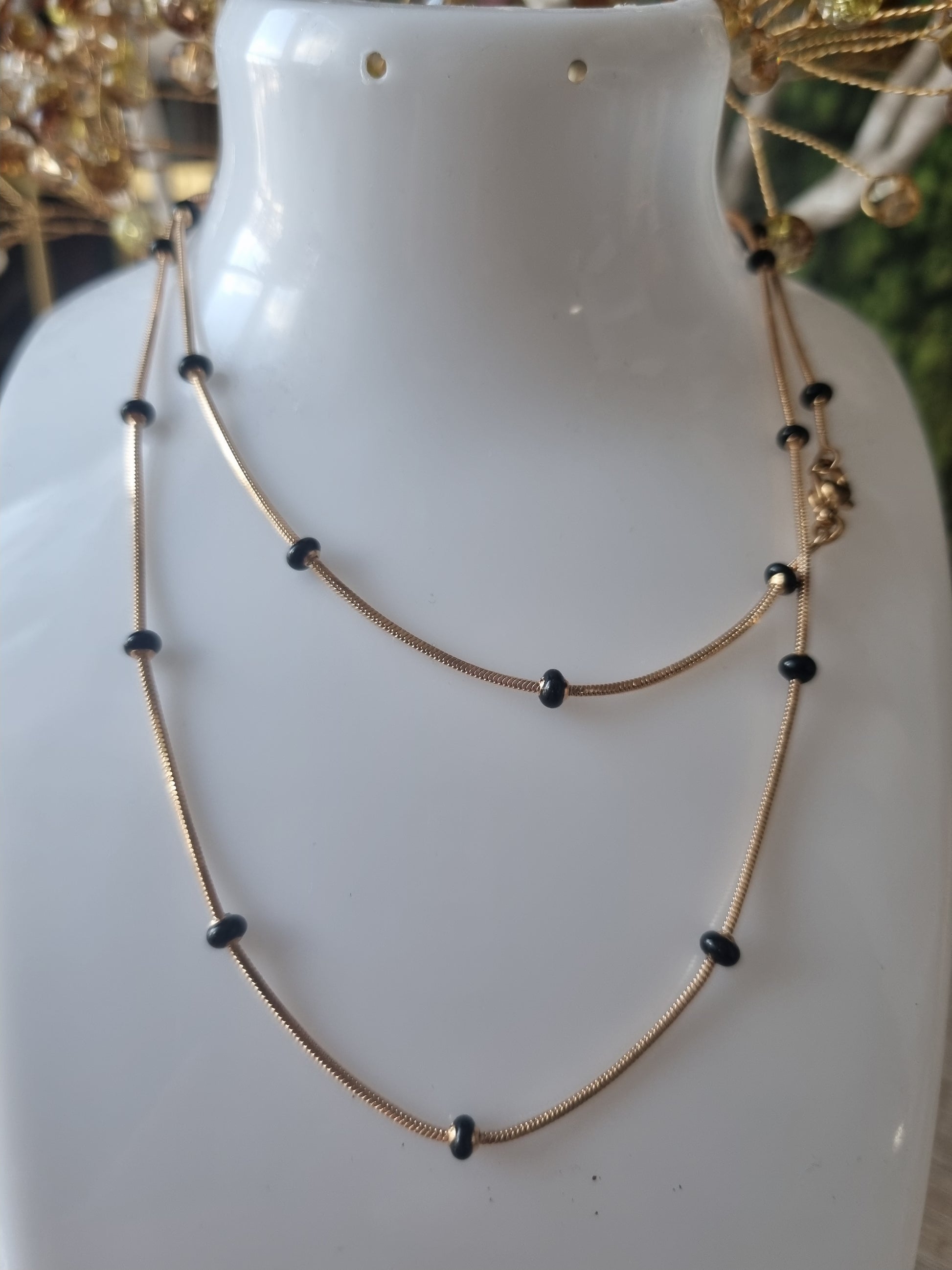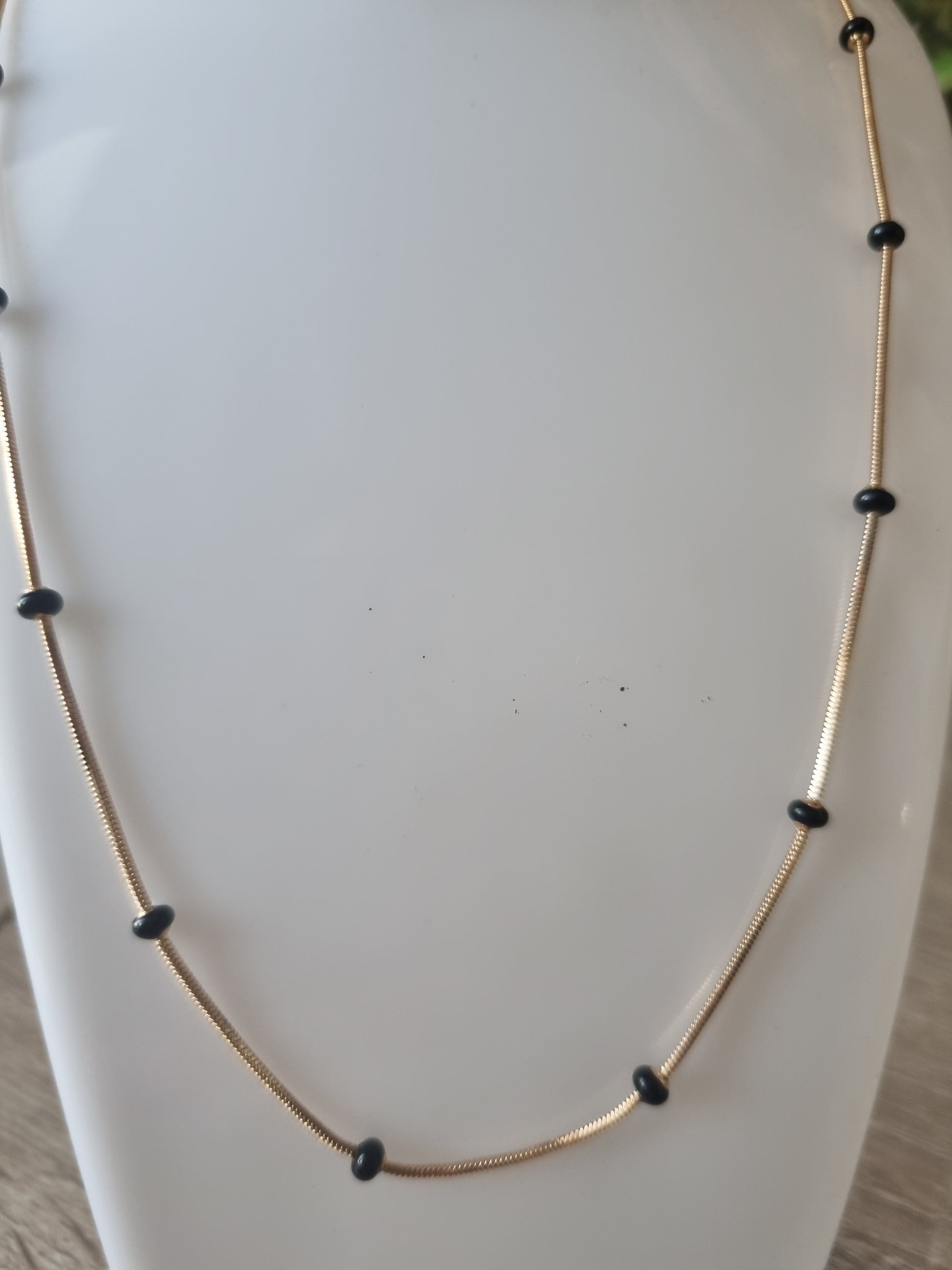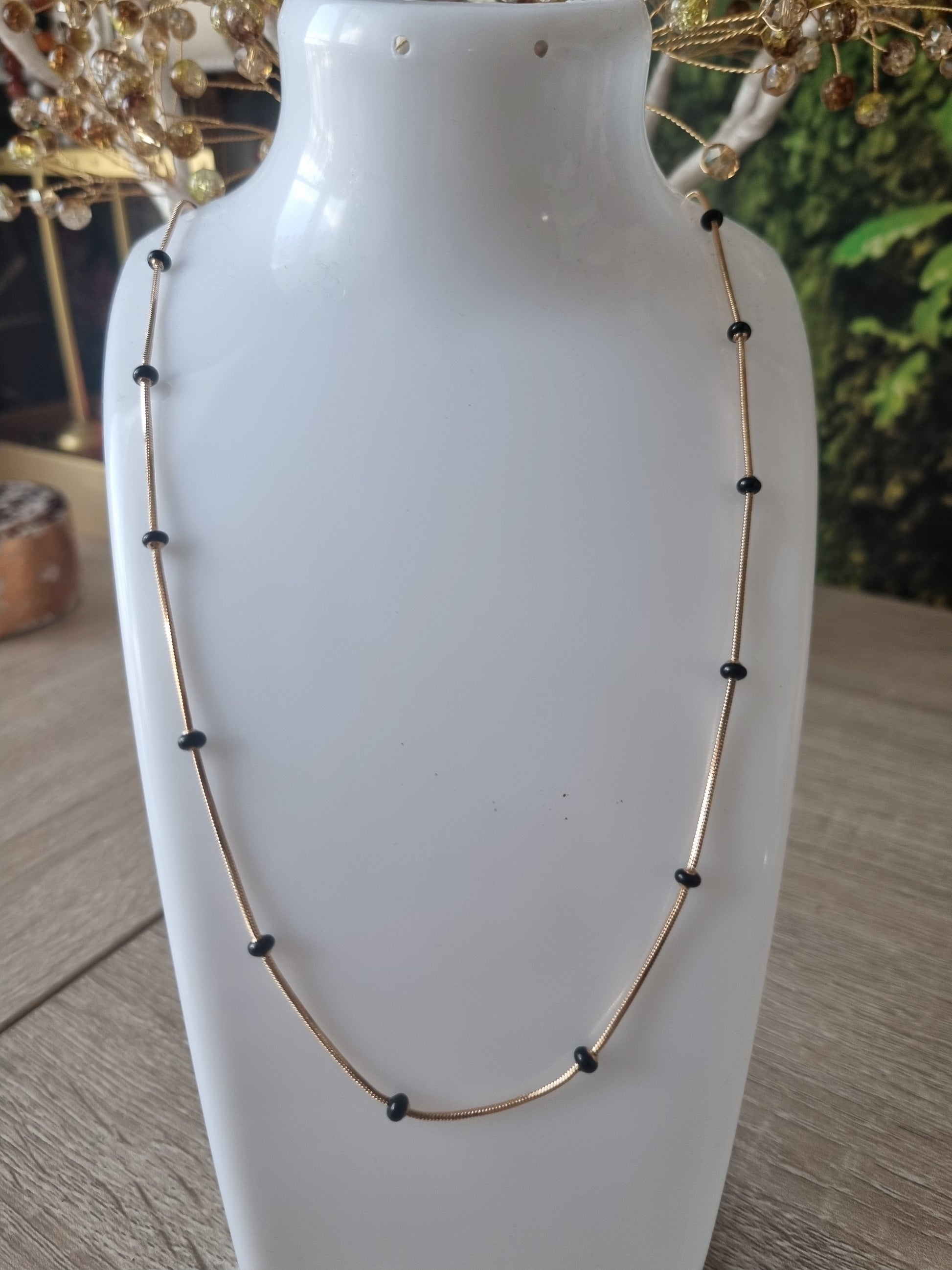 18kr .gold Plated necklace chain waterproof free nickel hypoallergenic with black color beads