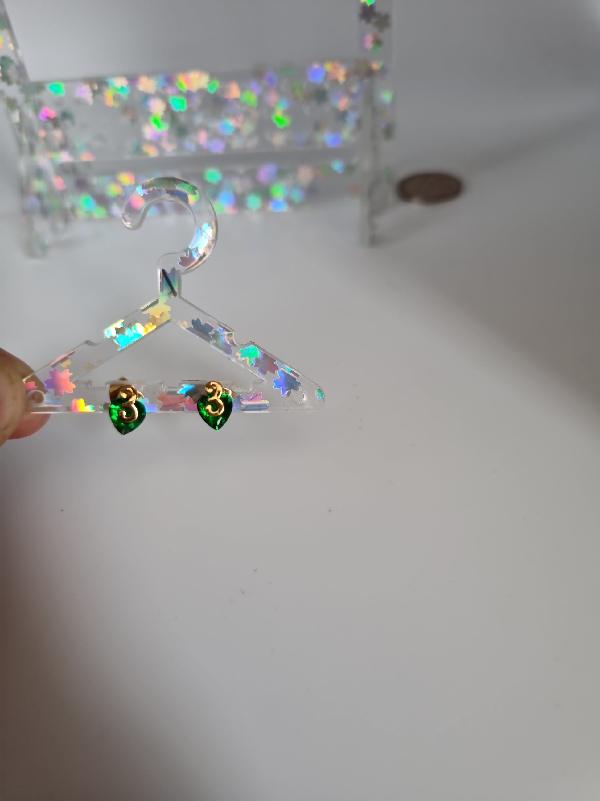 24kr.gold plated earrings with grean zircon stone heart hypoallergenic free nickel waterproof