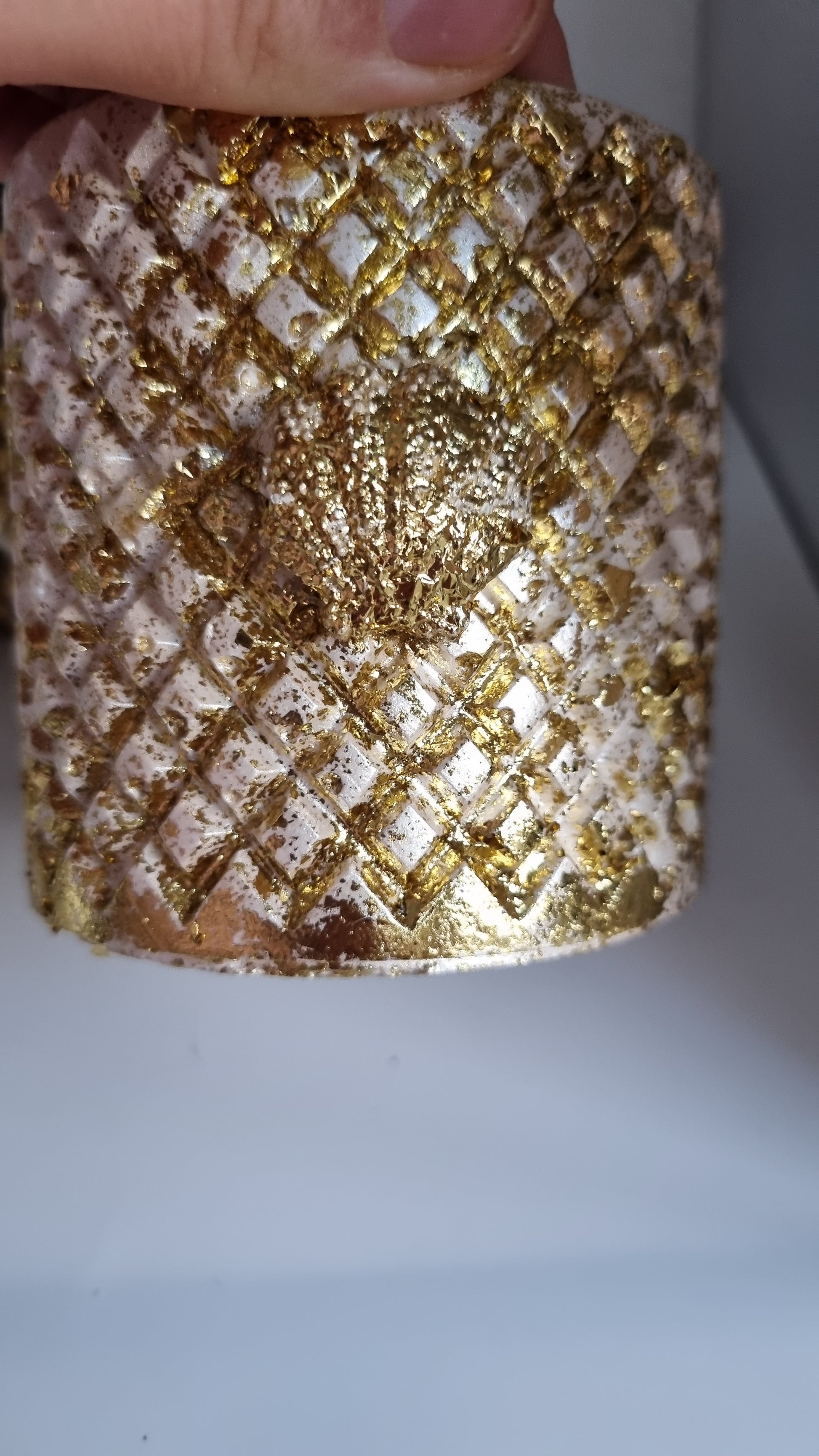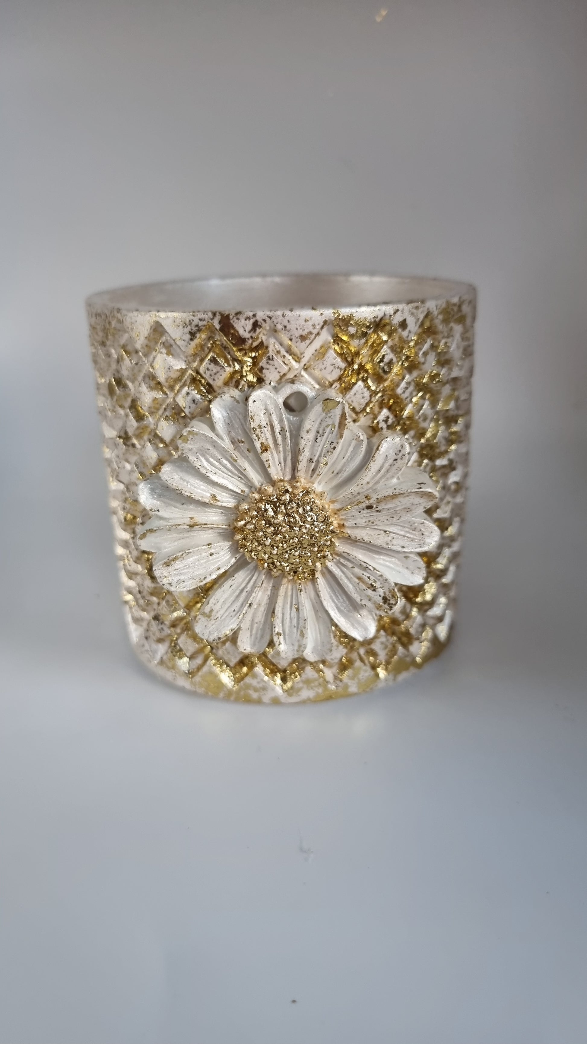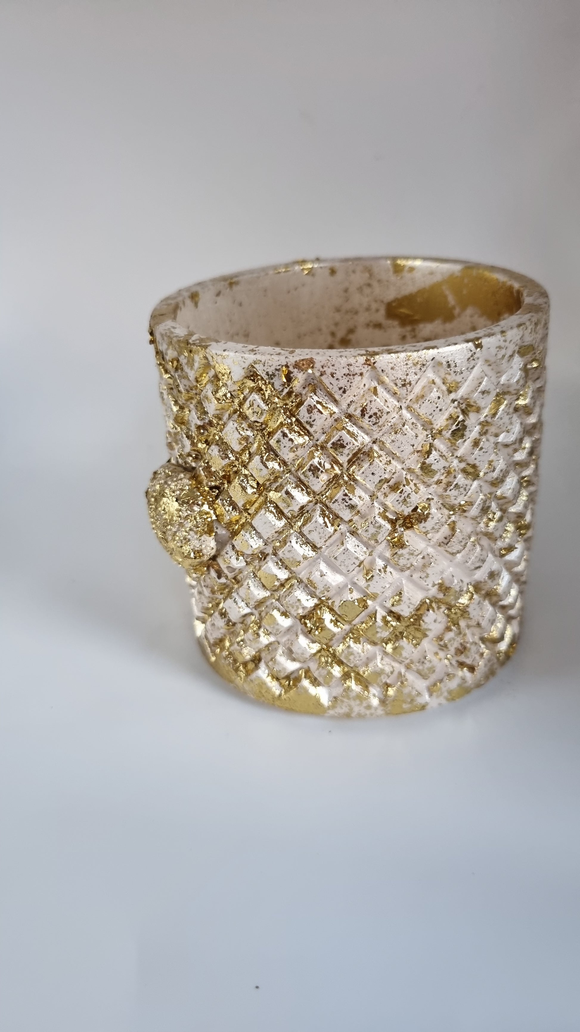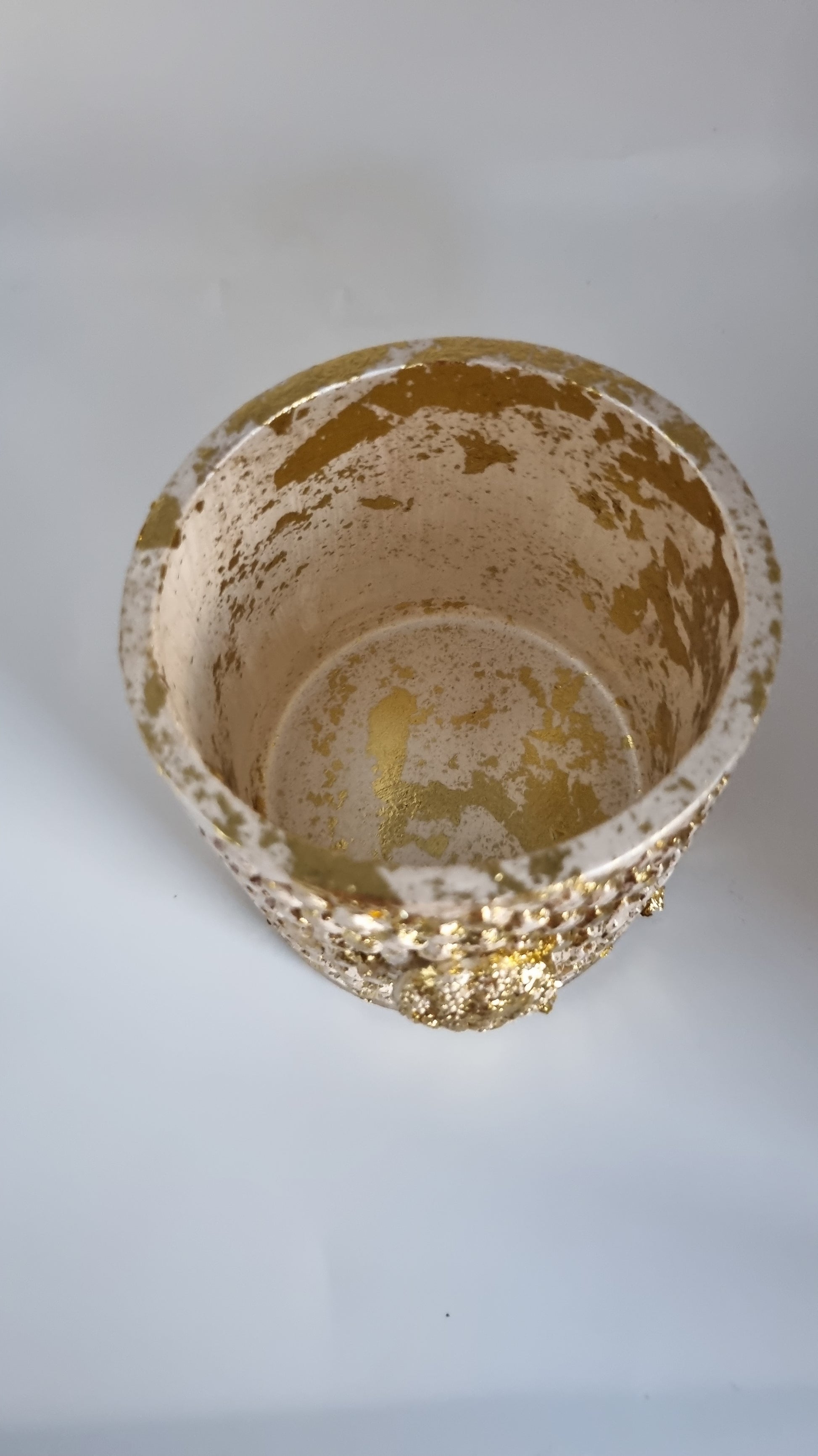 Add a touch of elegance to your home with our beautiful Gypsum jar decor. Its stunning white pearl metallics and gold color will enhance any room. Expertly crafted, this decor piece is perfect for adding a sophisticated touch to your living space.