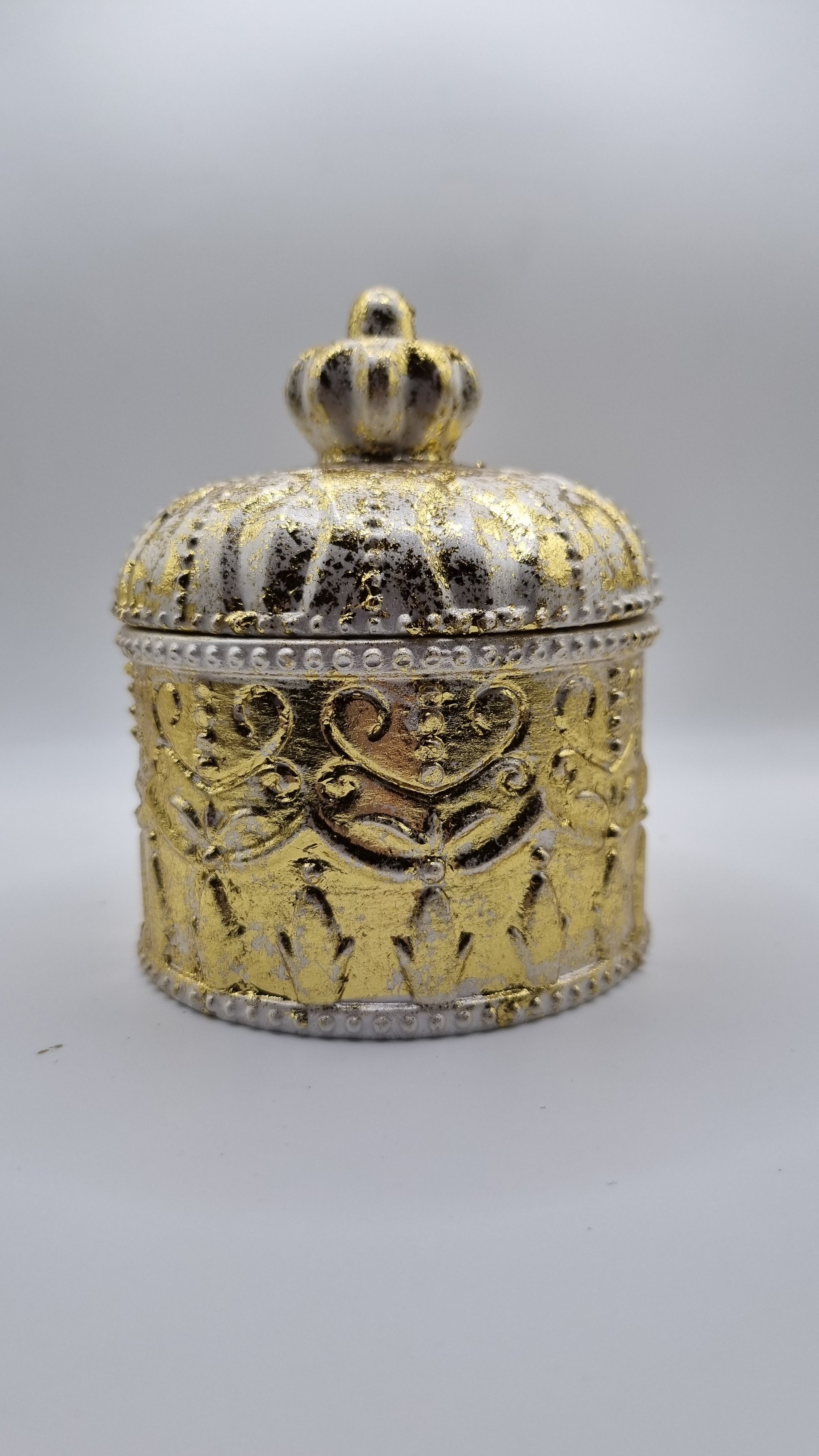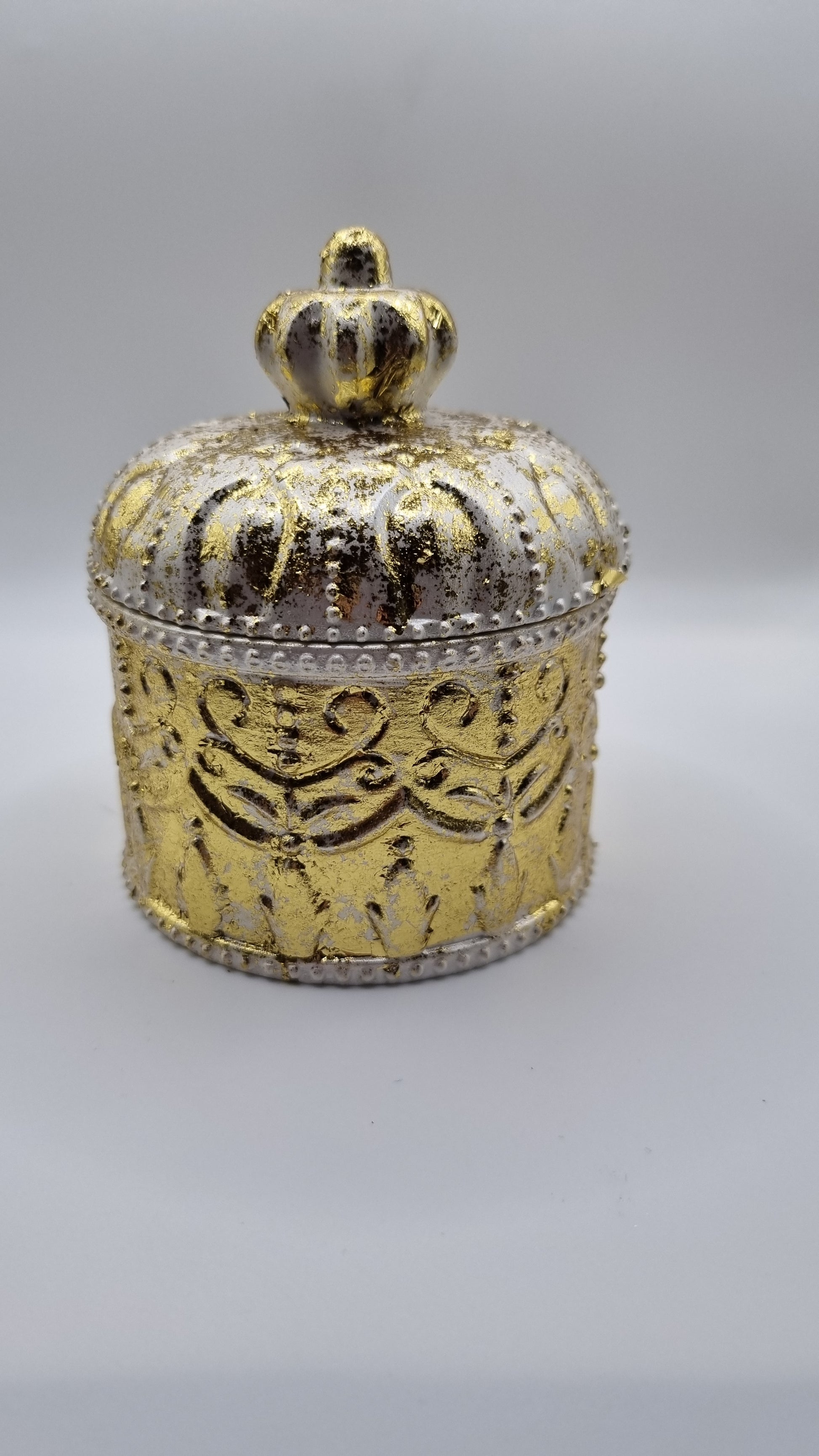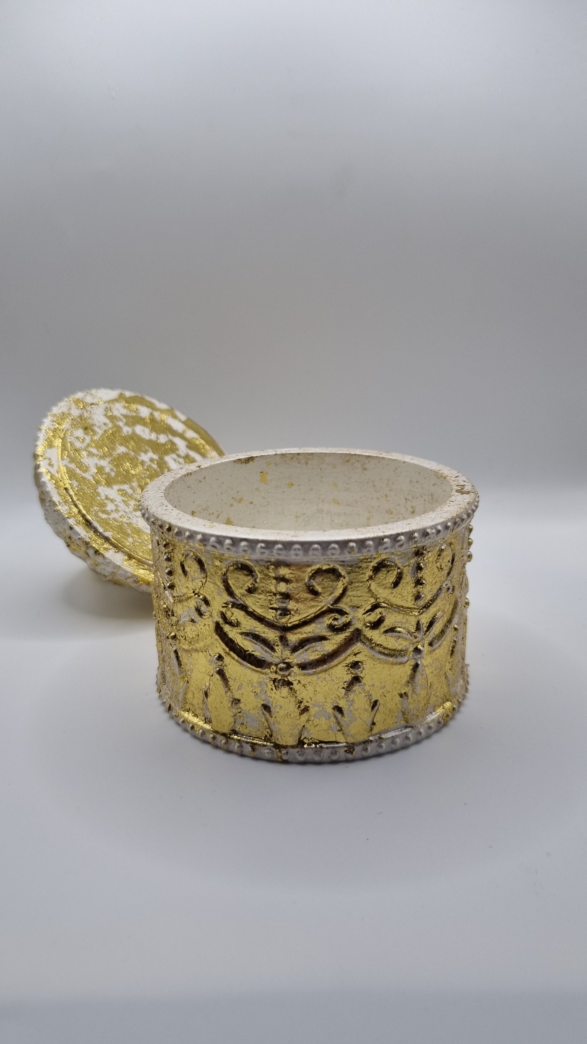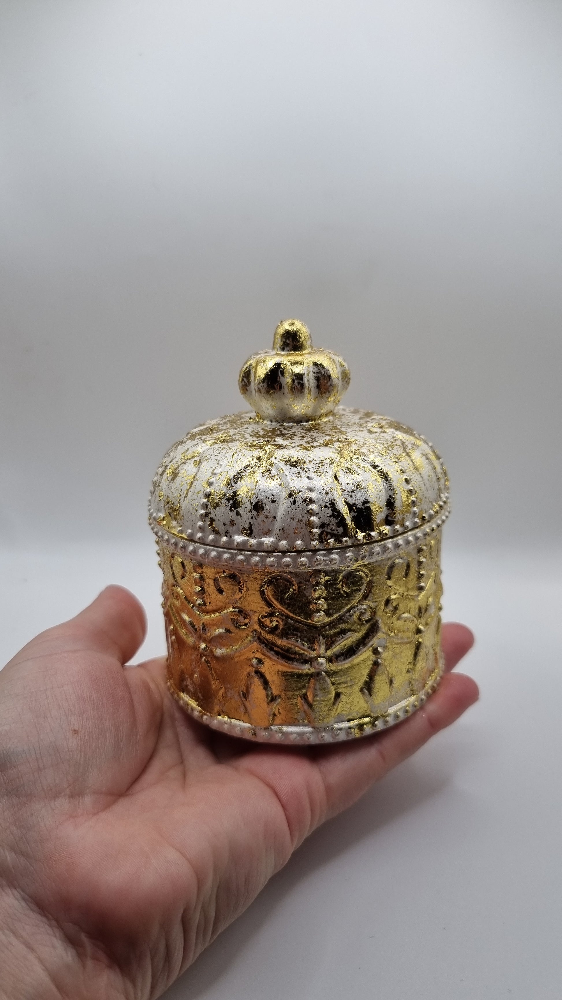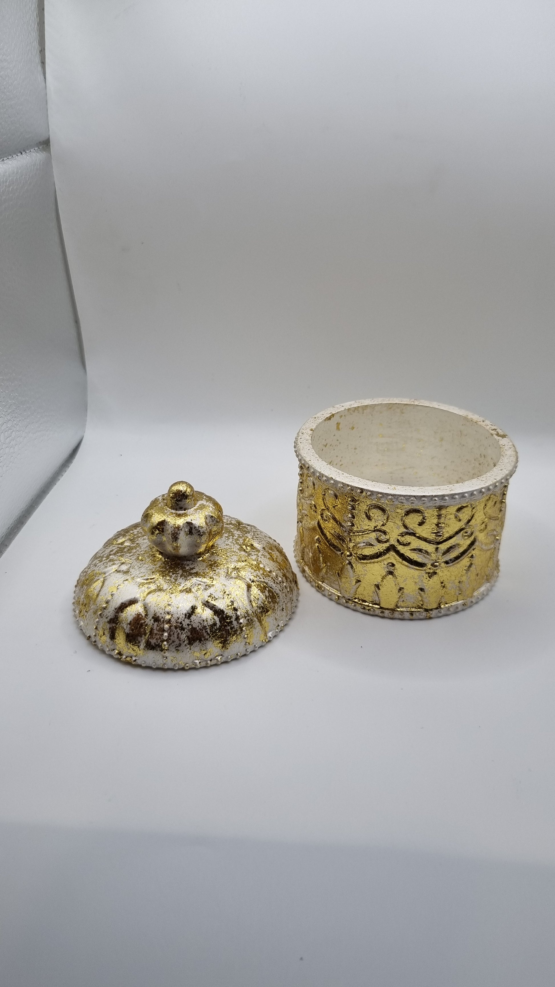 Beautiful jesmonite jars jewellery, candy handmade white pearl metallics color and gold color