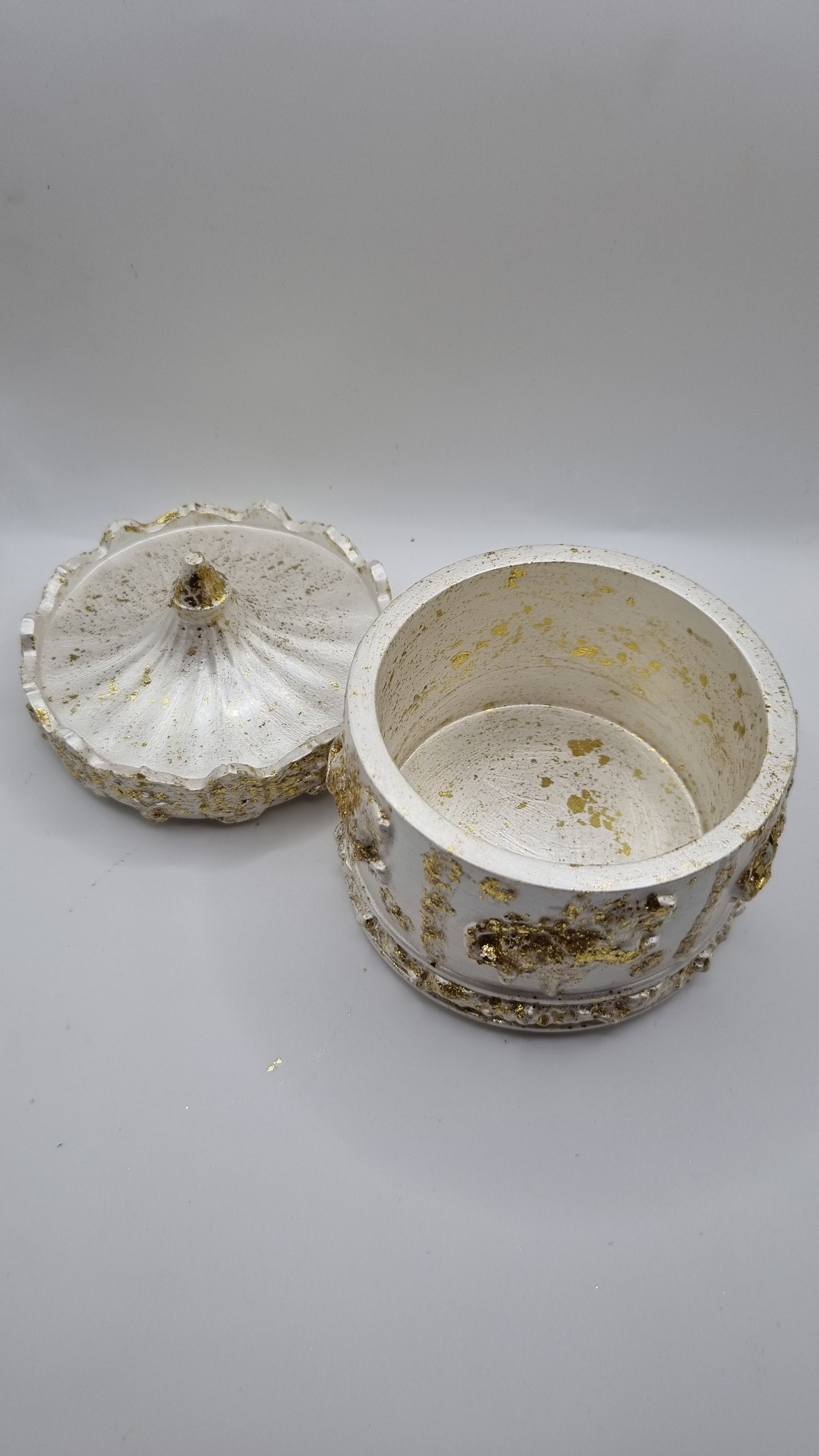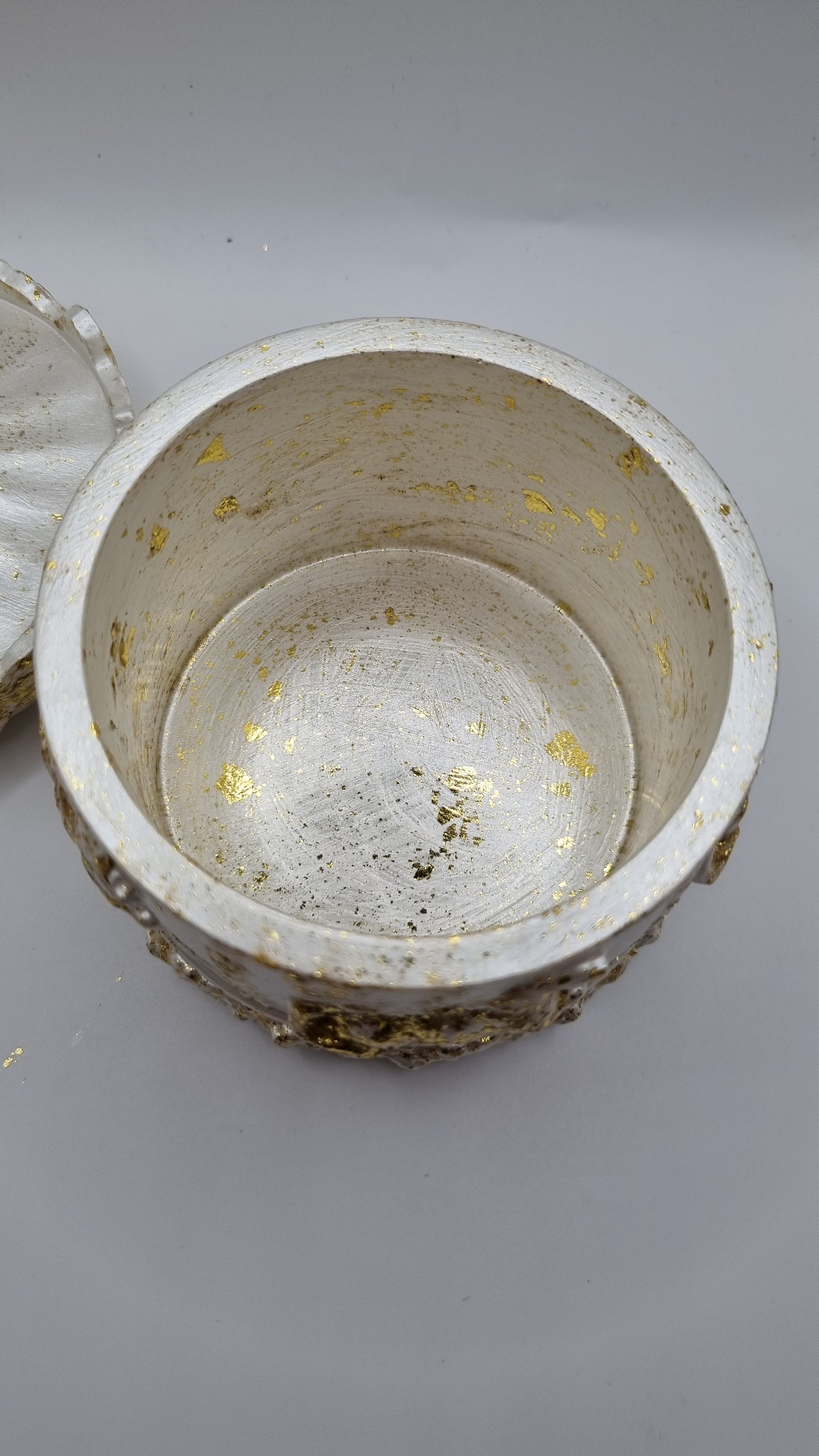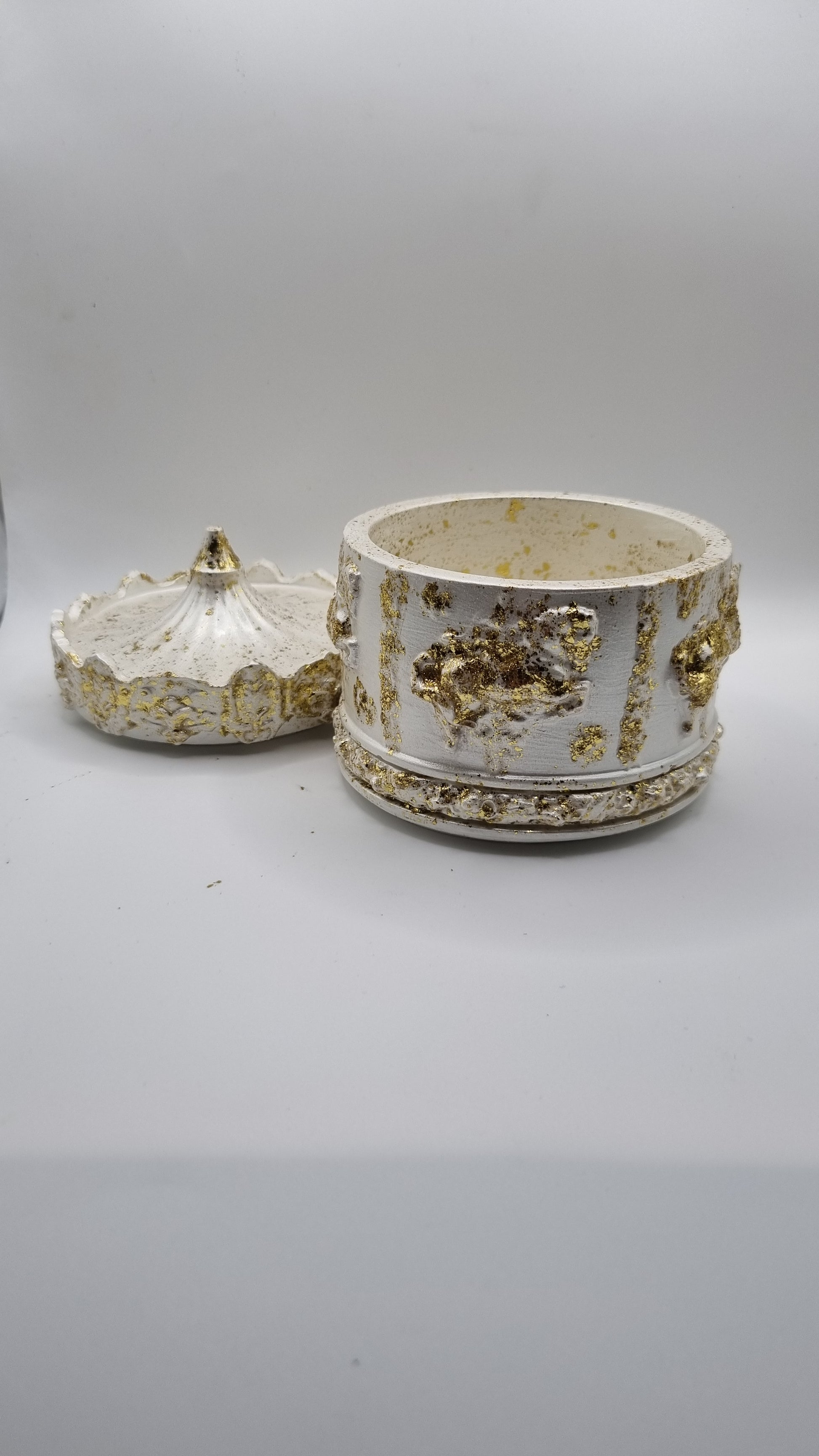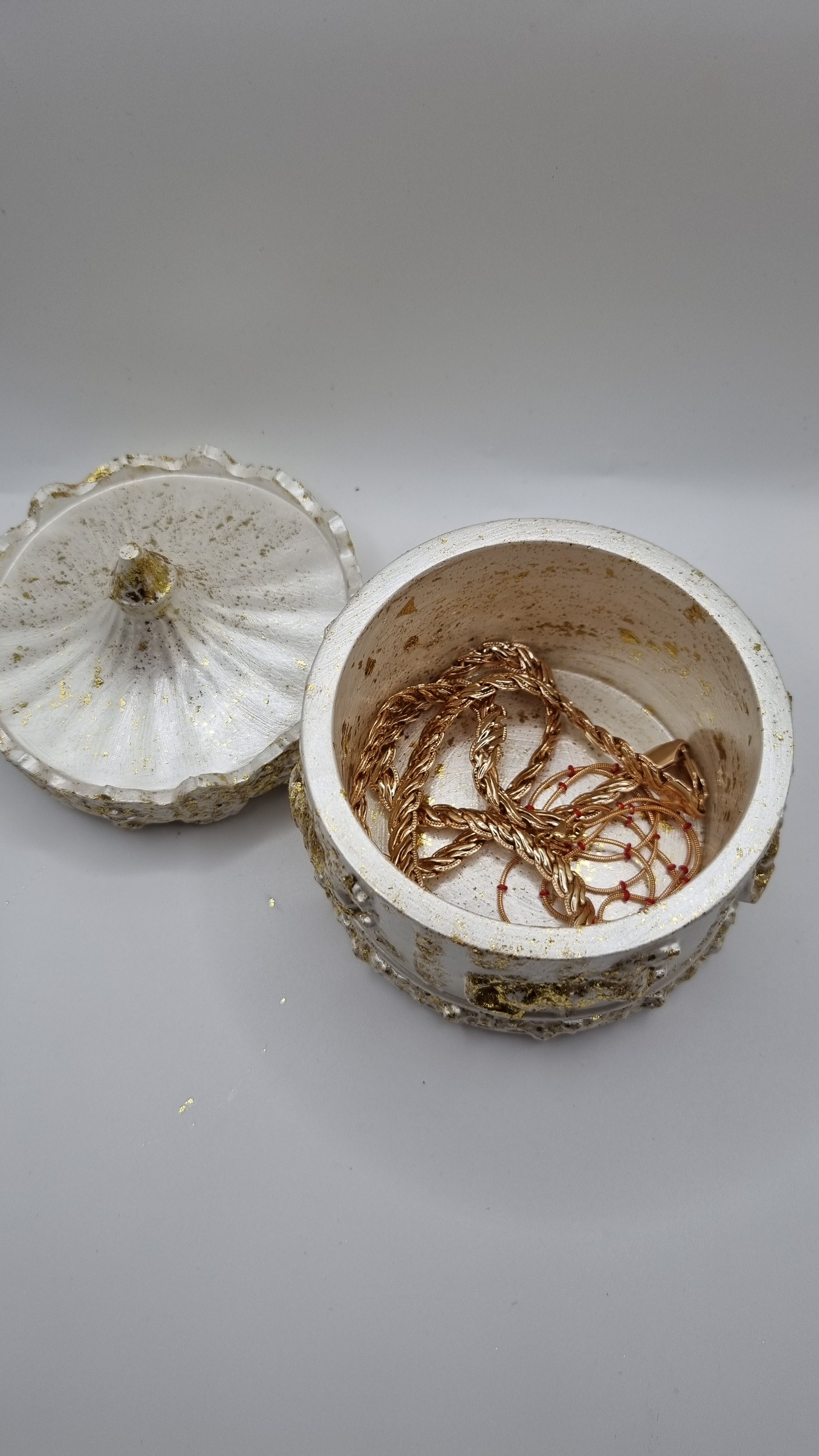 Beautiful jesmonite jars jewellery, candy handmade white pearl metallics color and gold color