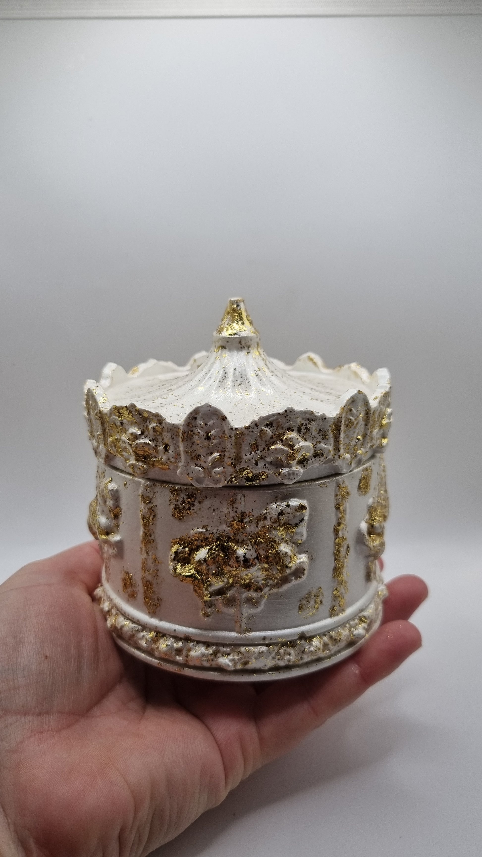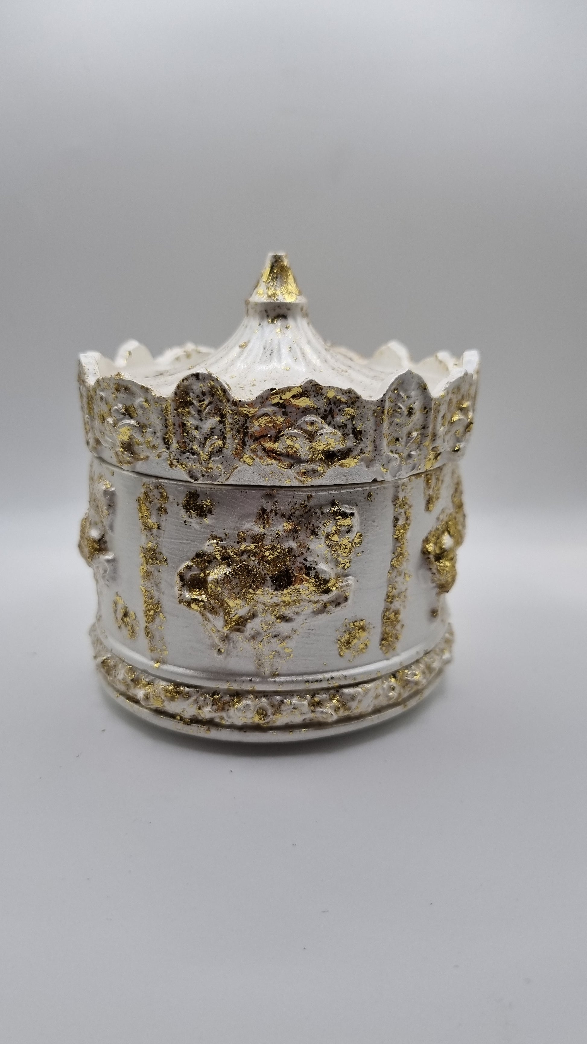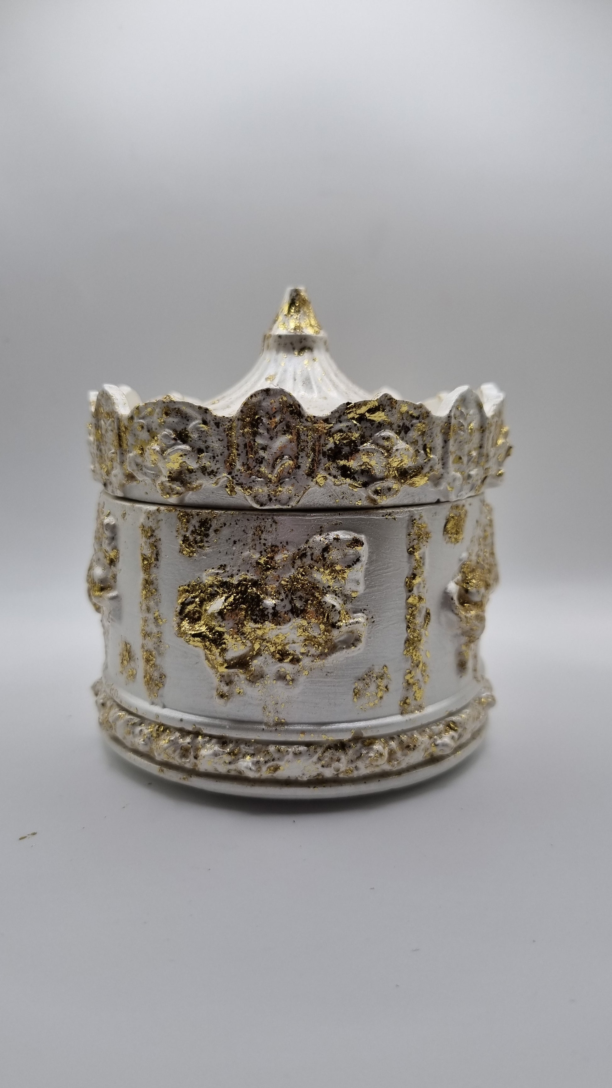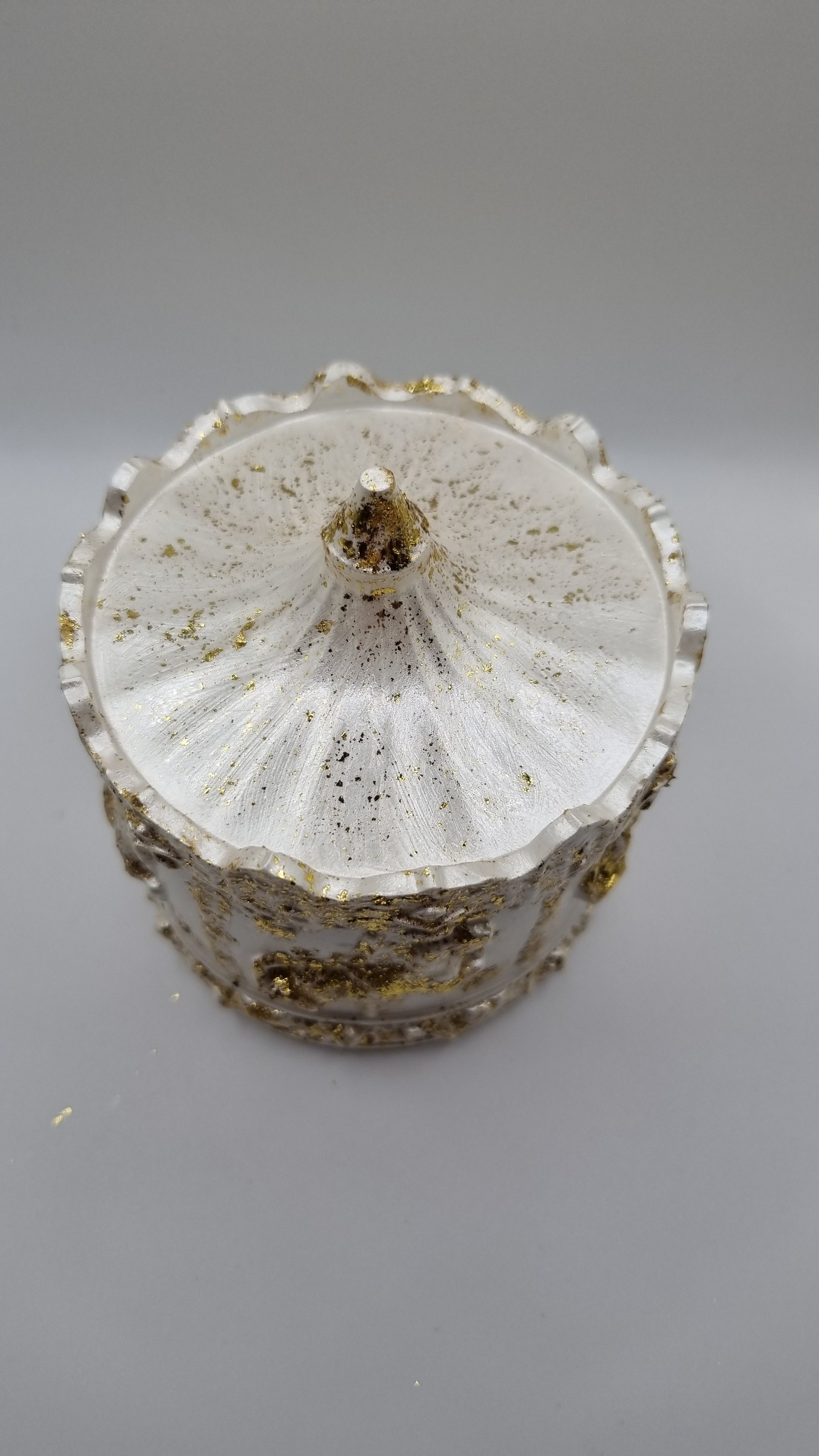 Beautiful jesmonite jars jewellery, candy handmade white pearl metallics color and gold color