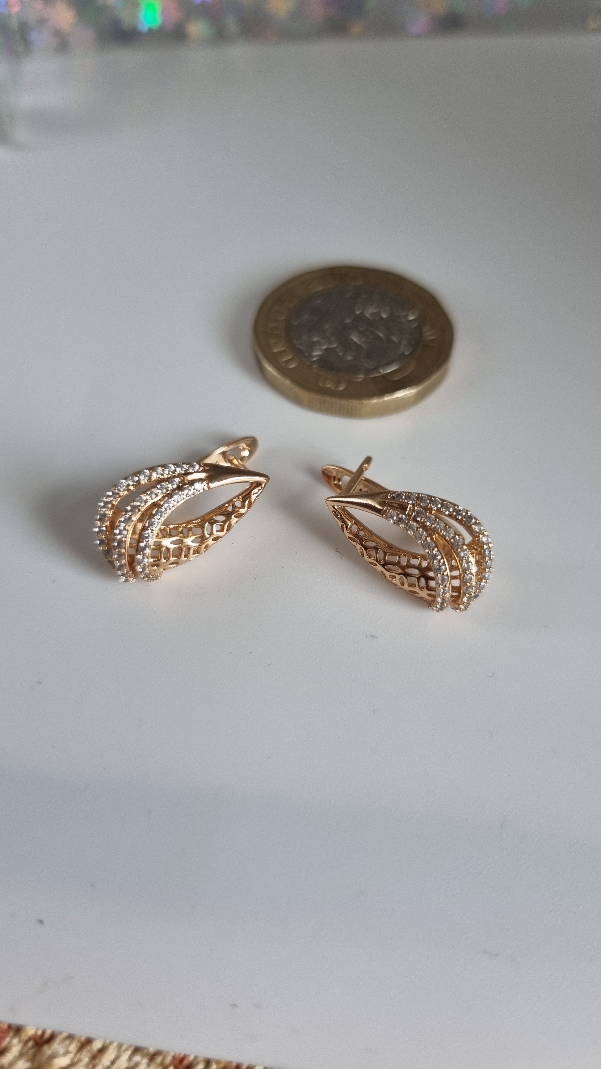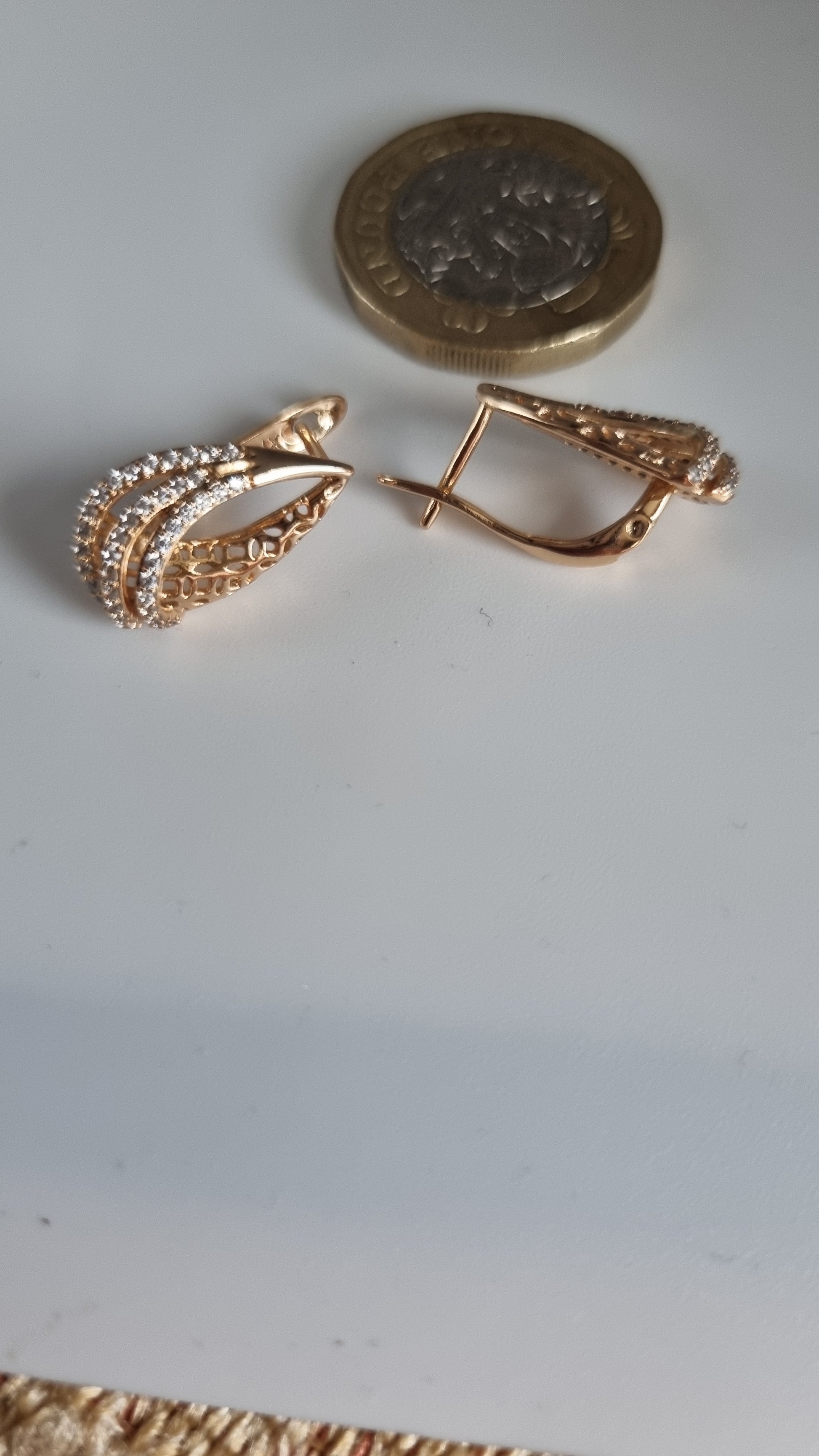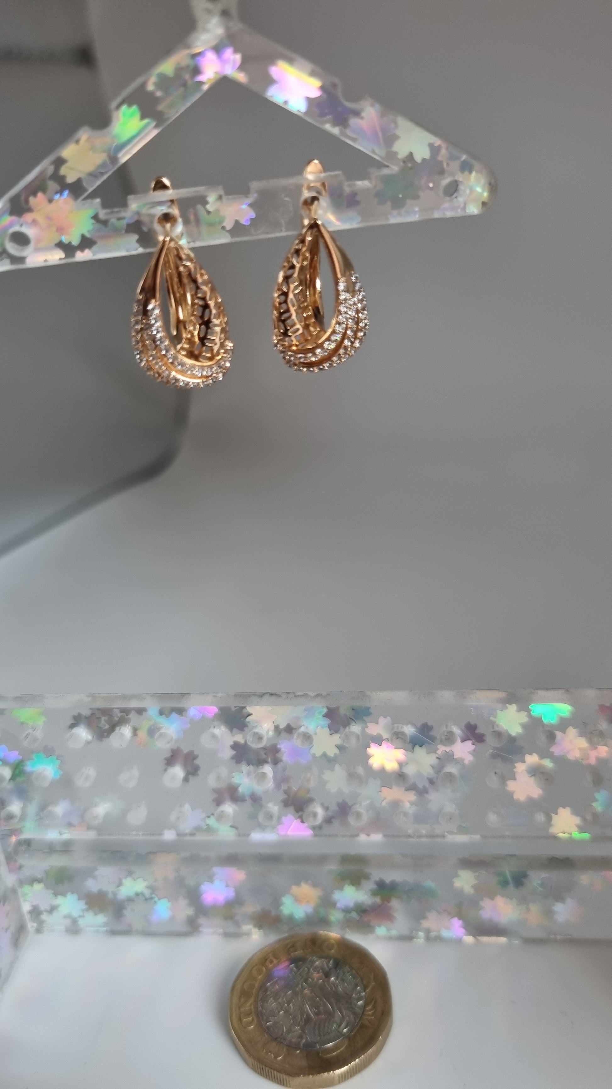 English lock earrings with zircon stone free nickel hypoallergenic waterproof copper metal plated gold