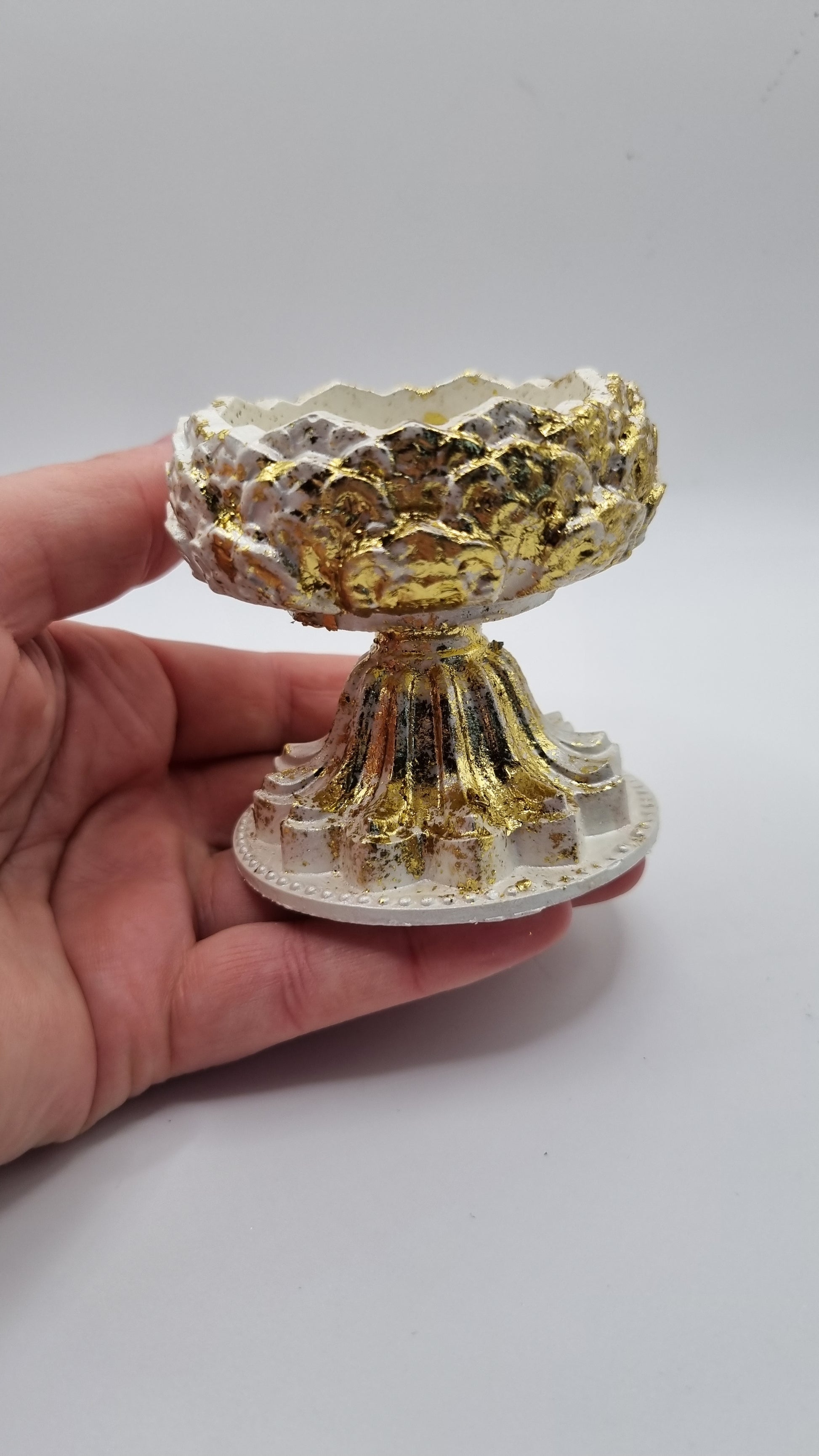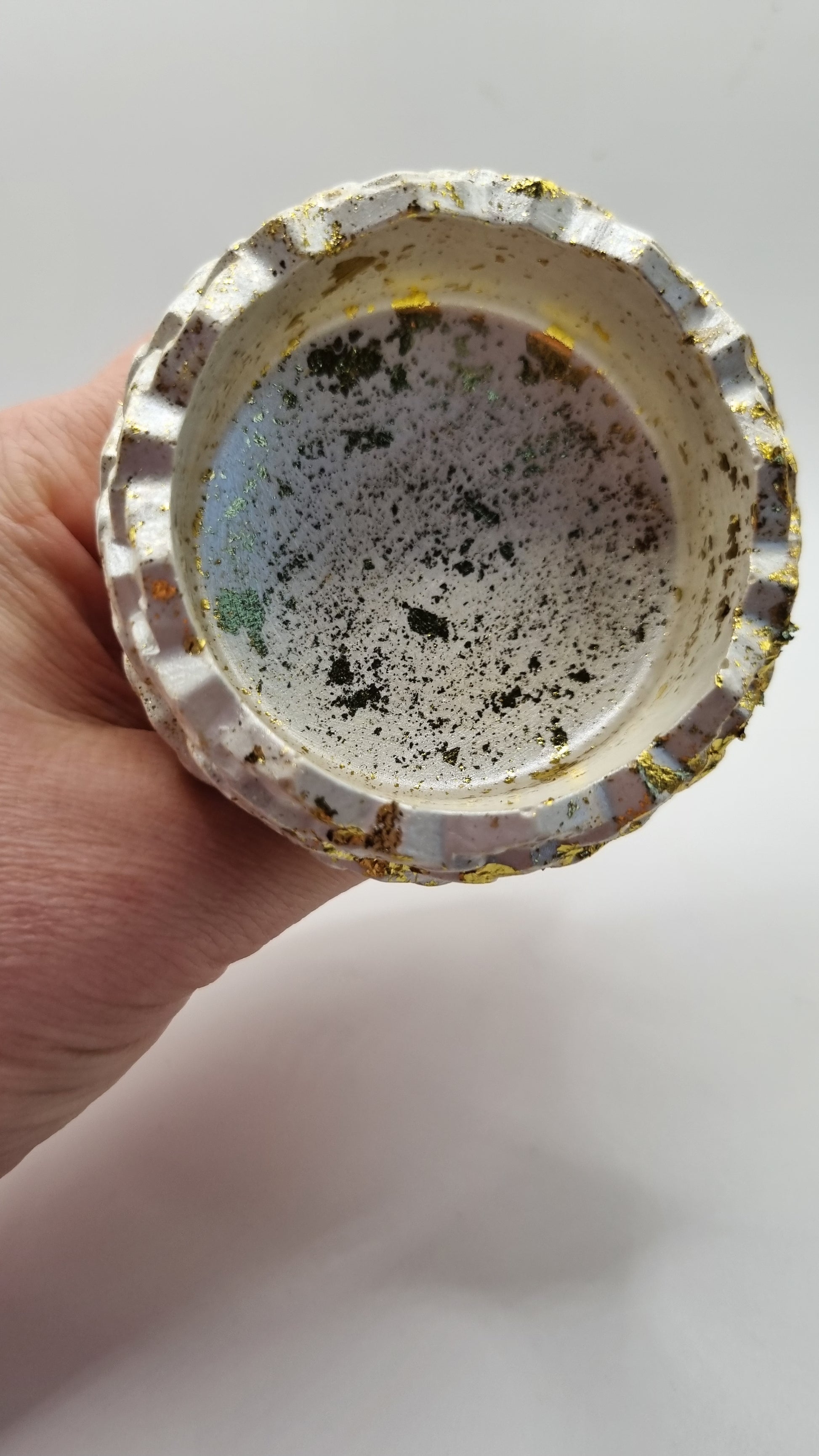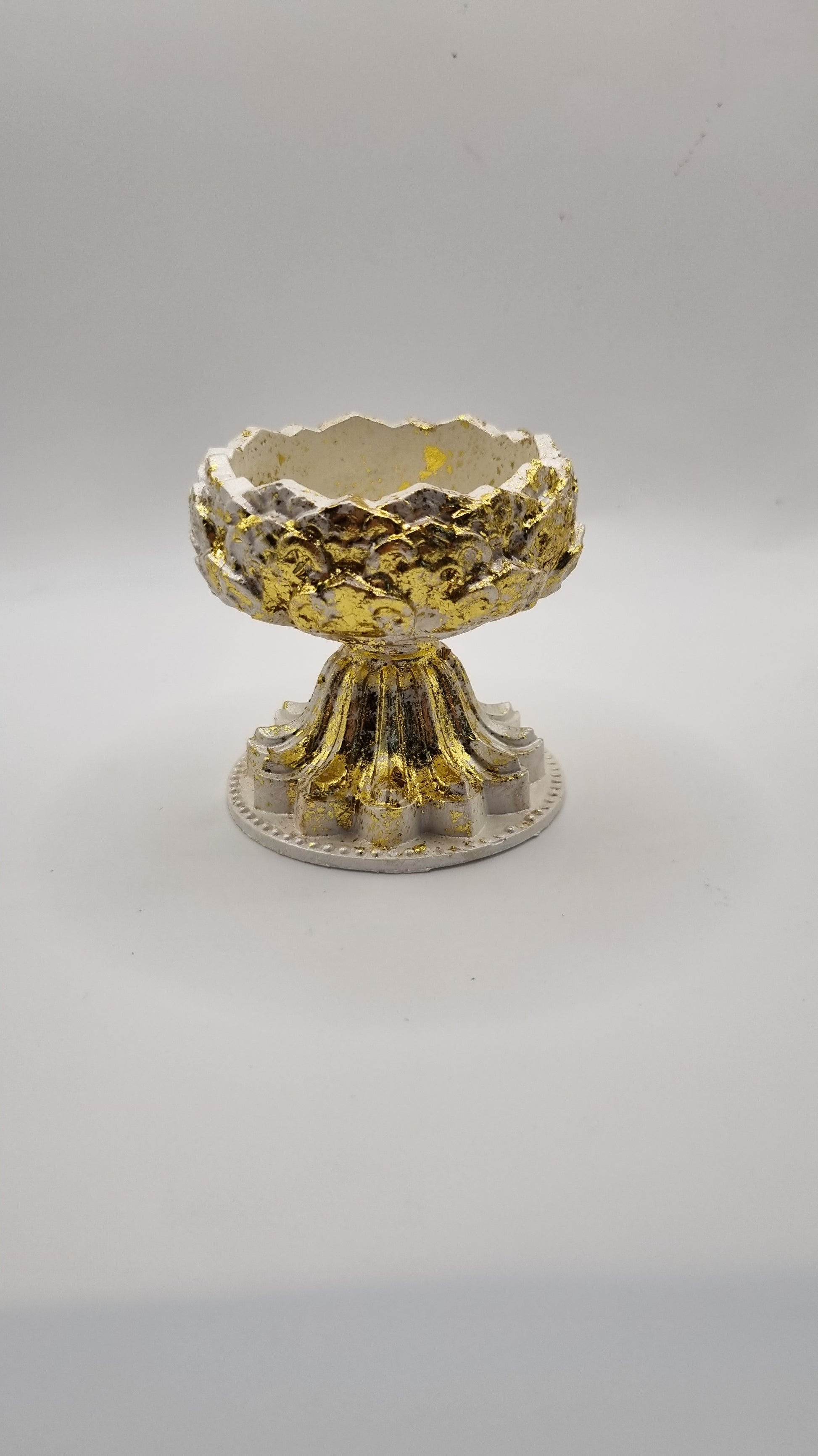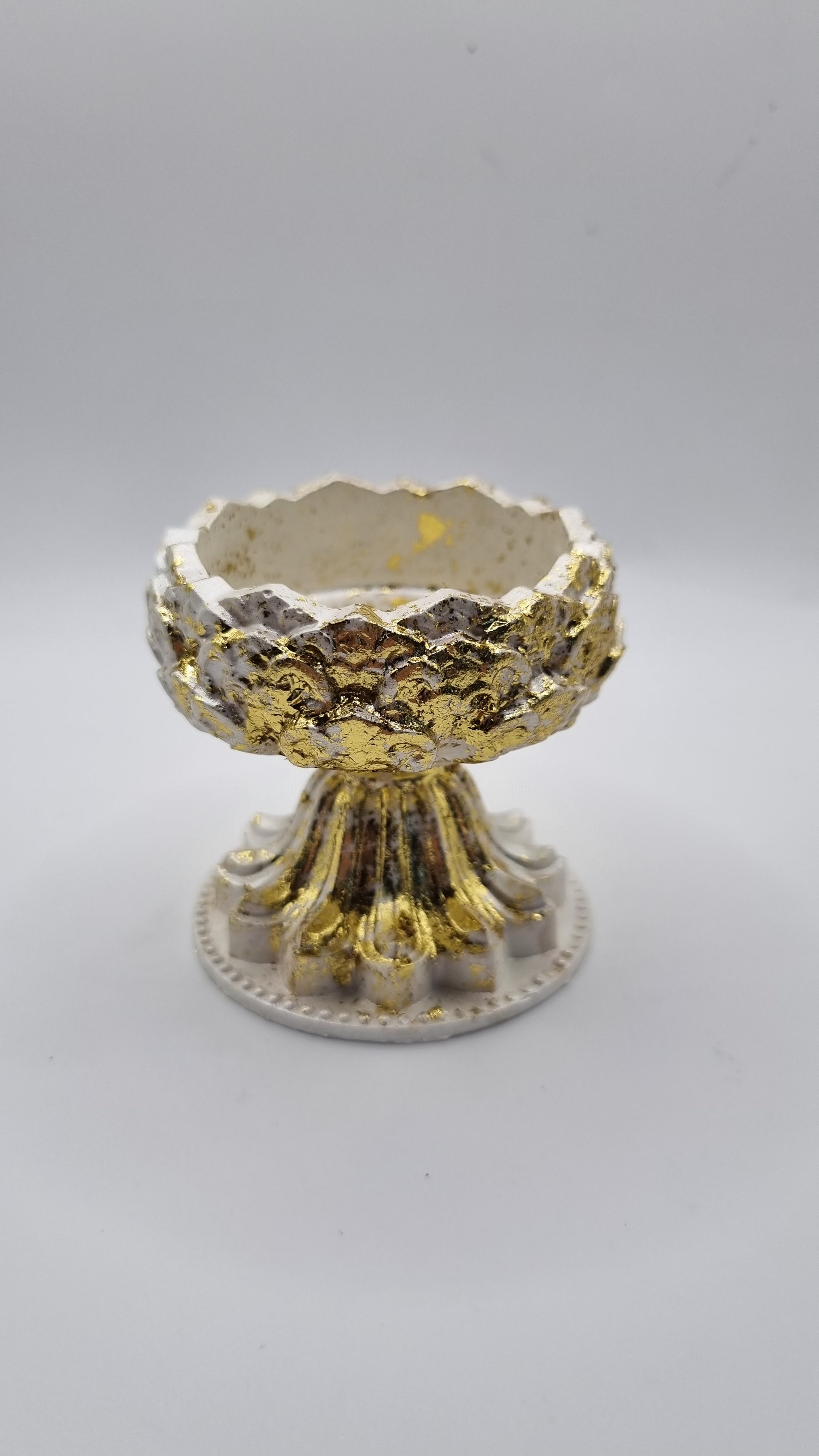 Add a touch of elegance to your home with our beautiful Gypsum jar decor. Its stunning white pearl metallics and gold color will enhance any room. Expertly crafted, this decor piece is perfect for adding a sophisticated touch to your living space.
