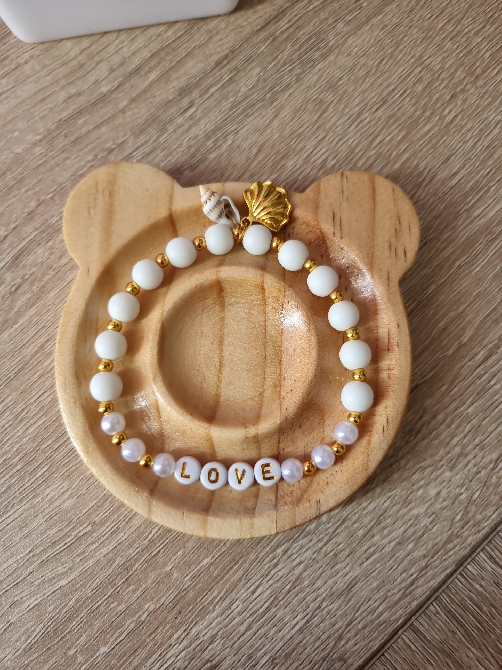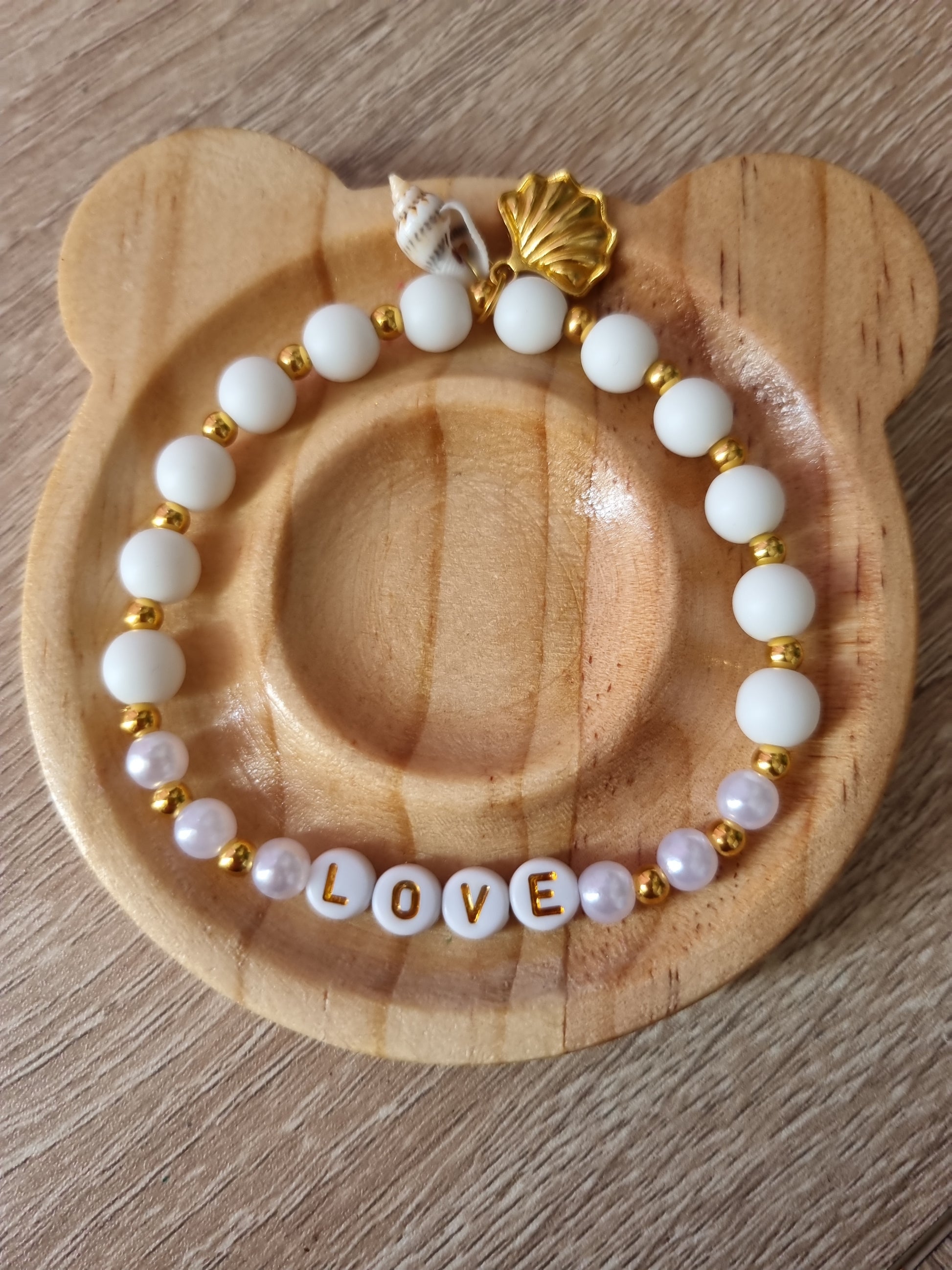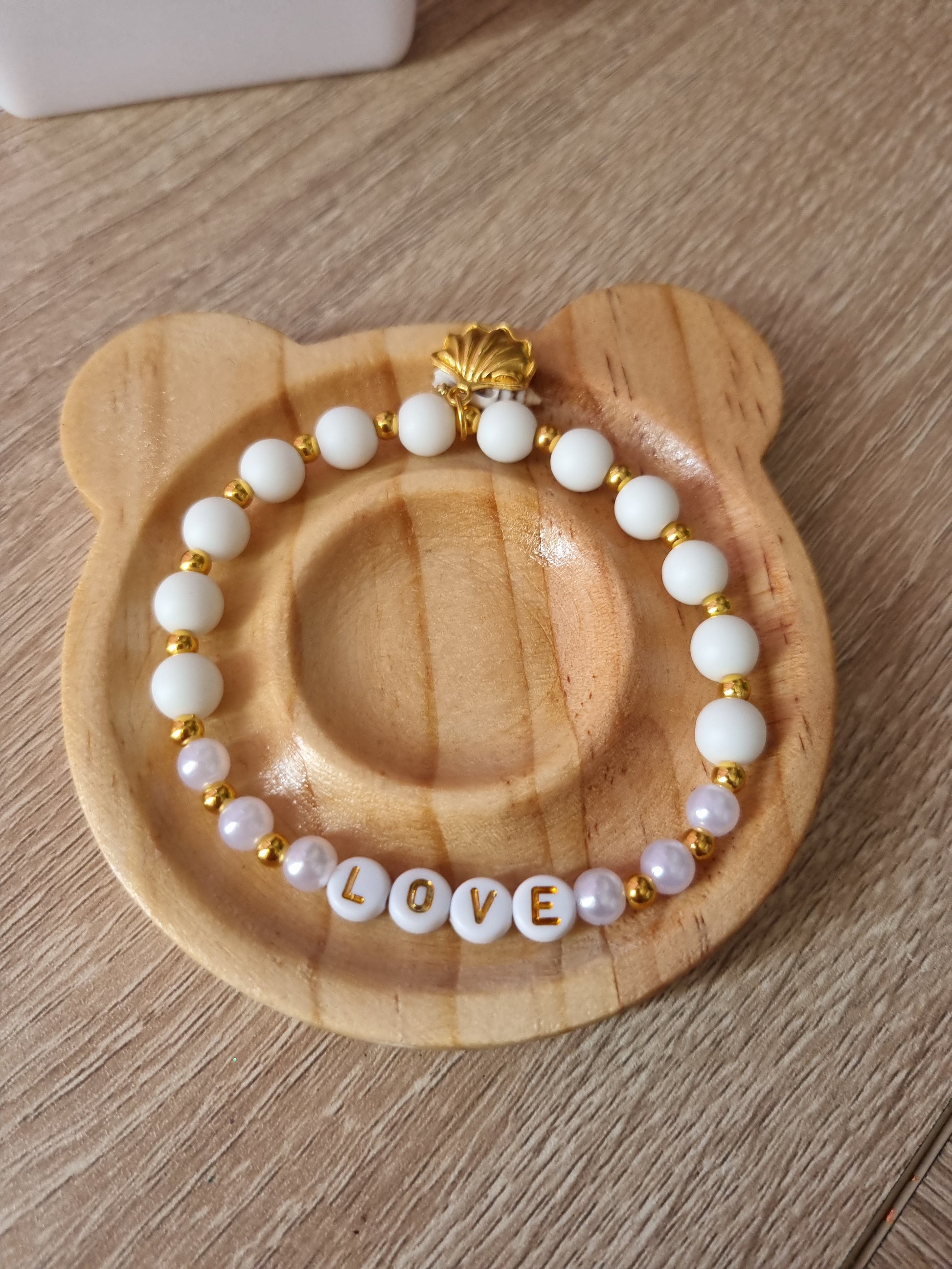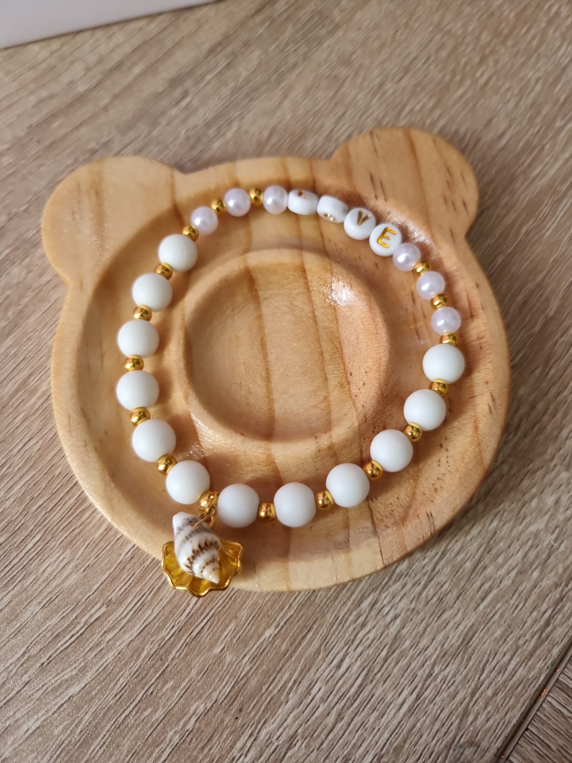 Handmade bracelets from gemstones agate and acrylic letters beads stretchy