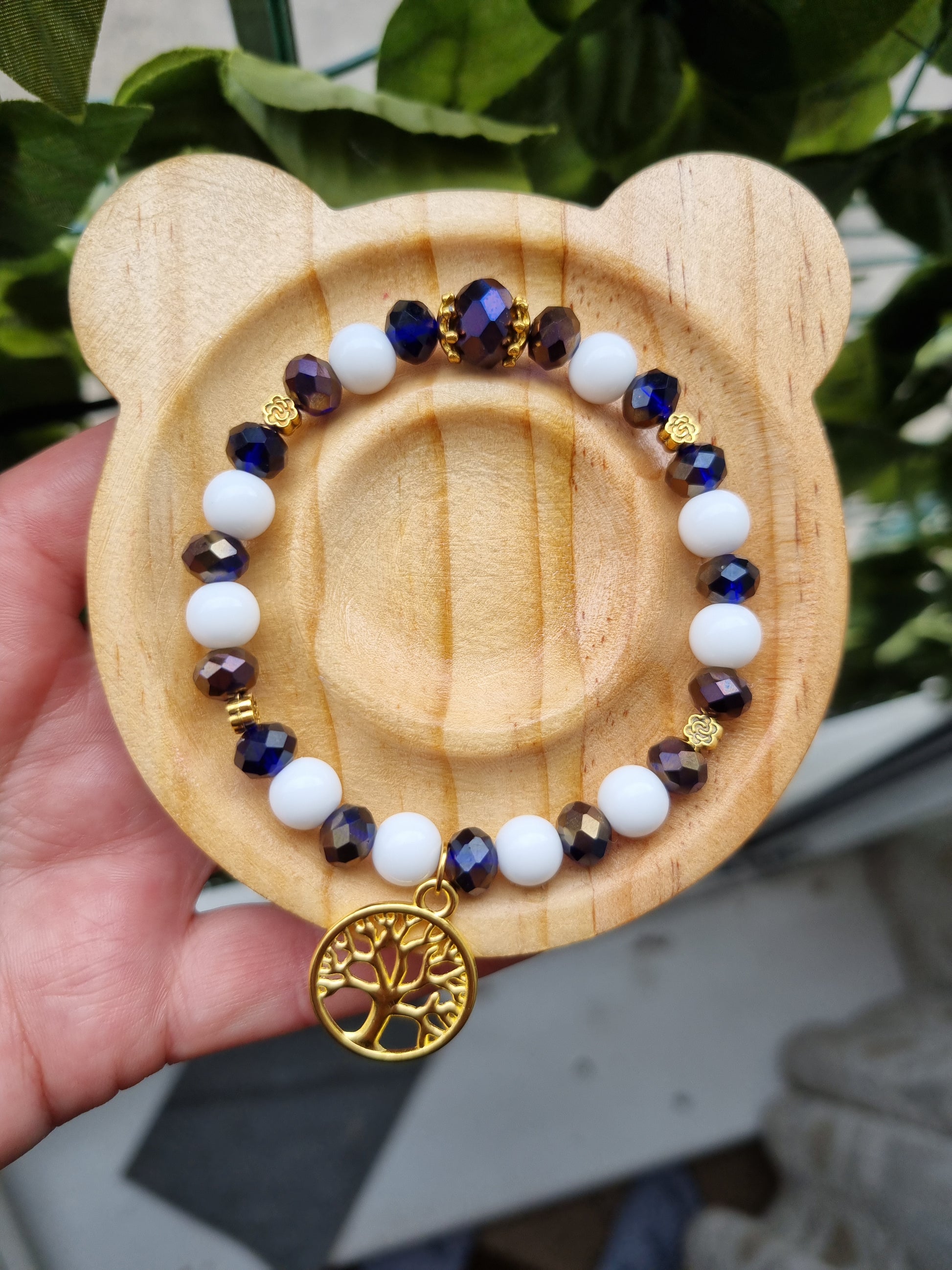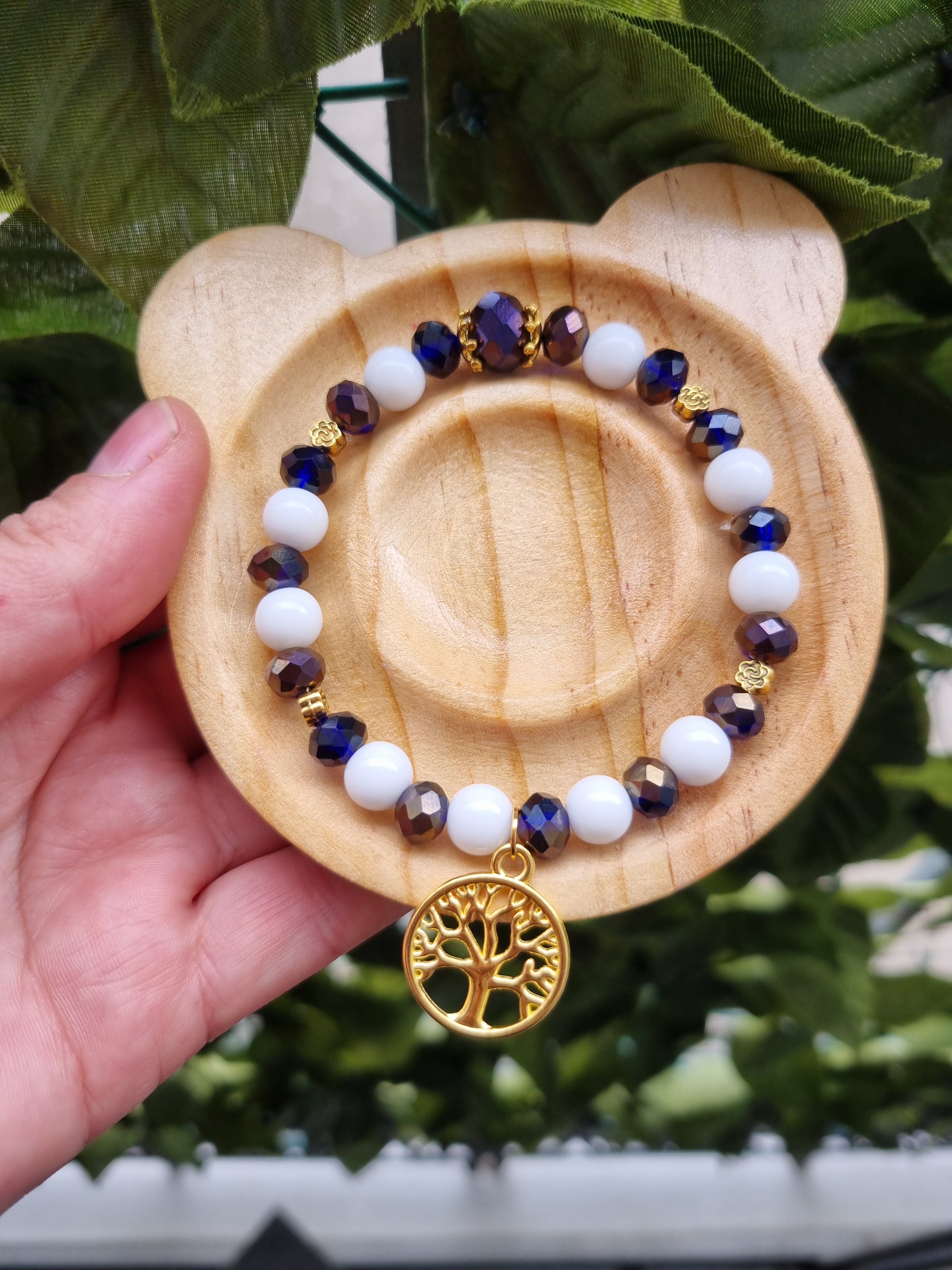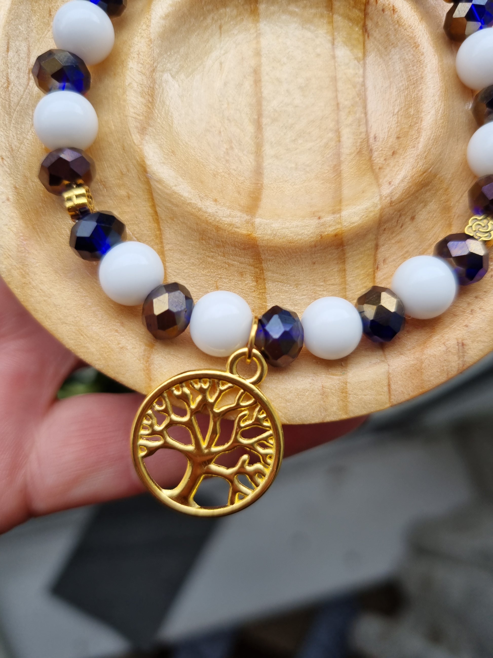 Handmade bracelets from gemstones agate beads and glass beads with life tree pendant