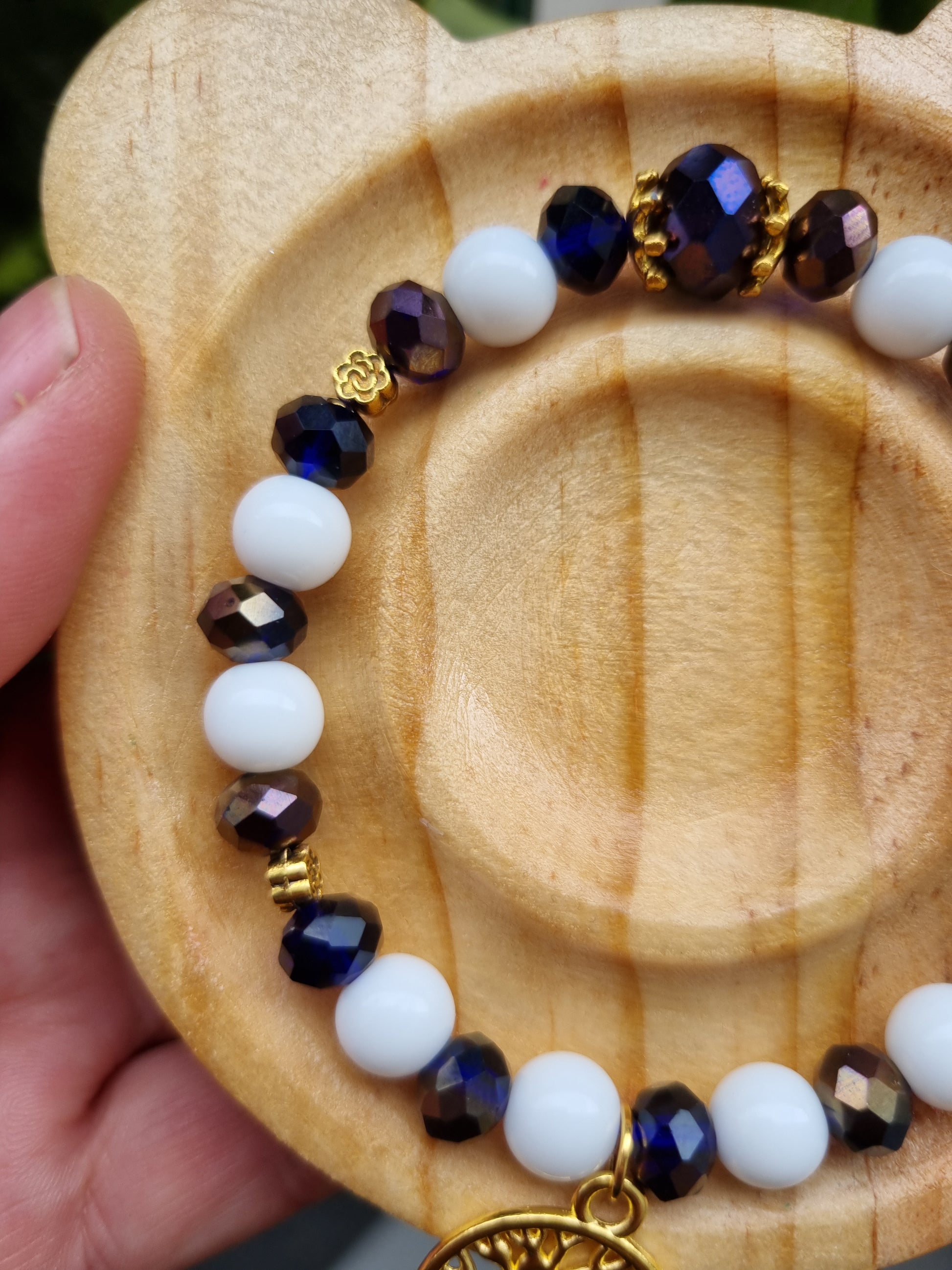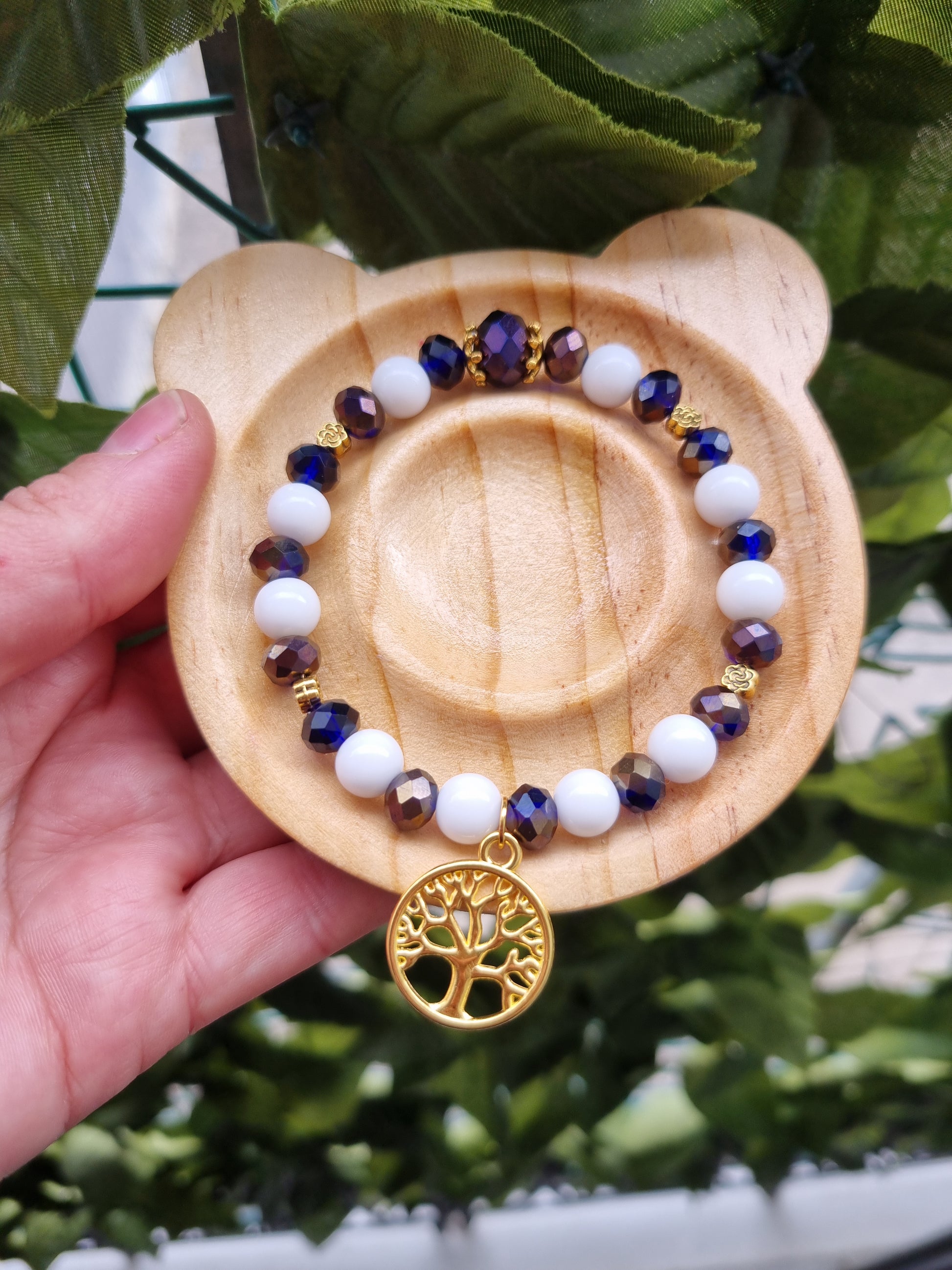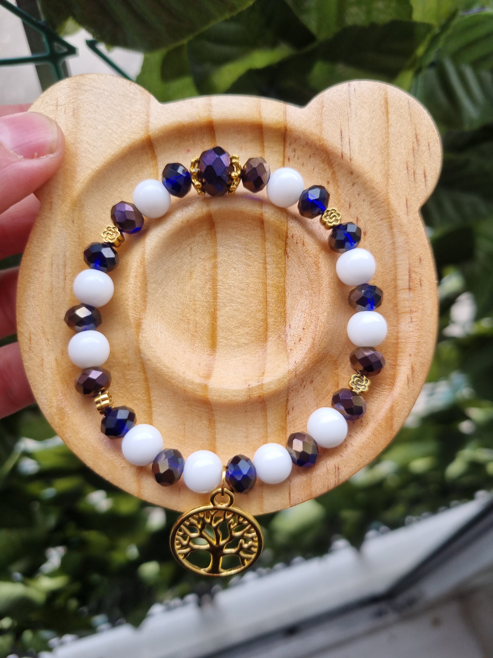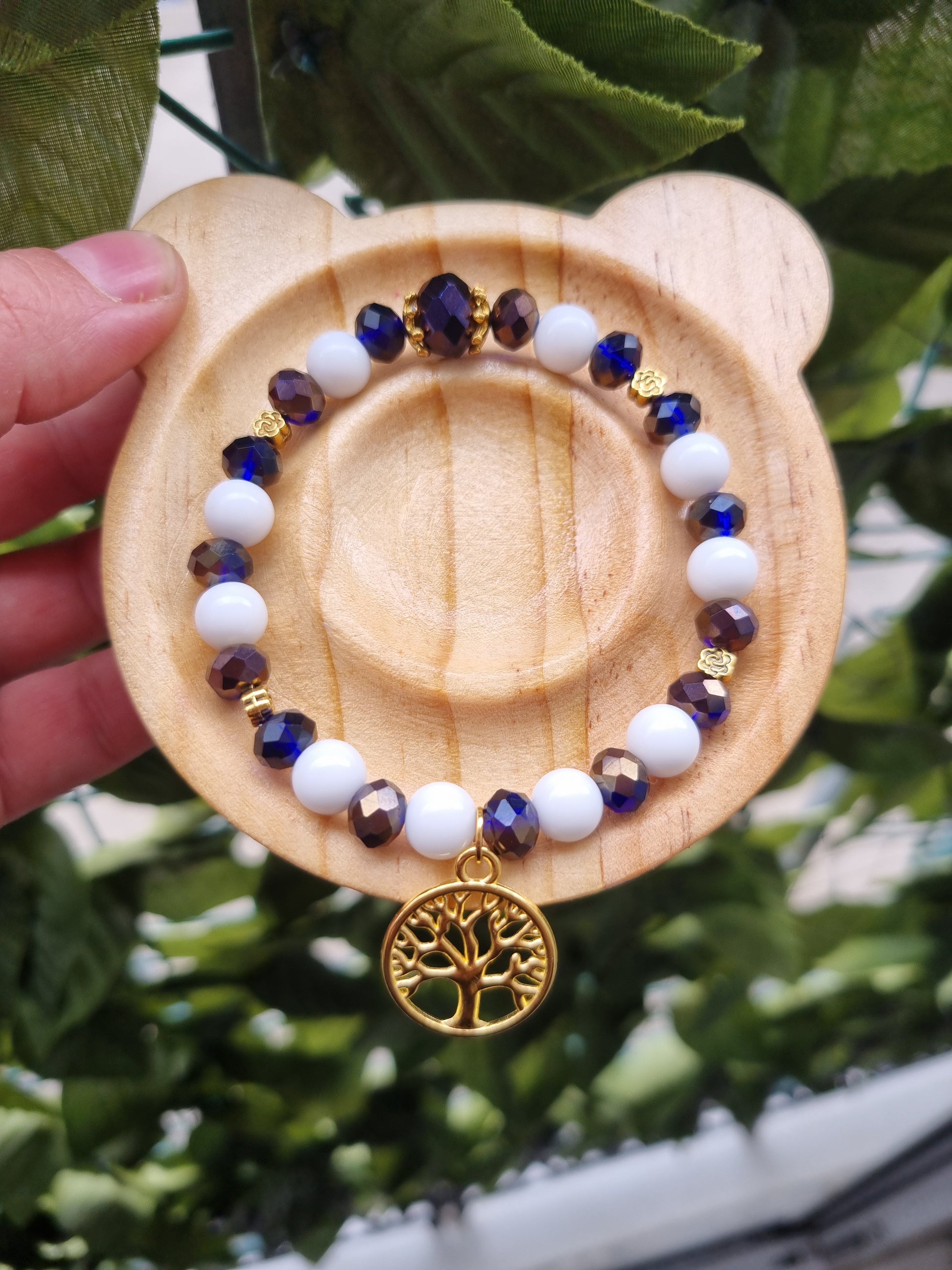 Handmade bracelets from gemstones agate beads and glass beads with life tree pendant