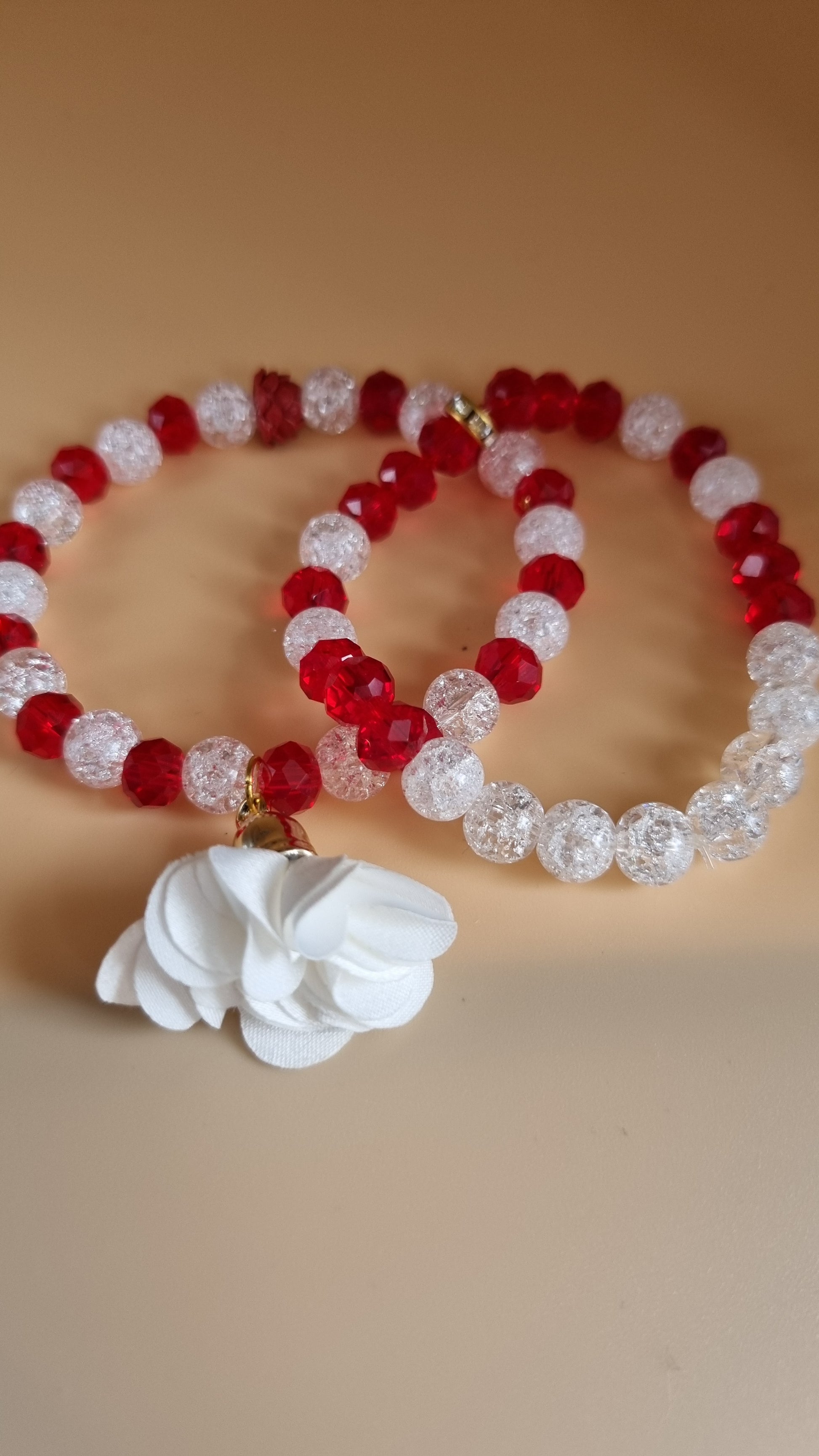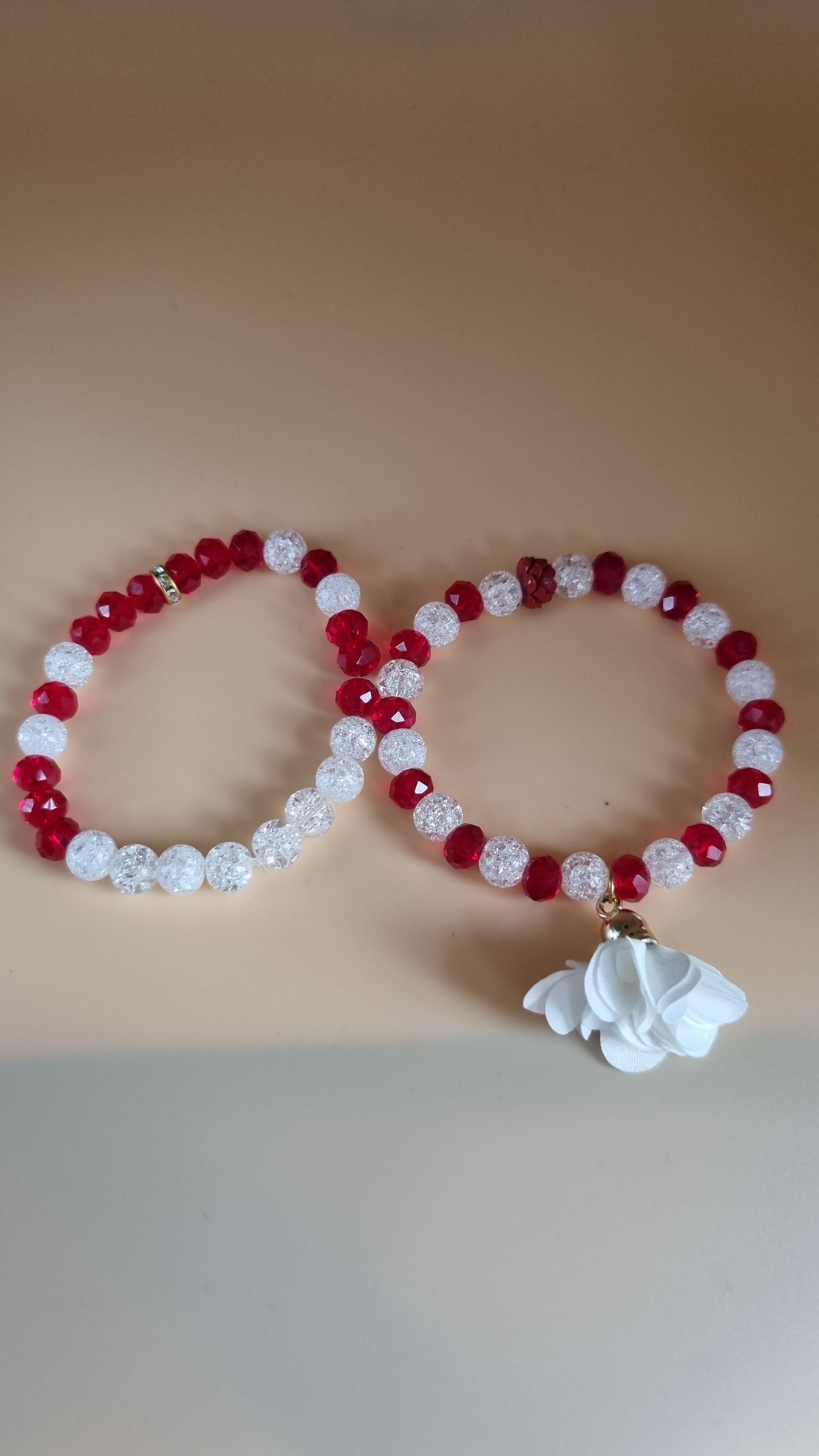 Handmade bracelets from glass beads red and druzy crystal stretchy bracelet