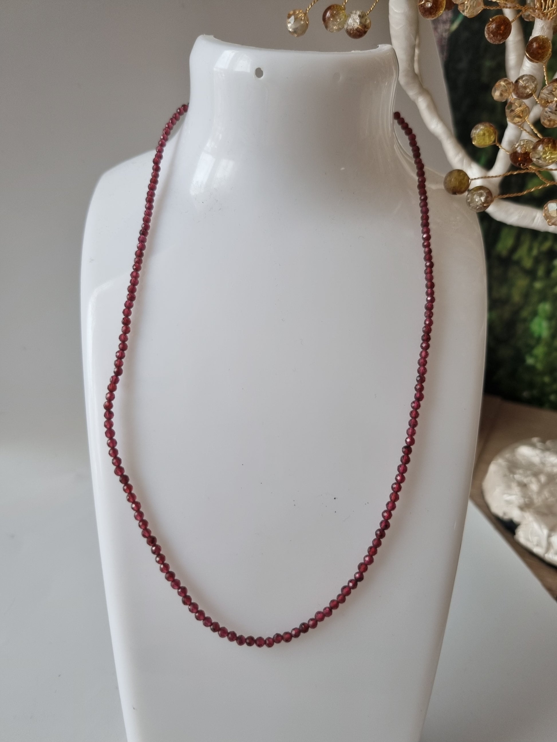 Handmade natural crystal Rhodonite granet faceted beads beautiful choker 2-3mm beads
