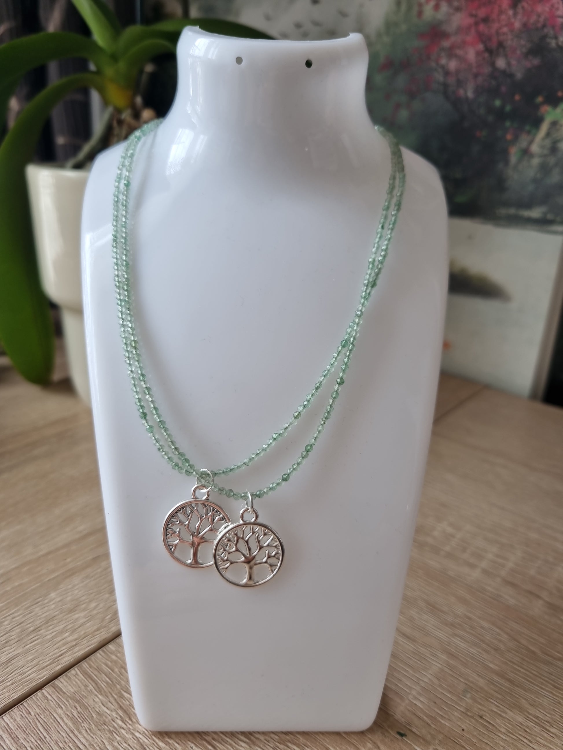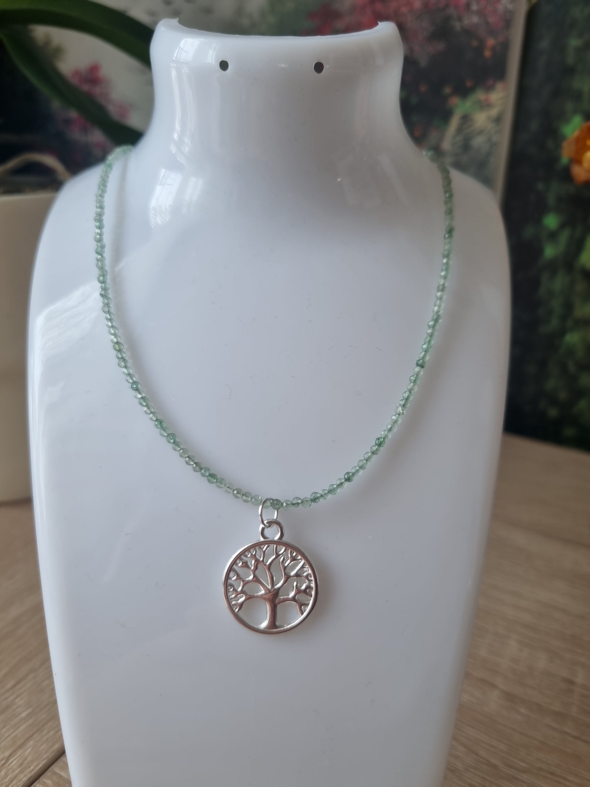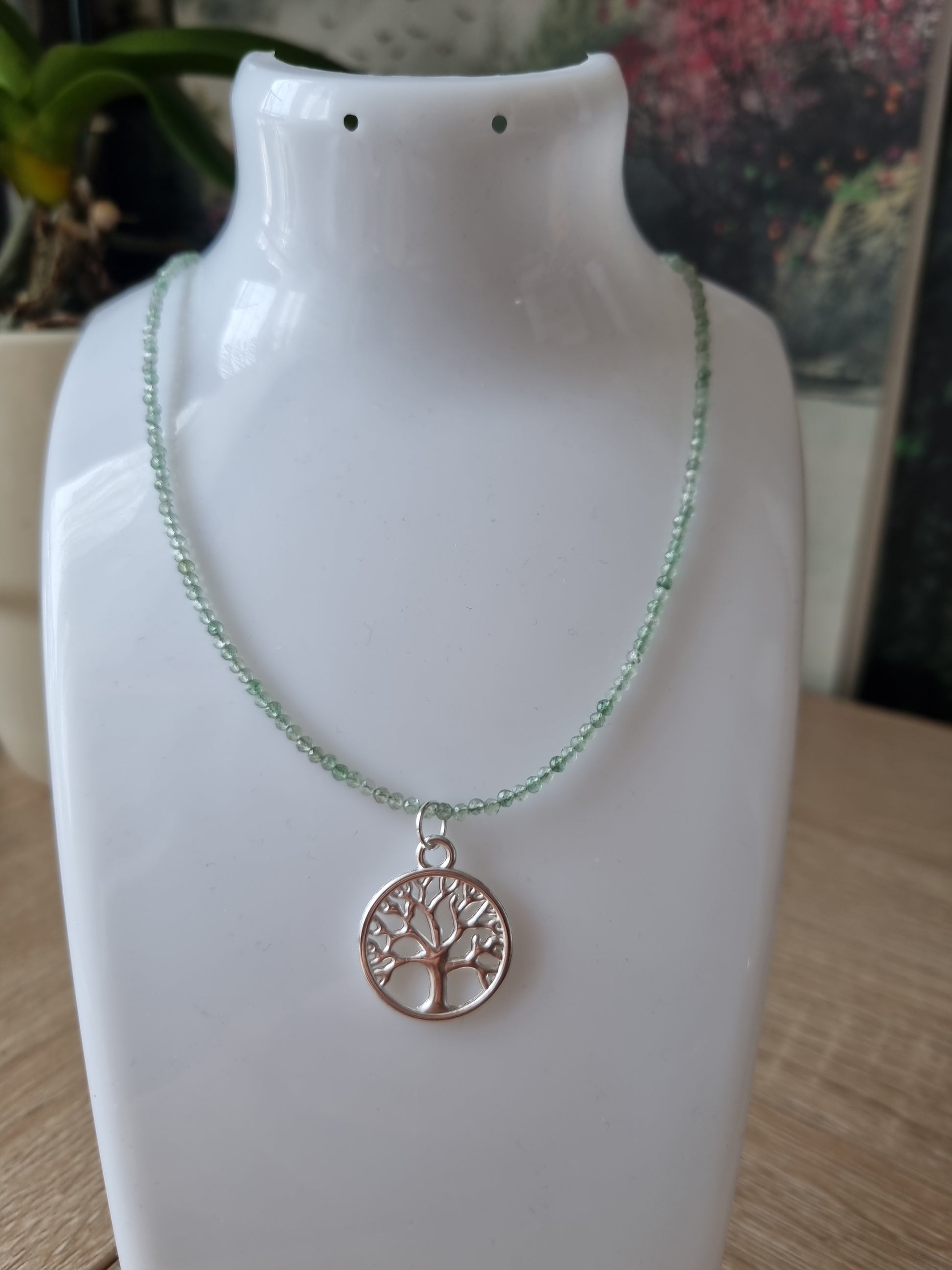 Handmade natural crystal aventurine 2-3mm faceted beautiful necklace with life tree