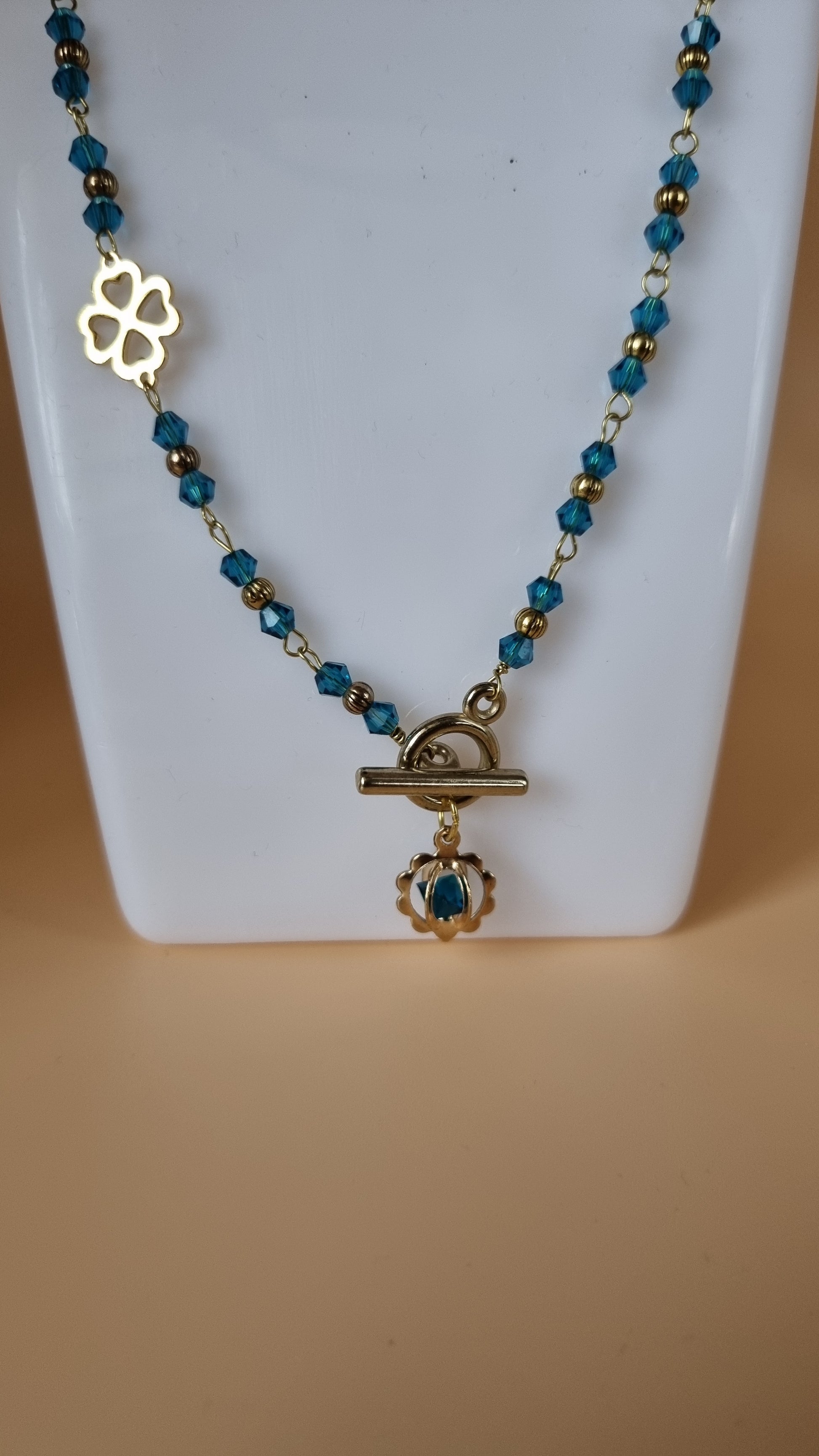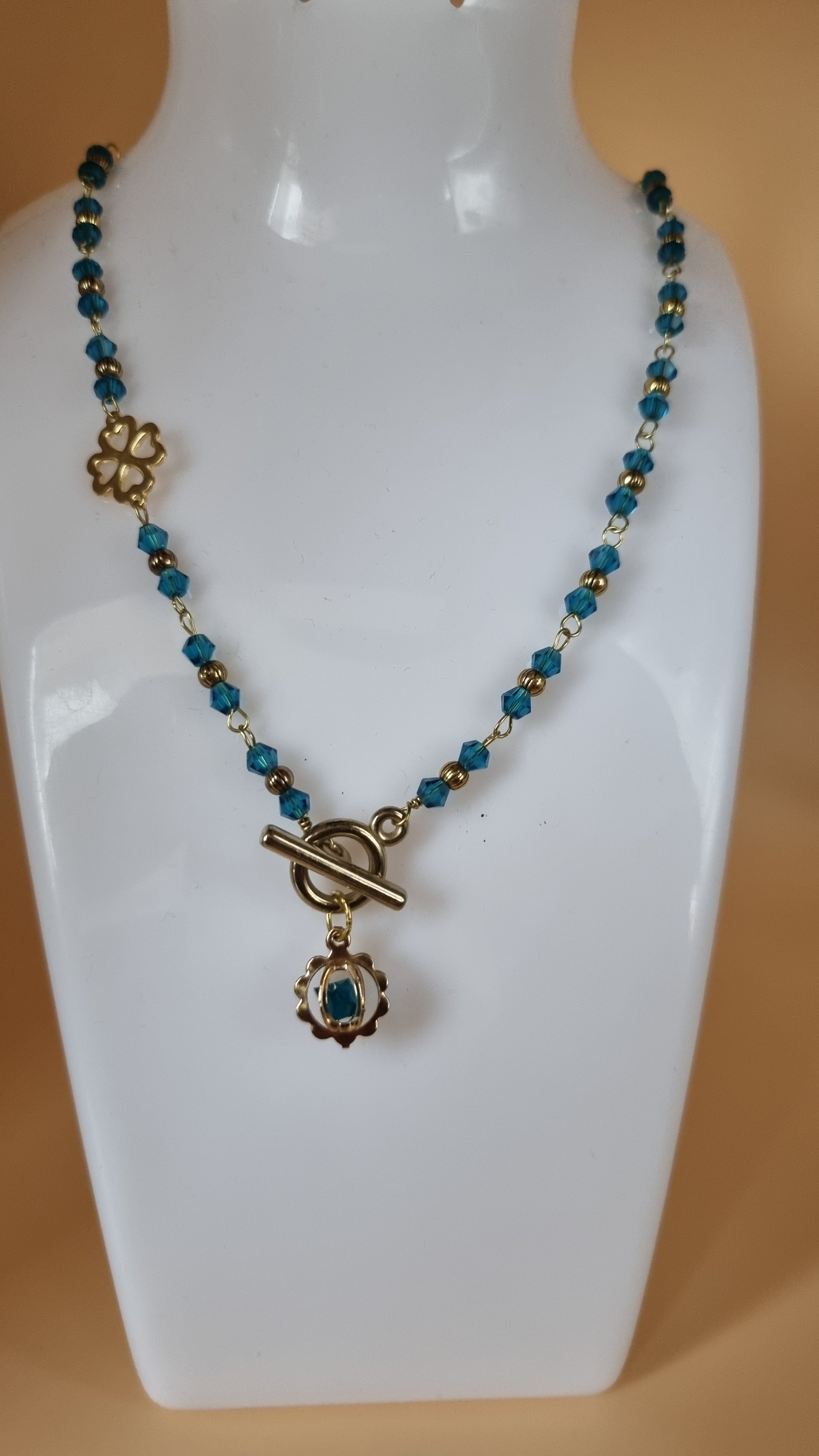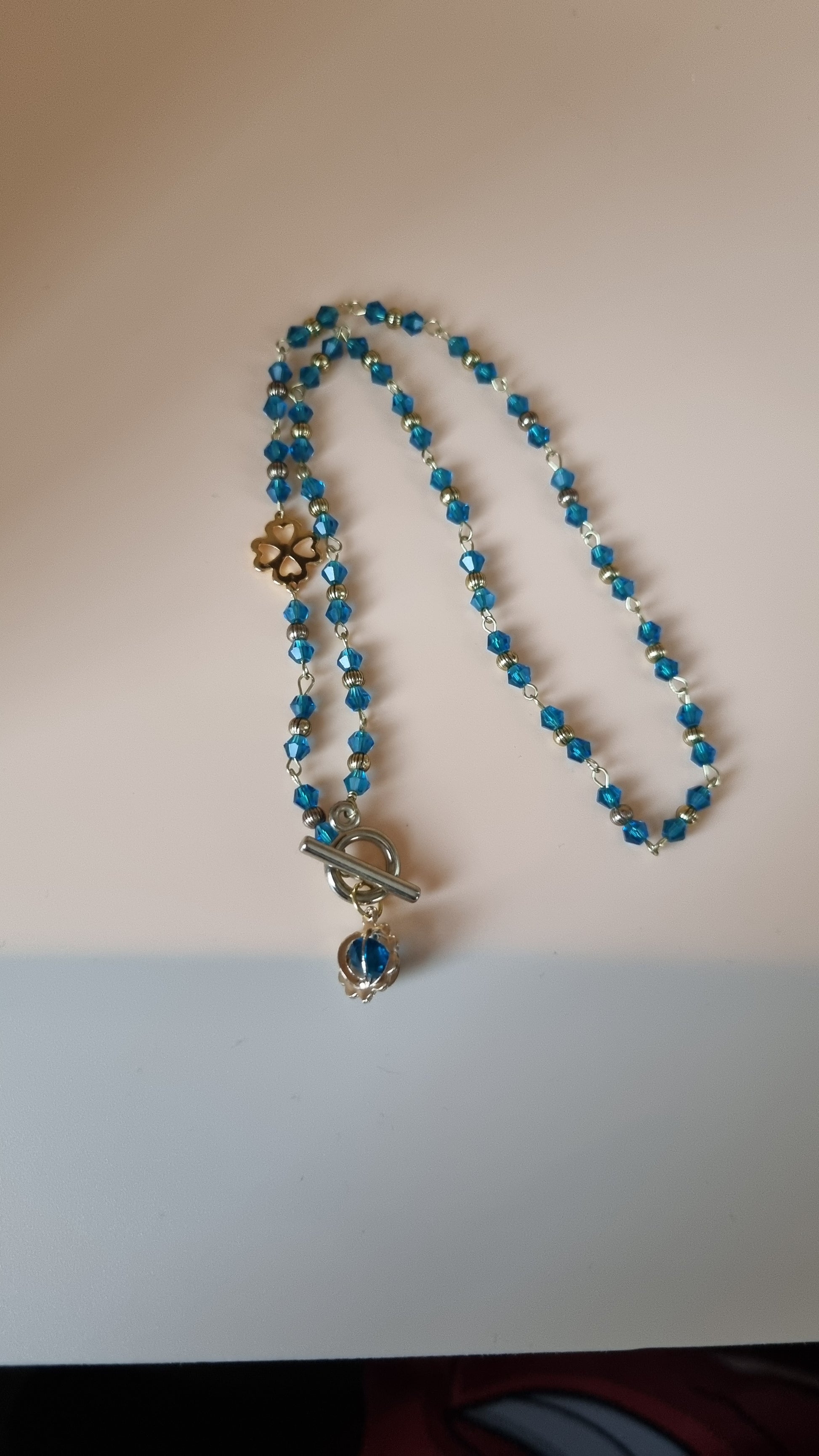 Handmade necklace with aqua color glass crystal beads very nice necklace