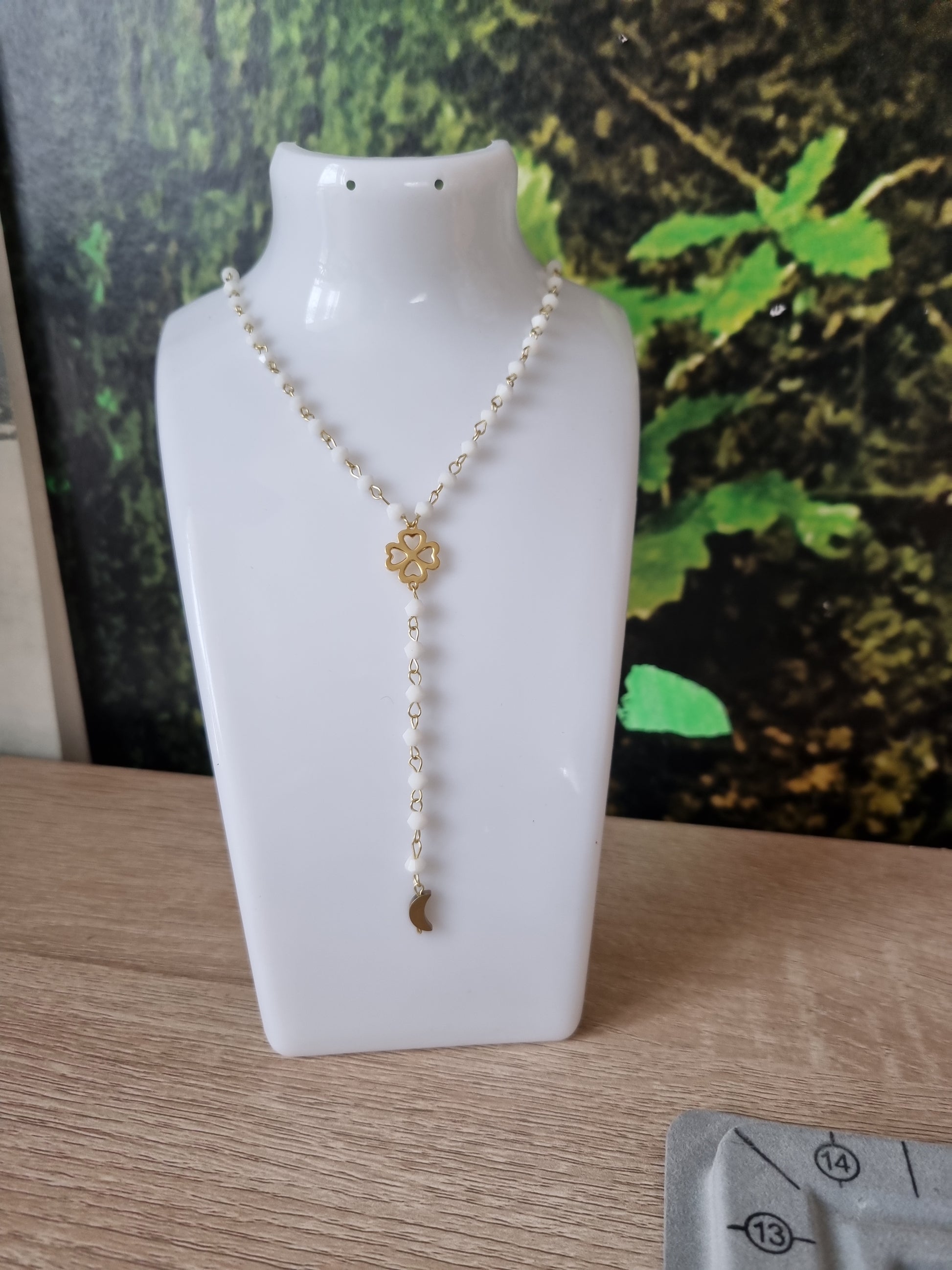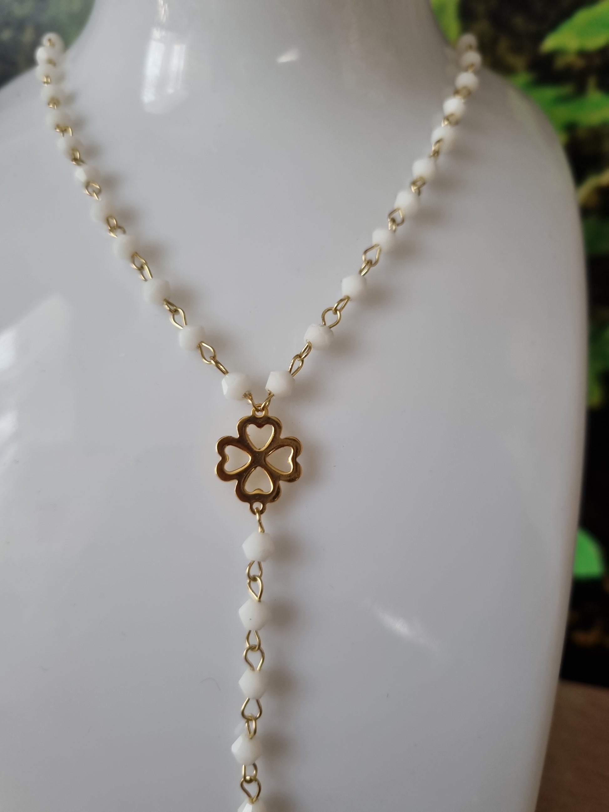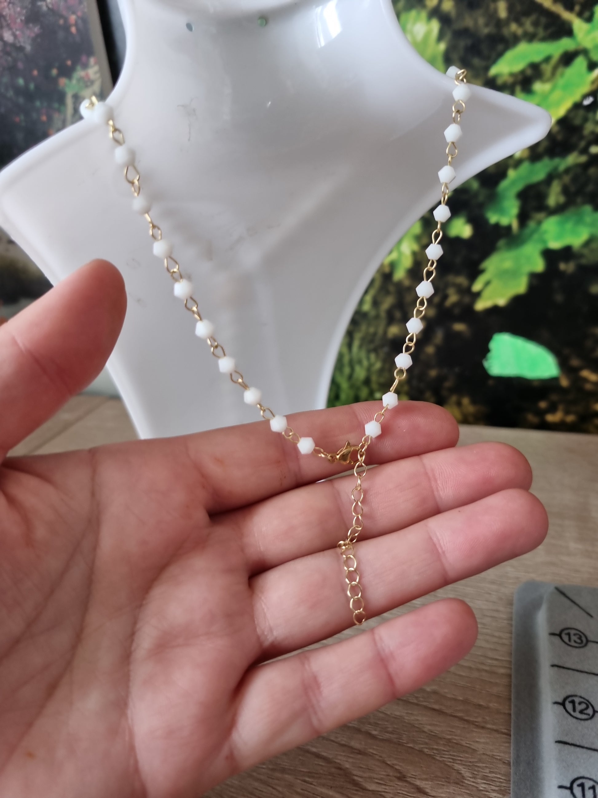 Handmade necklace with glass crystal beads white beautiful necklace elegant