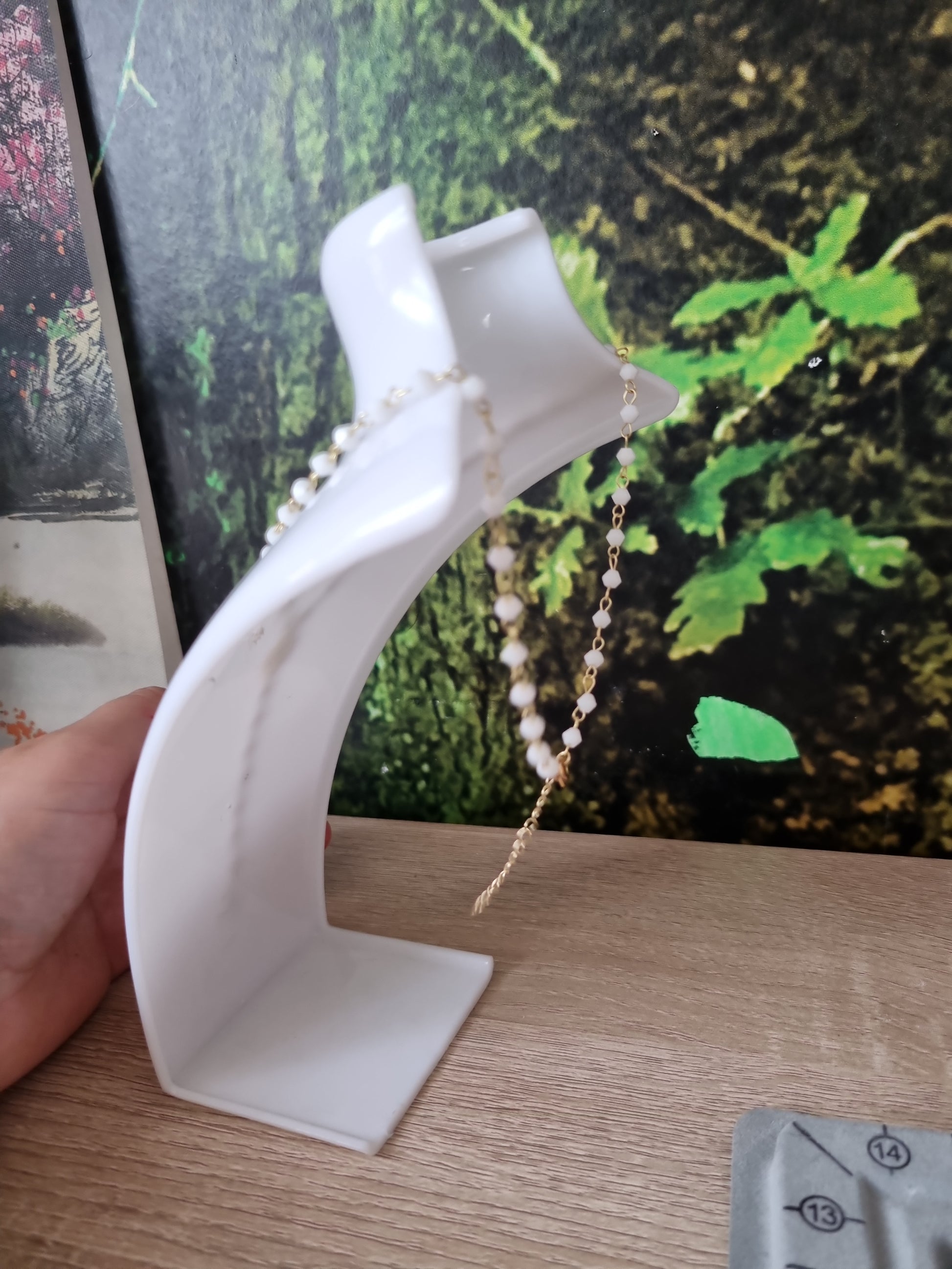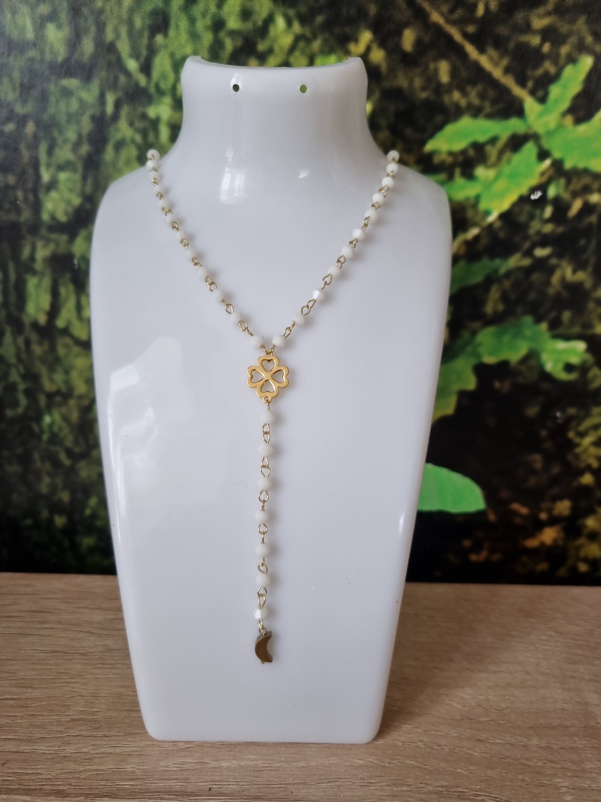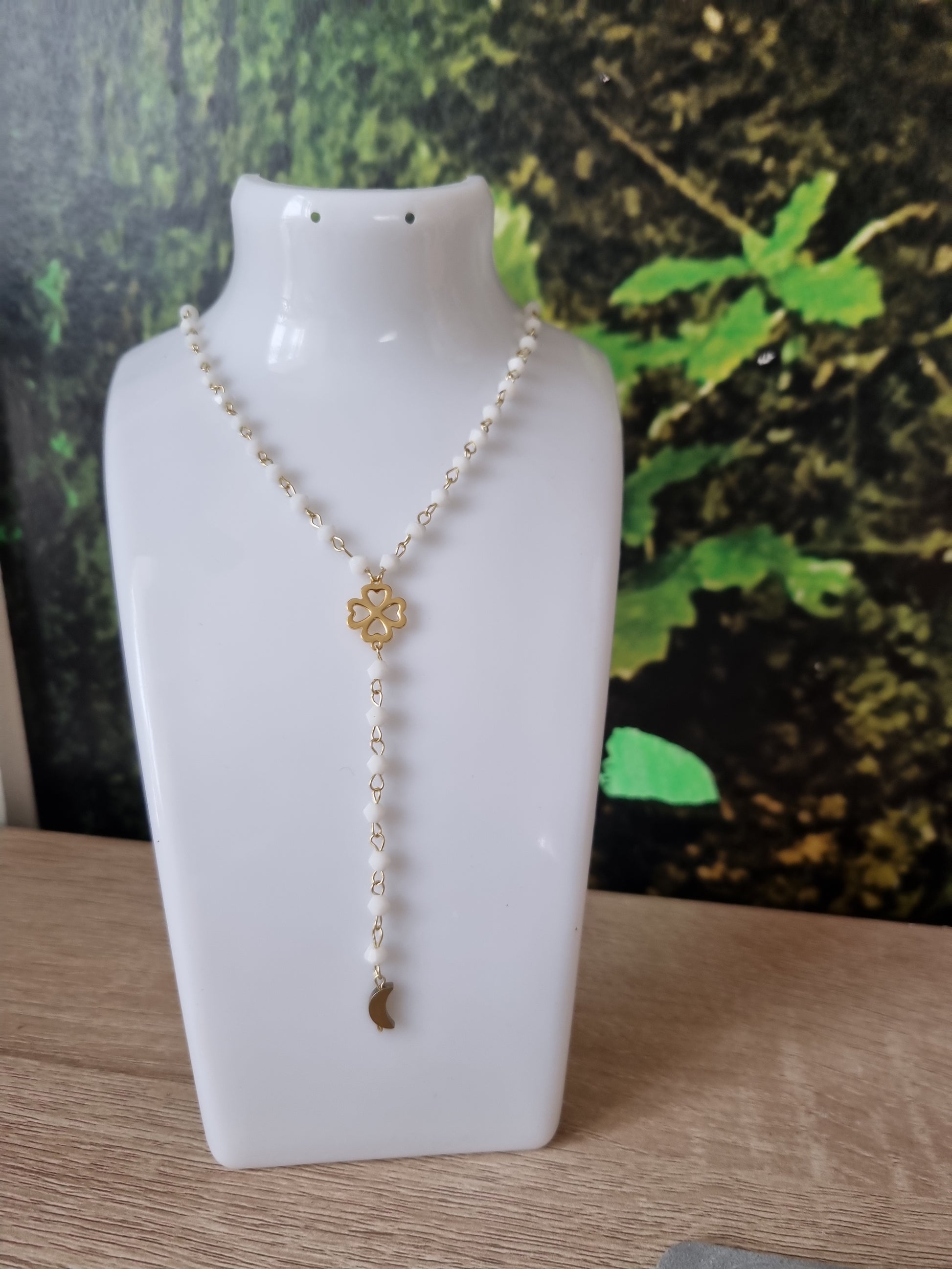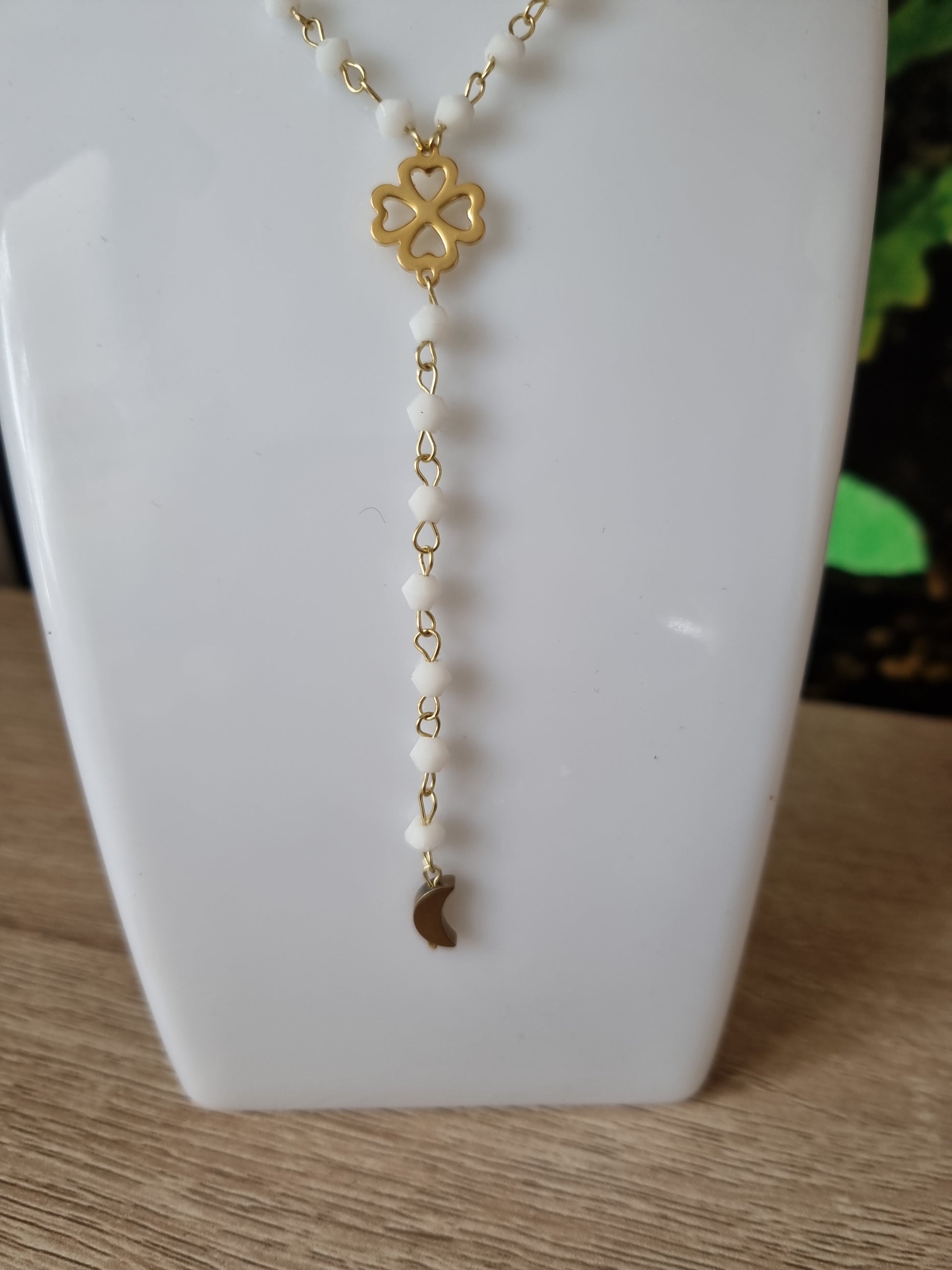 Handmade necklace with glass crystal beads white beautiful necklace elegant