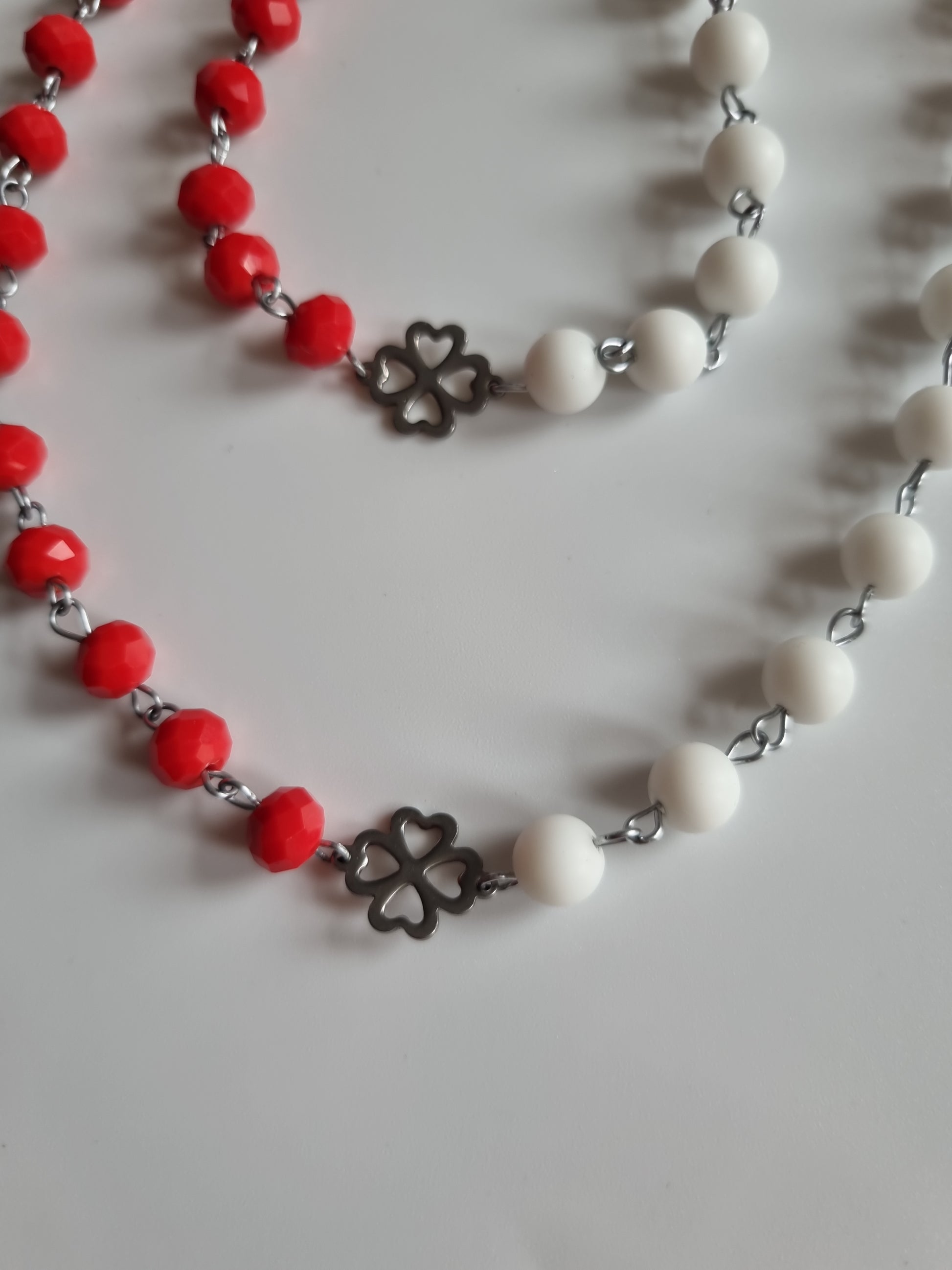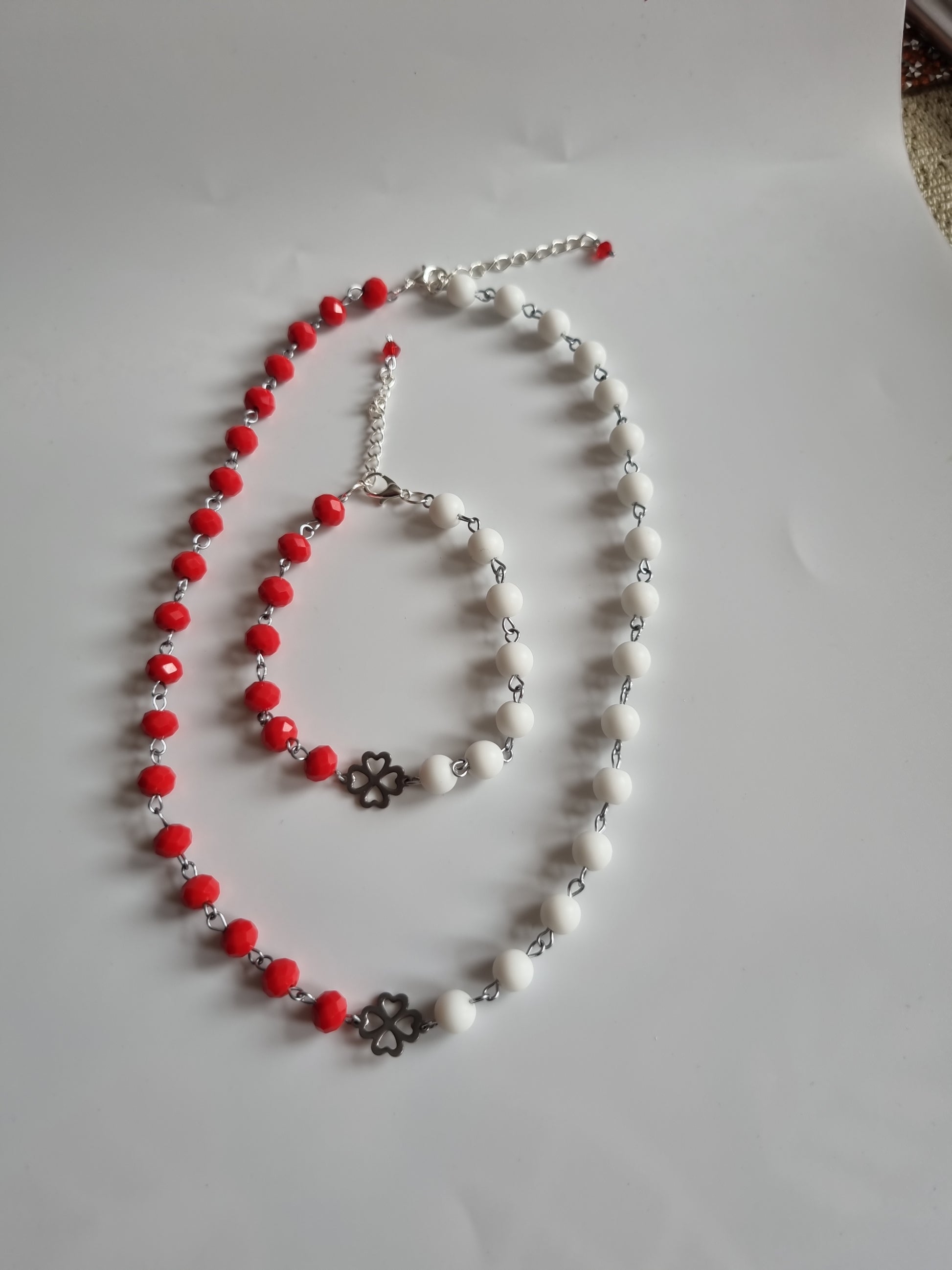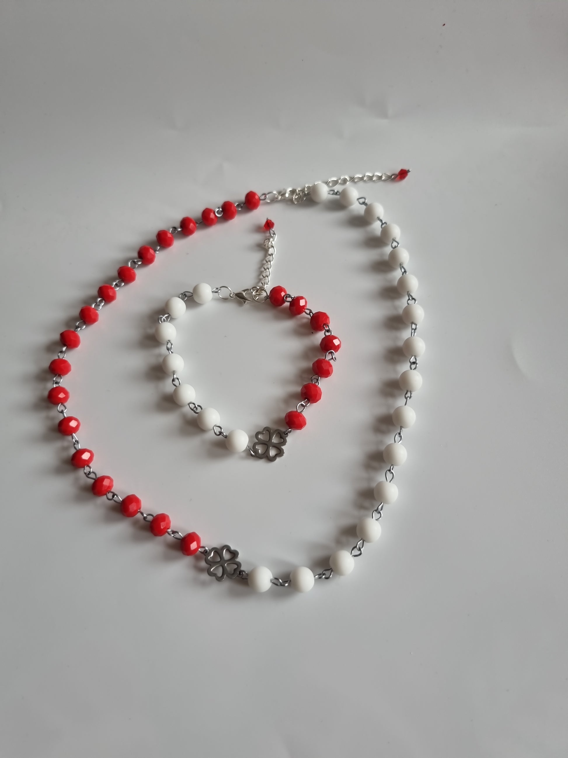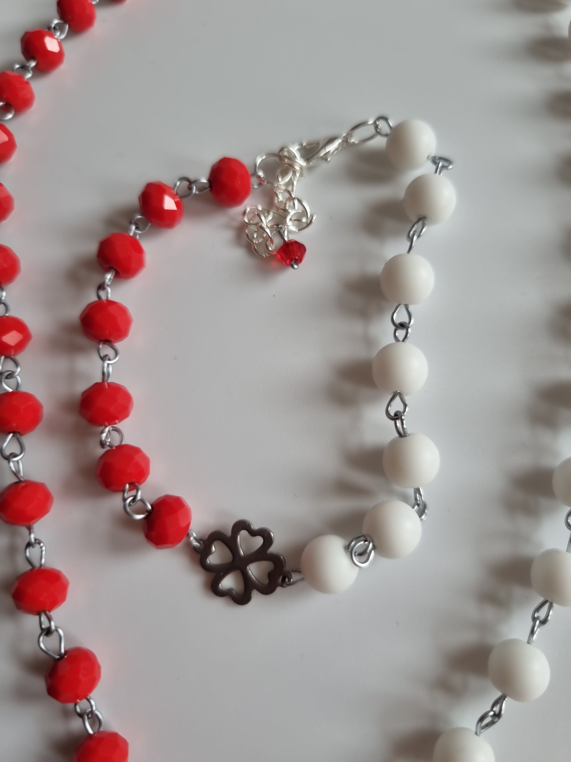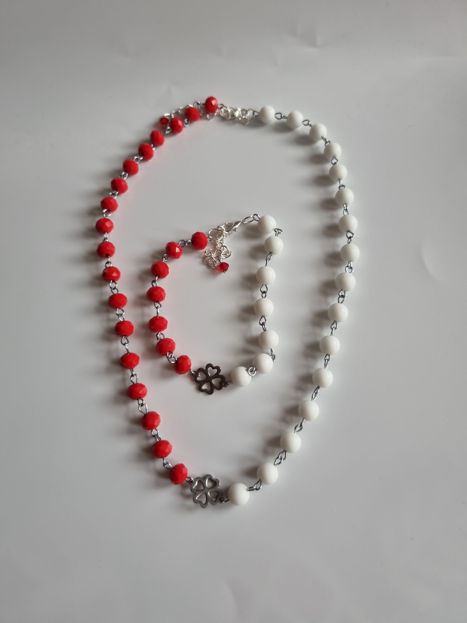 Handmade set natural Stone agate beads and glass beads faceted red silver color