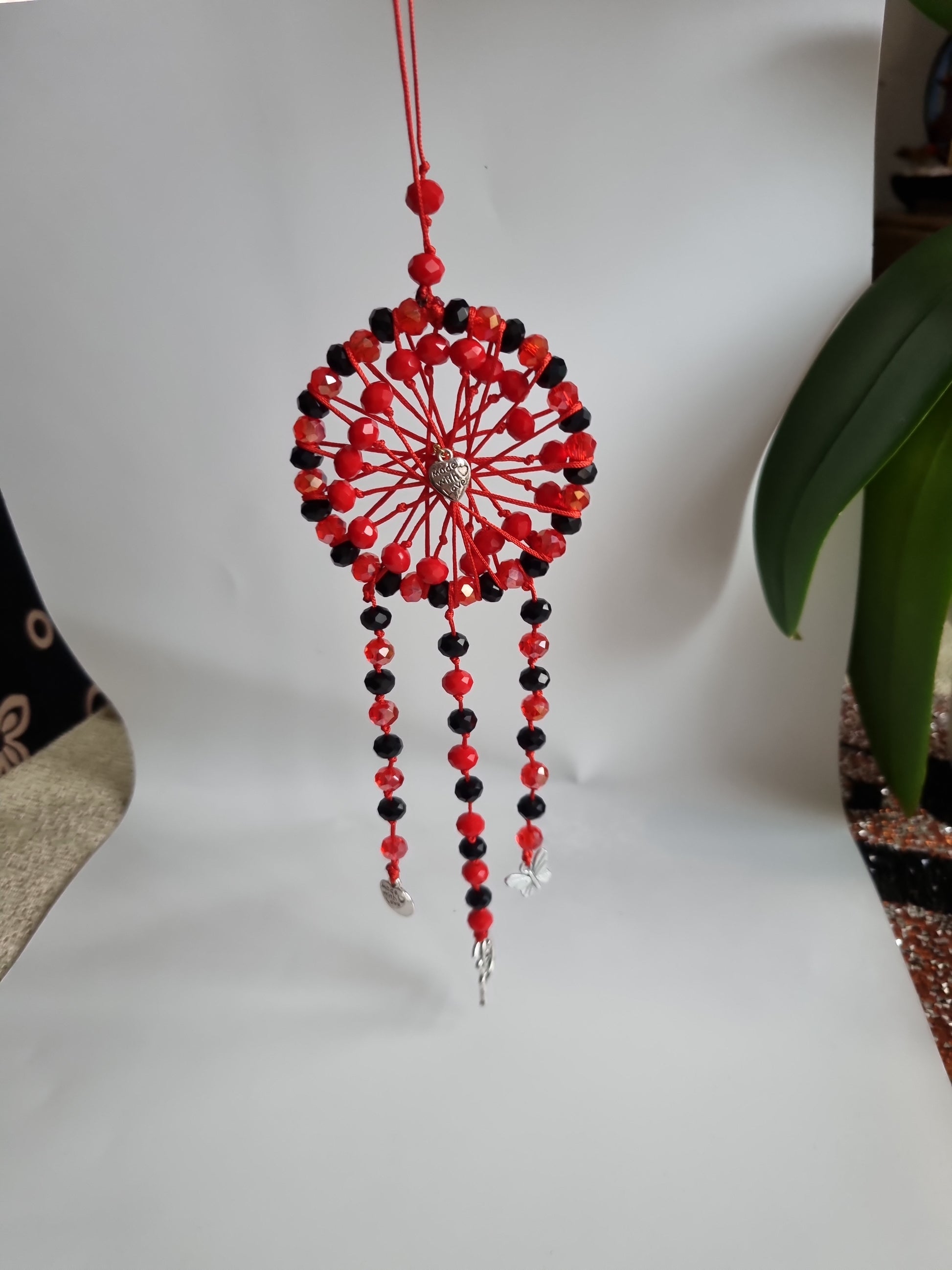 Handmade sun catcher, dreams catcher with glass crystal beads