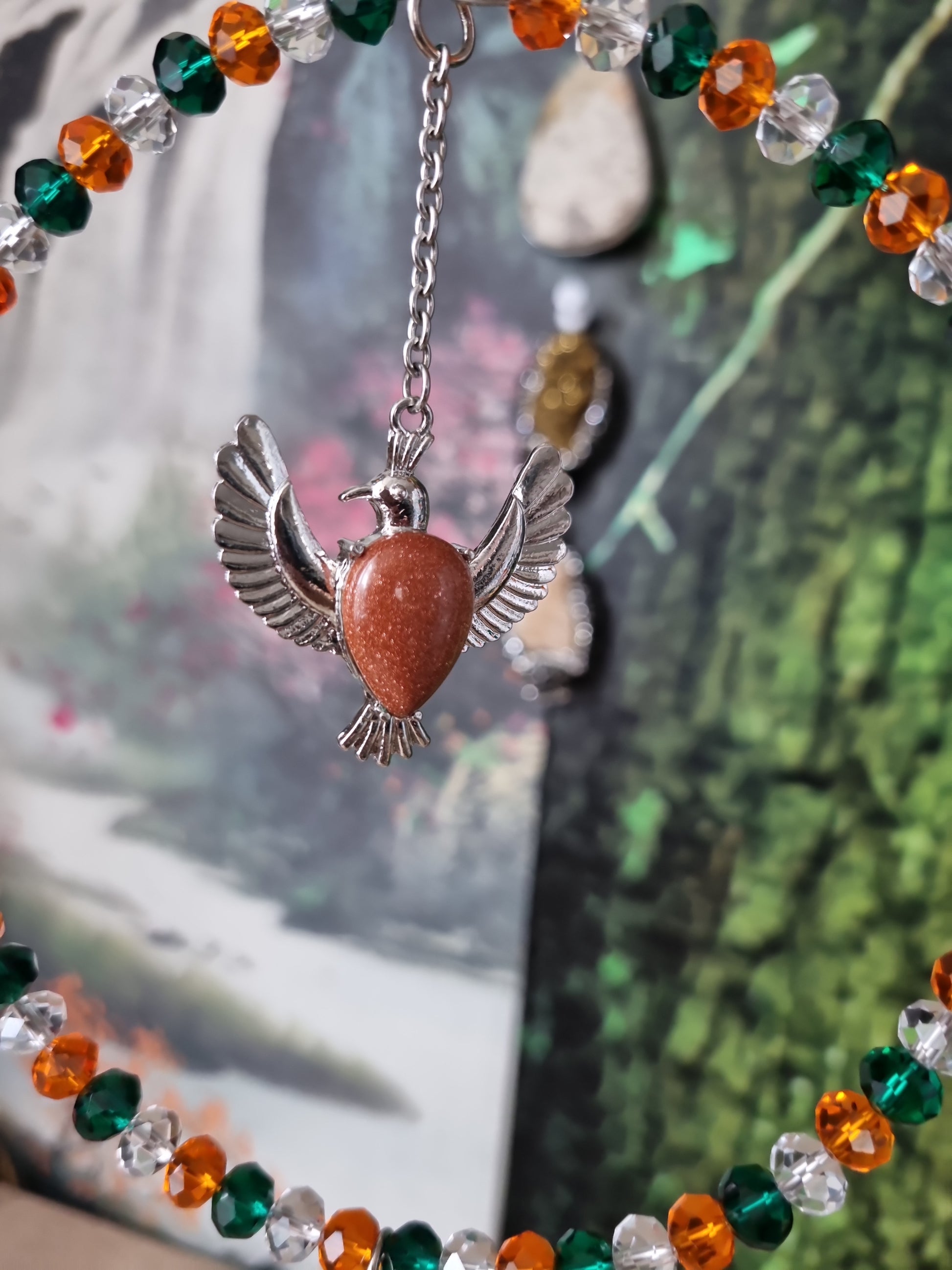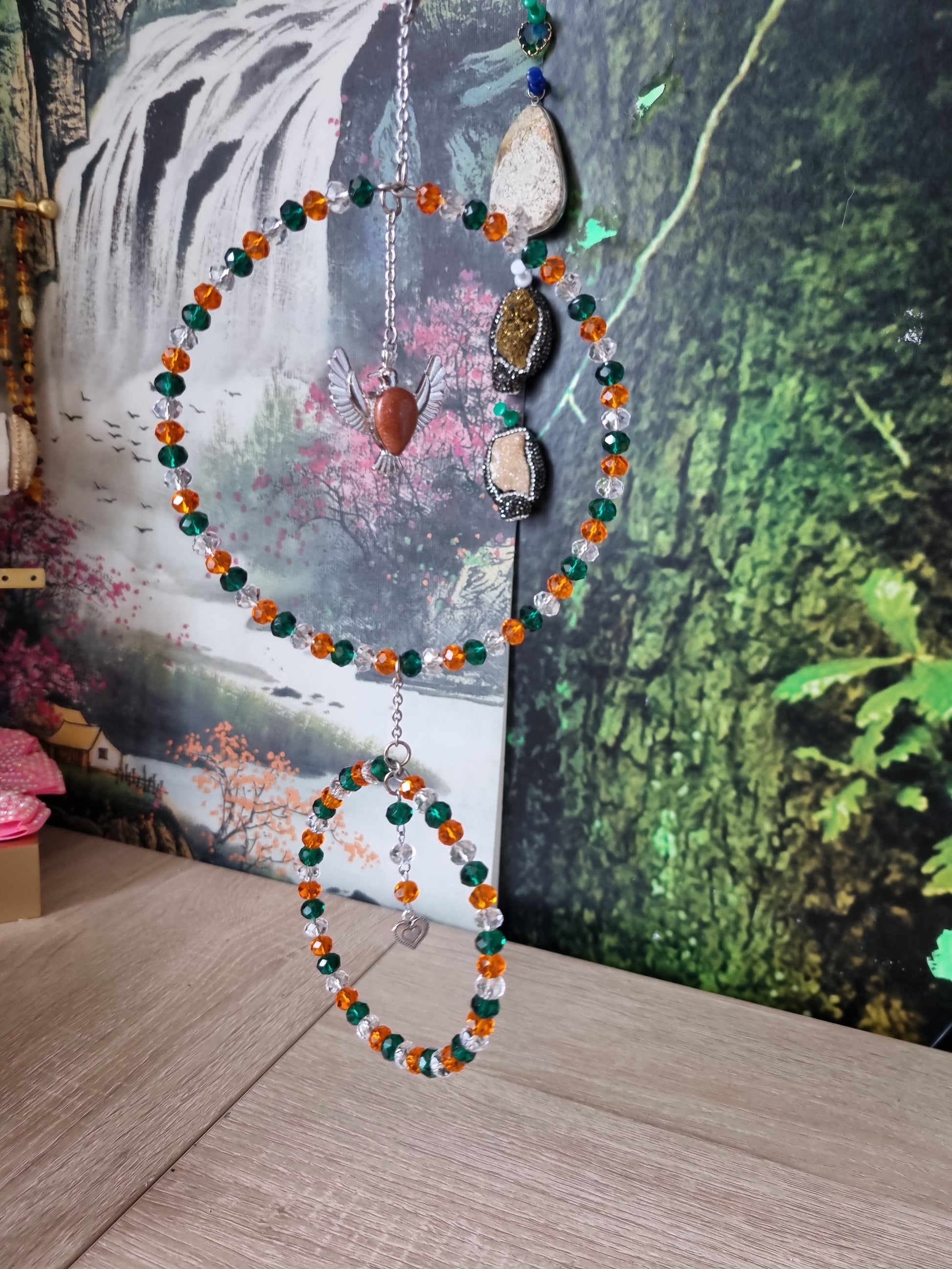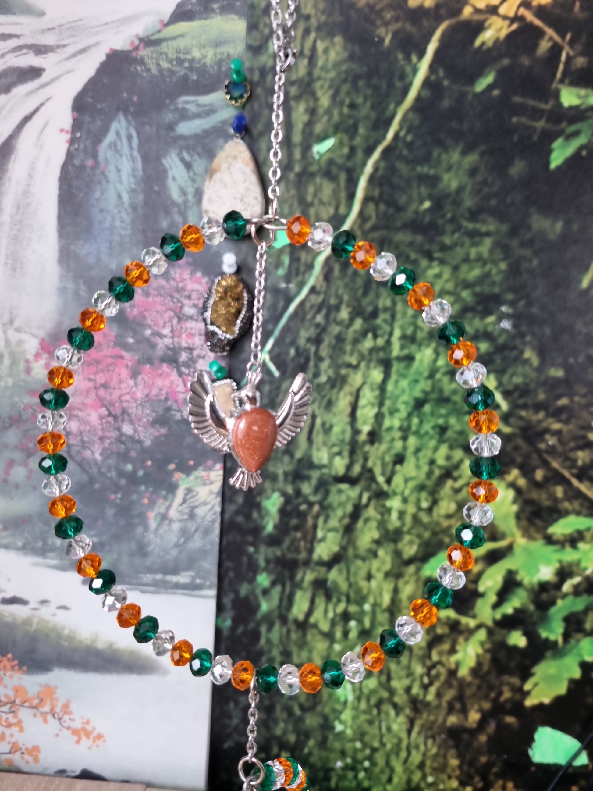 Handmade sun catcher glass beads and with pendant natural Stone goldstone