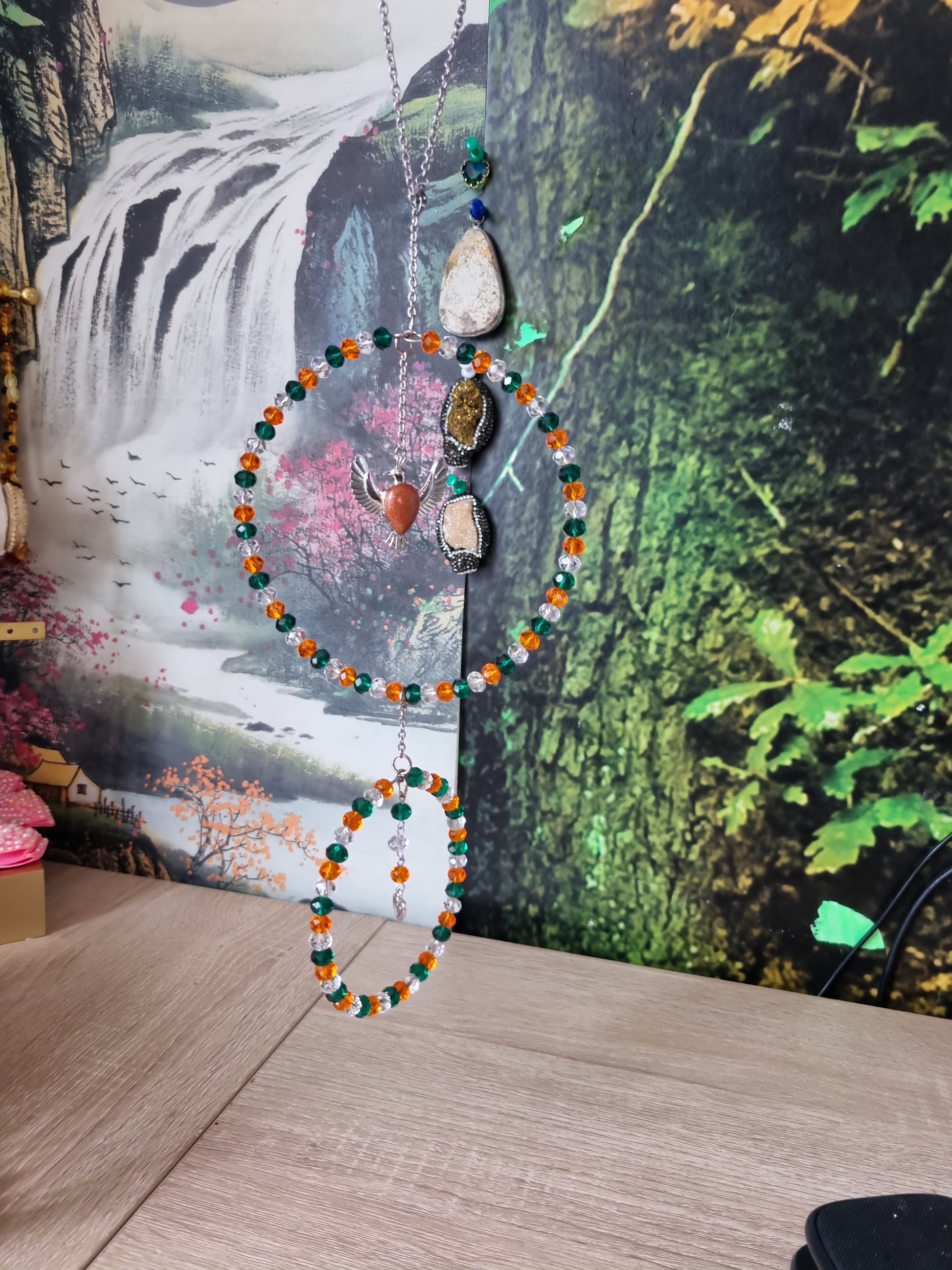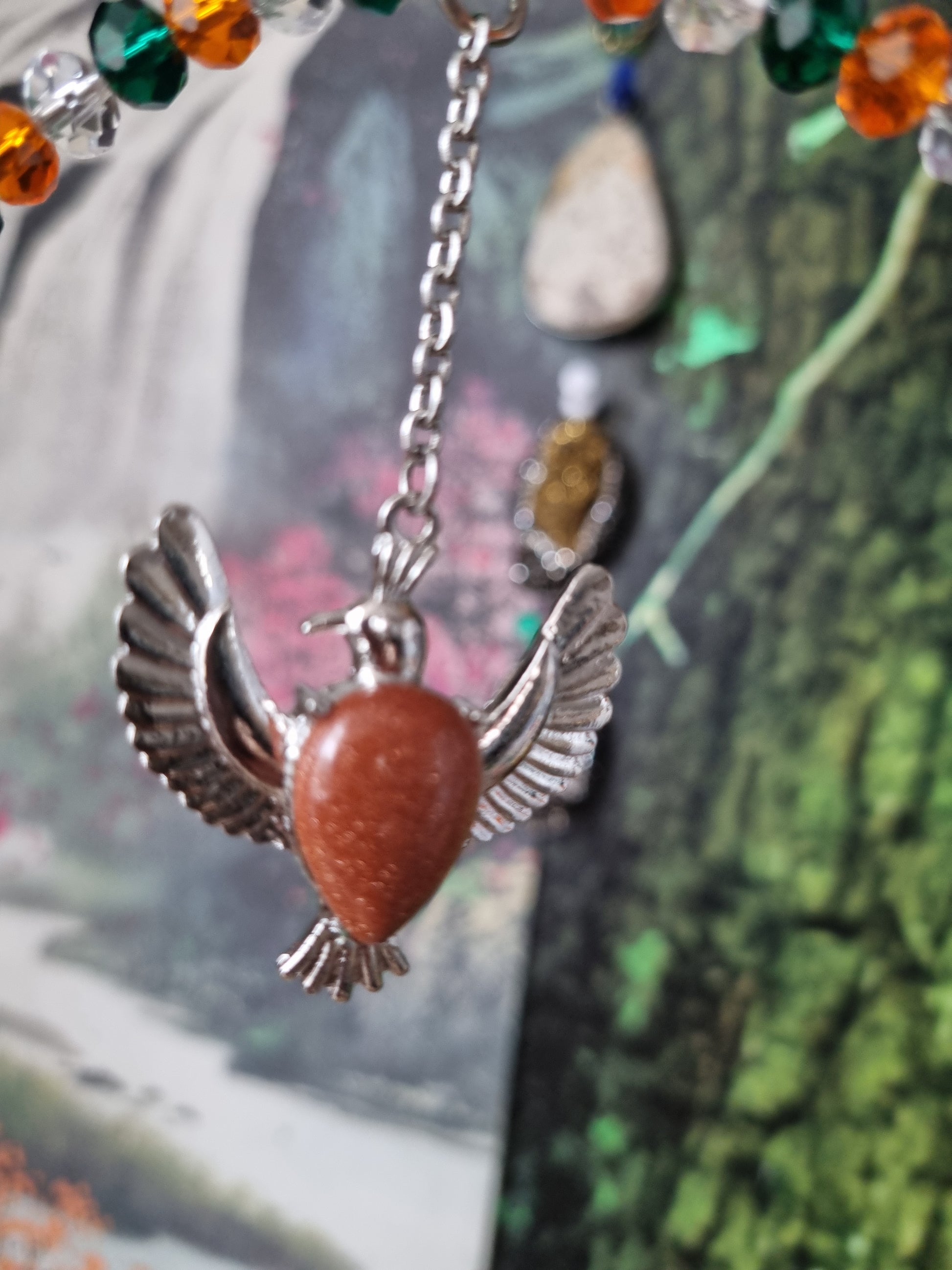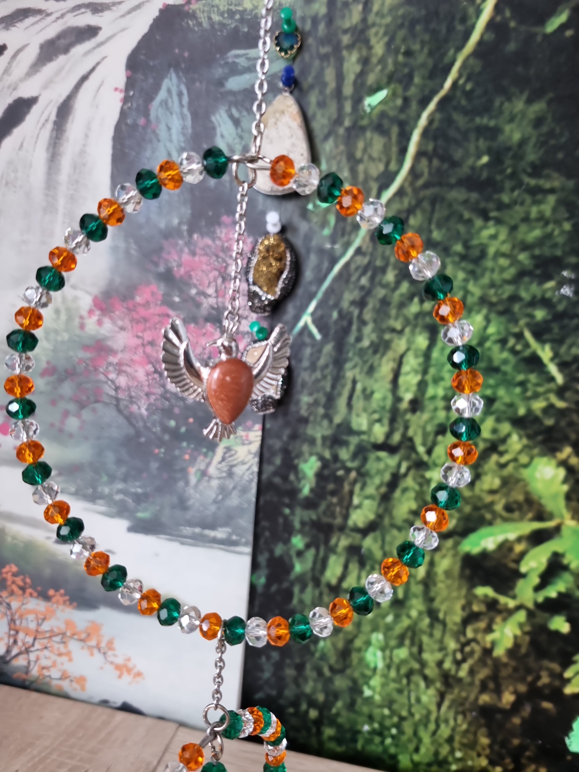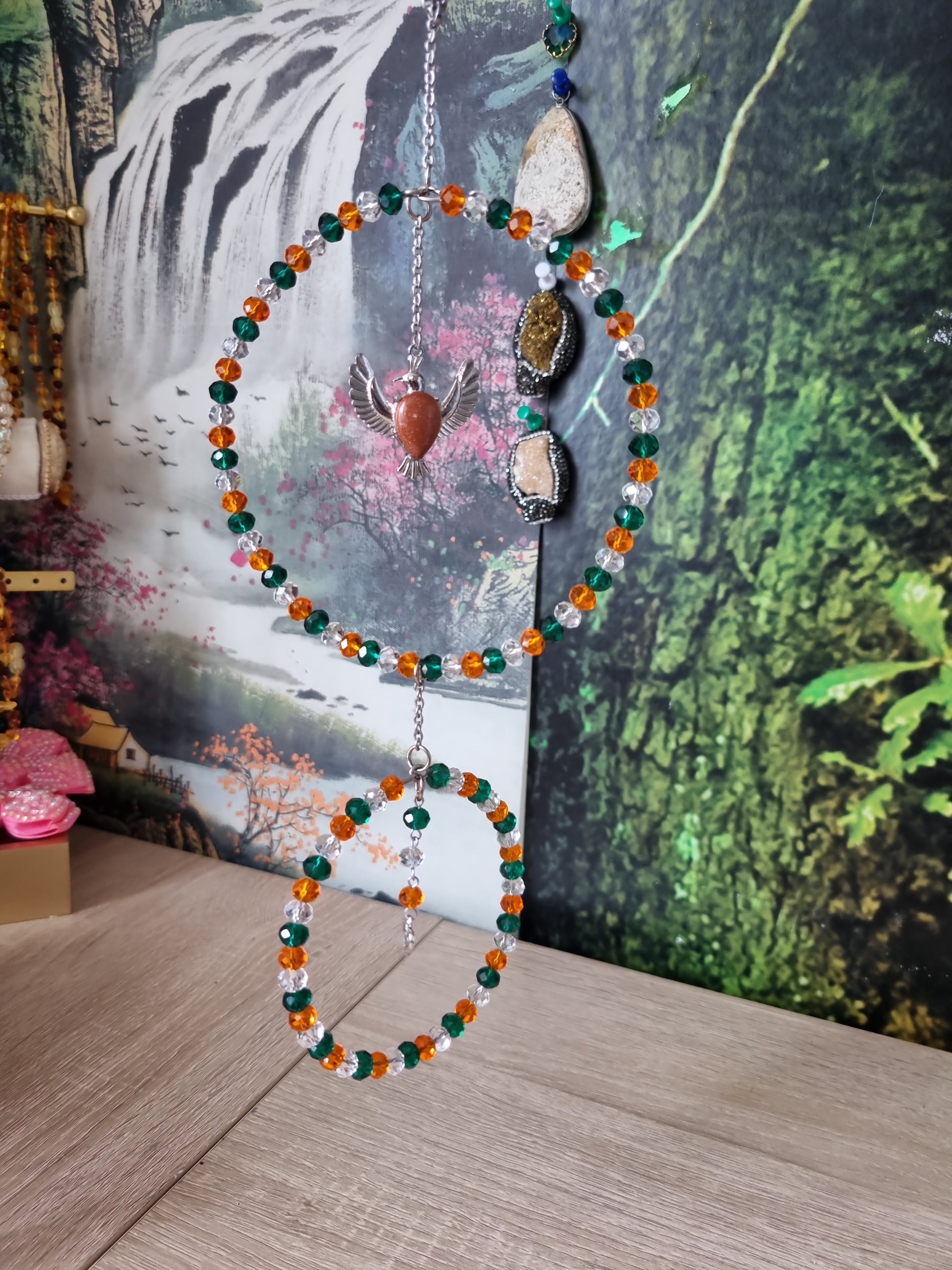 Handmade sun catcher glass beads and with pendant natural Stone goldstone