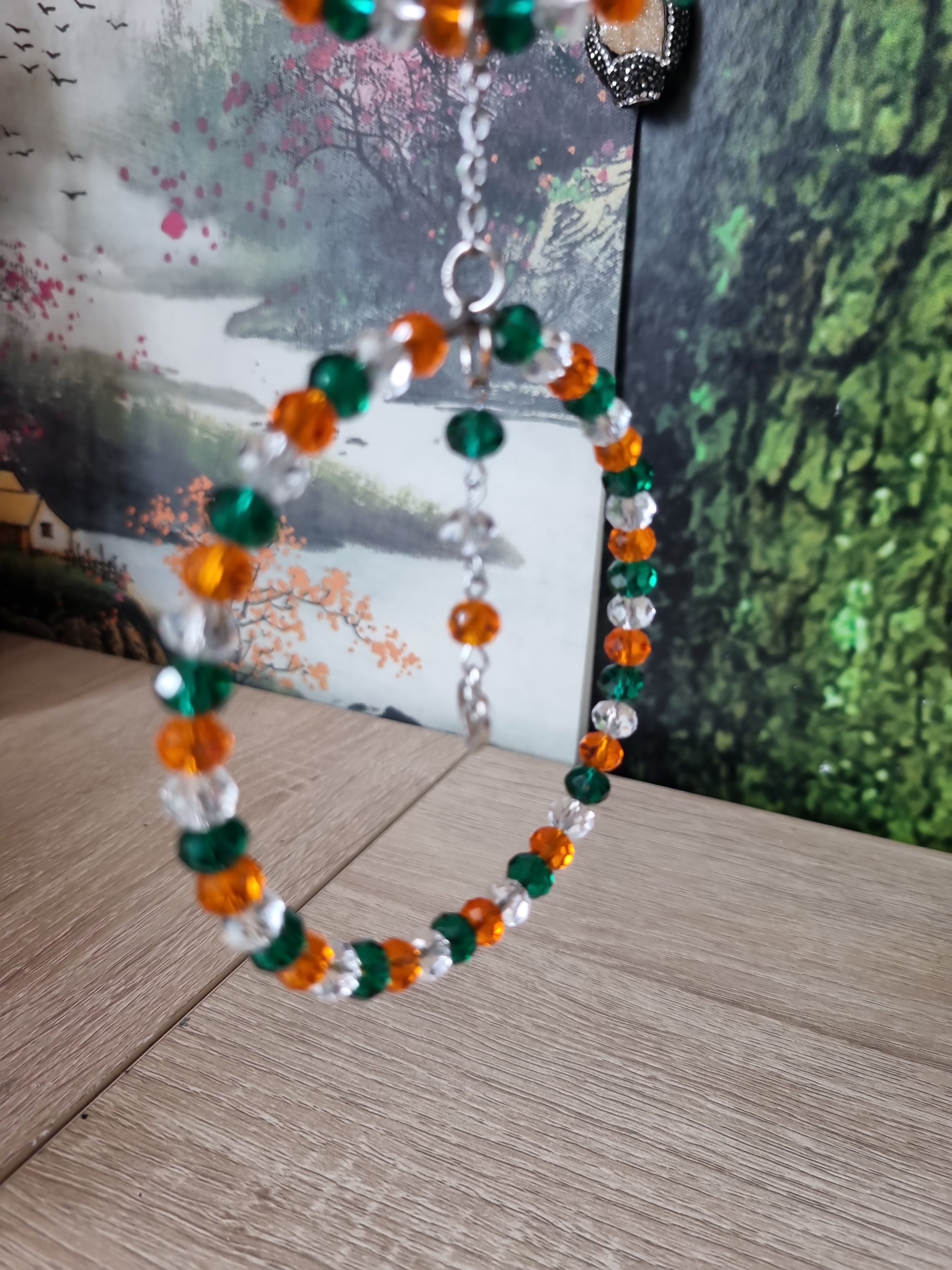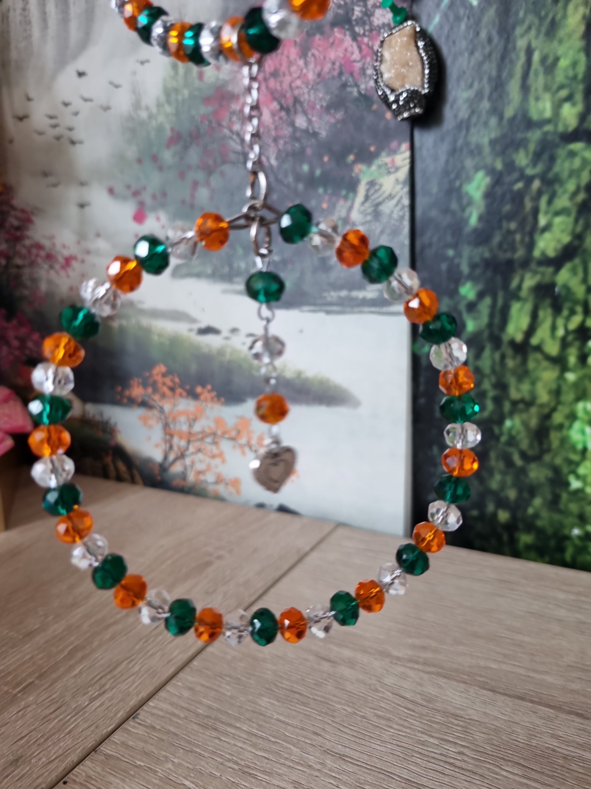 Double sun catcher glass beads faceted beautiful color sparkling green, orange white