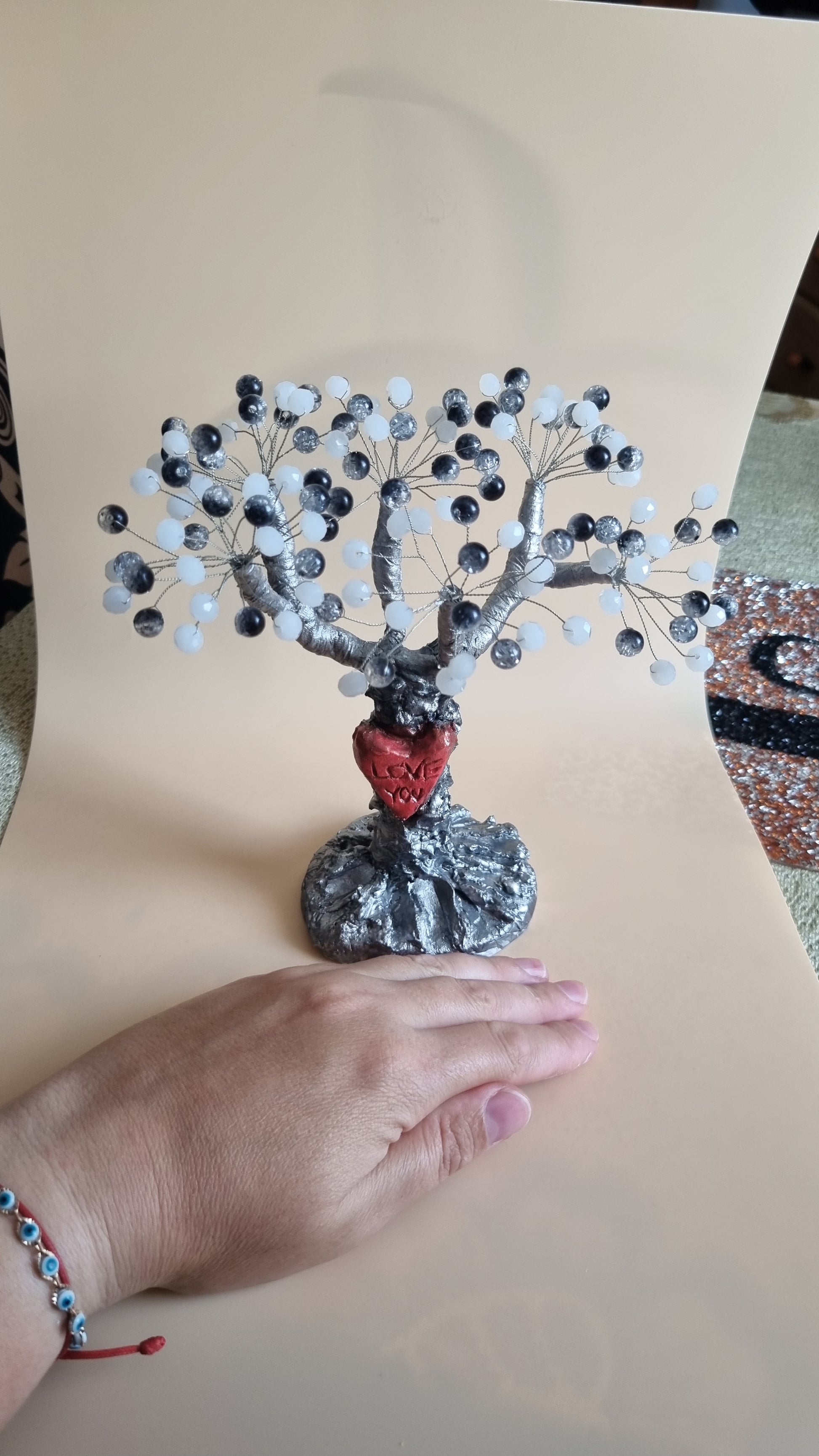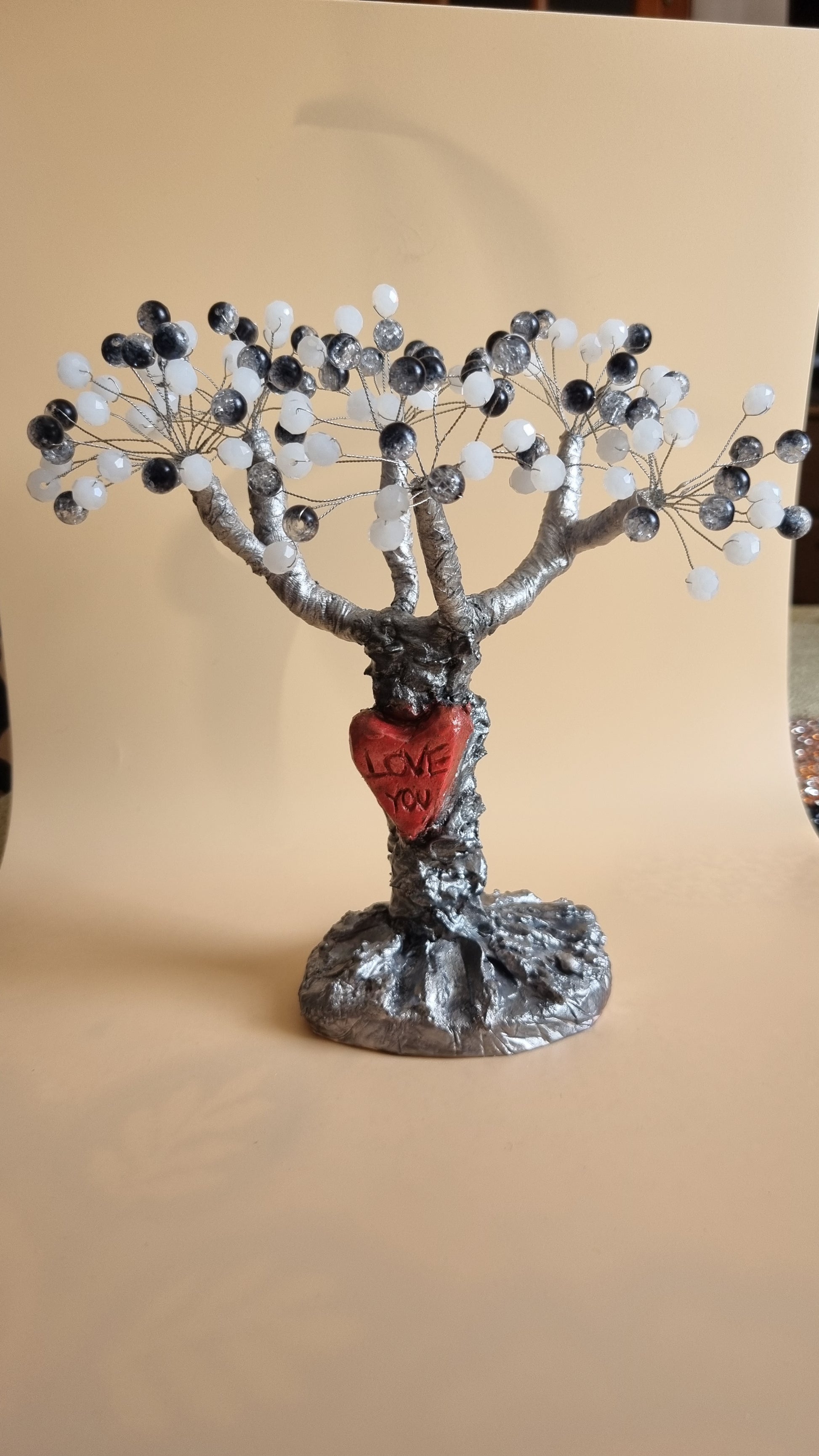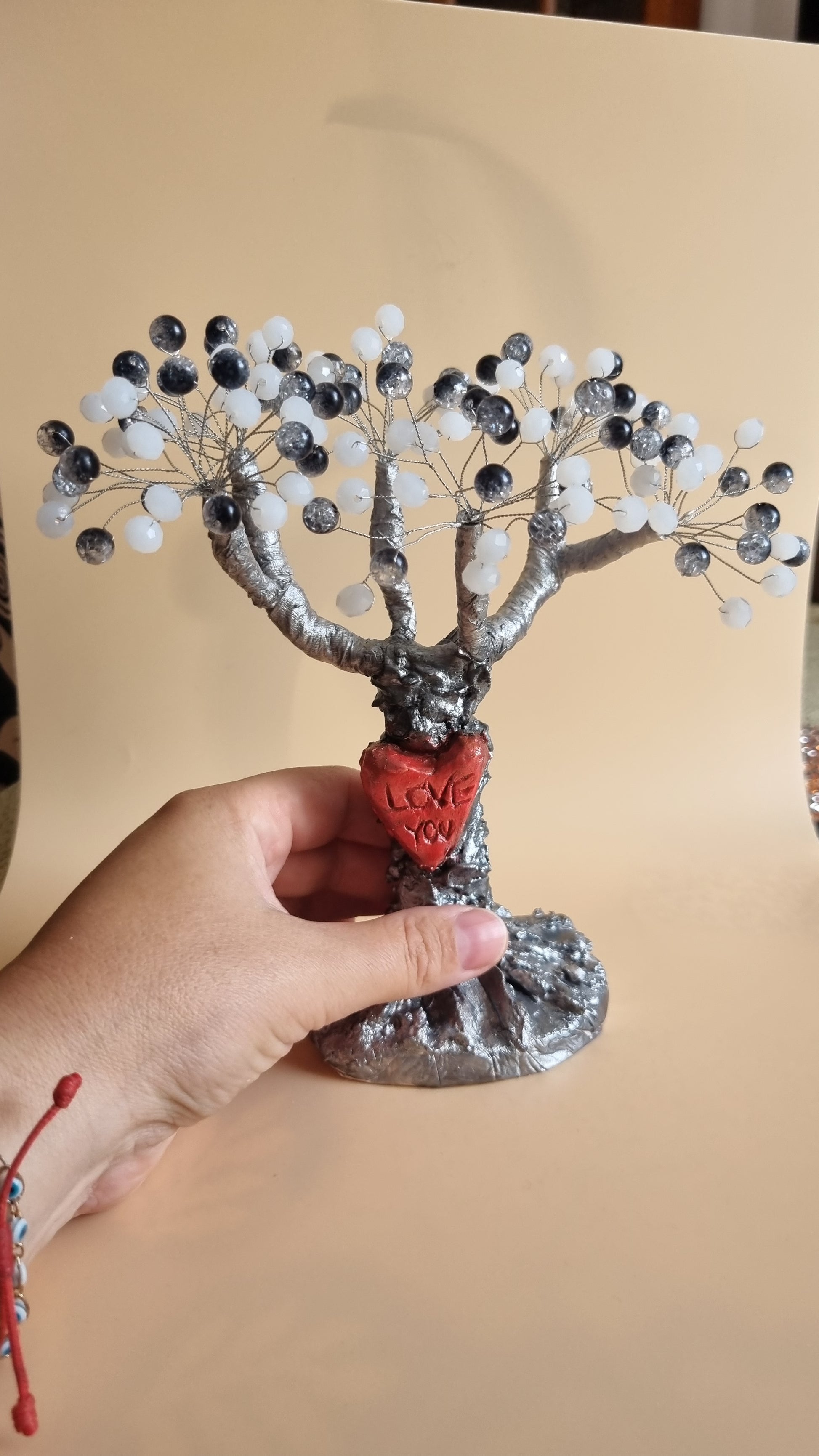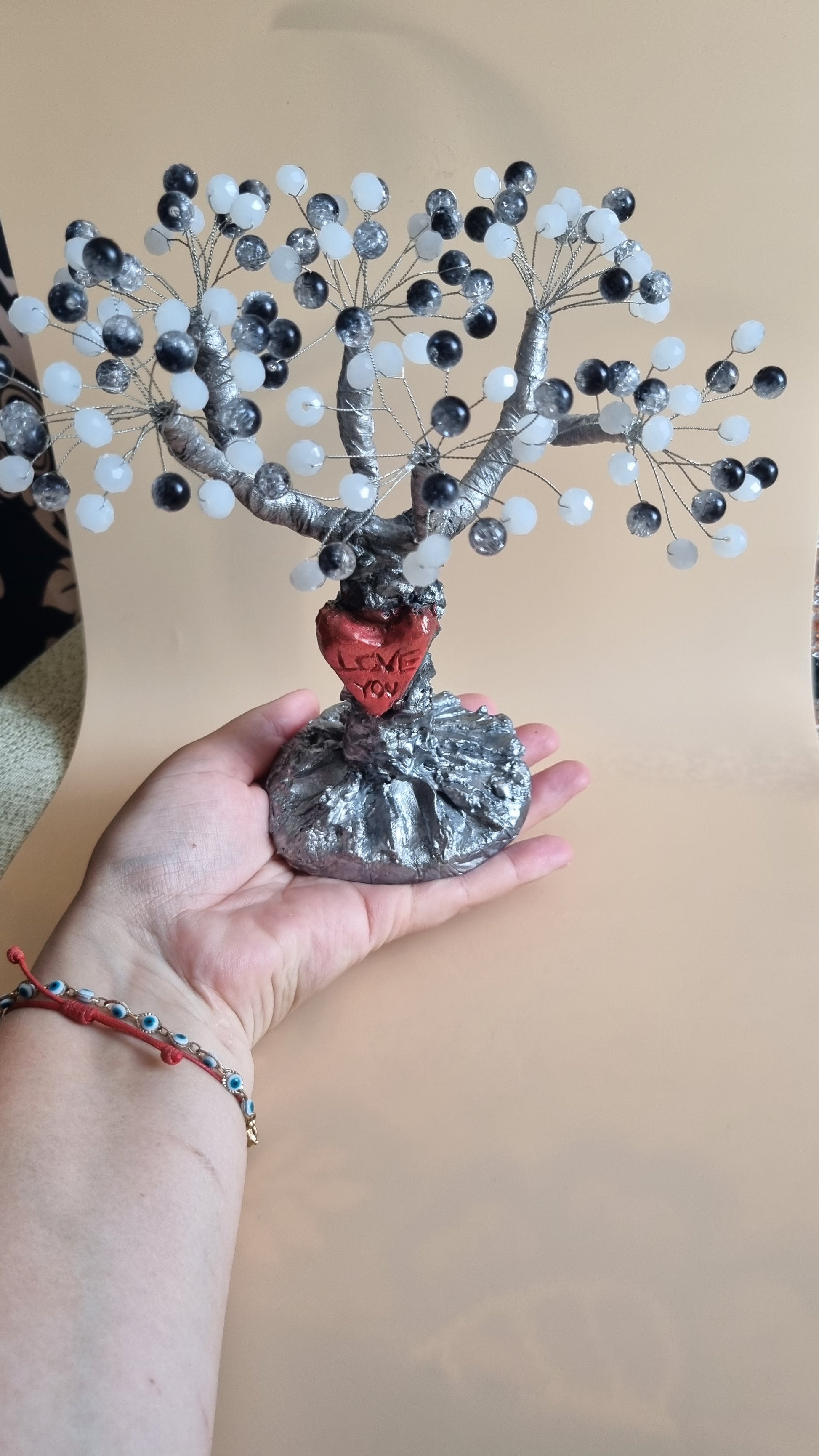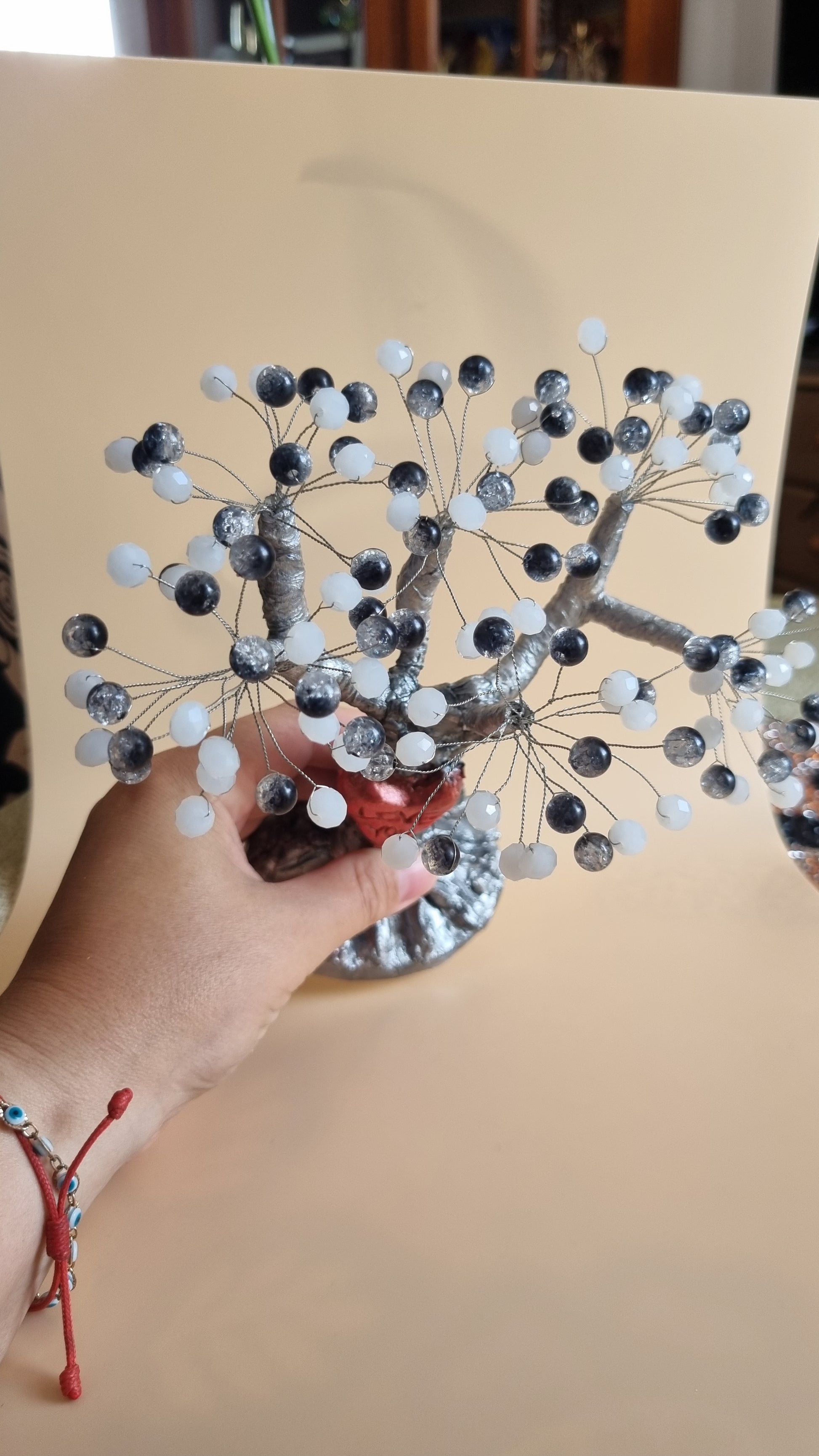 Handmade tree from glass and acrylic beads very beautiful decoration in the home