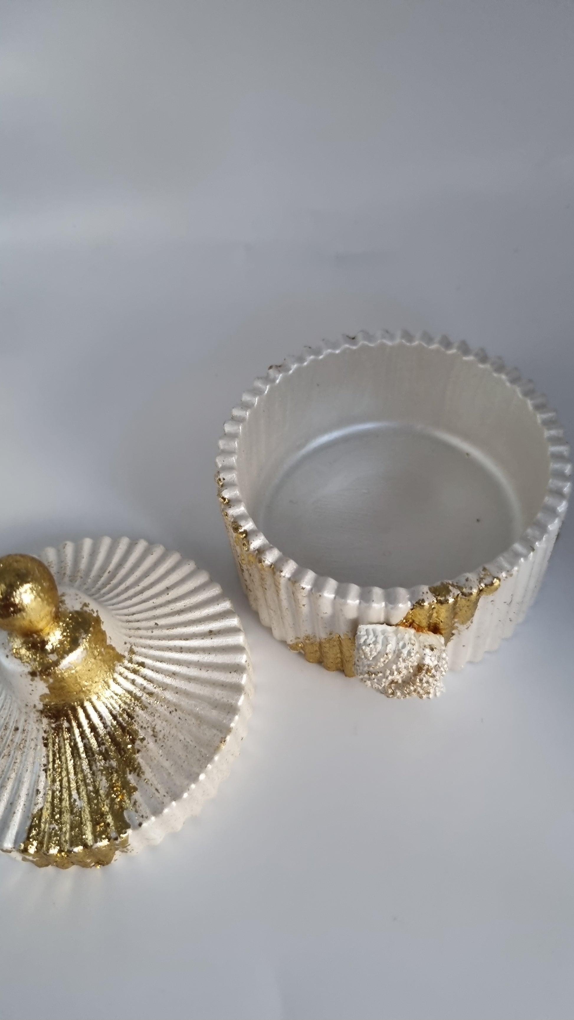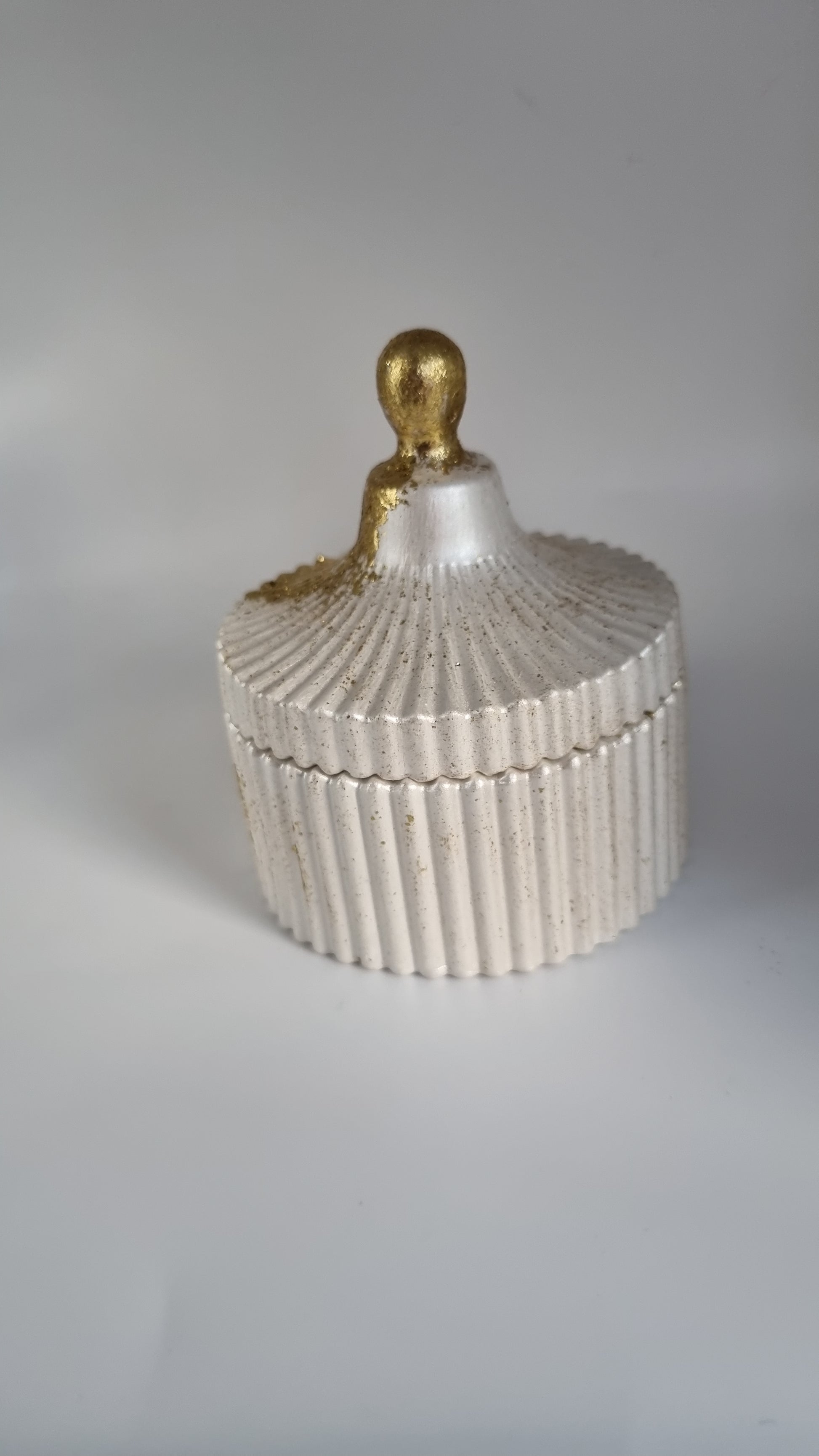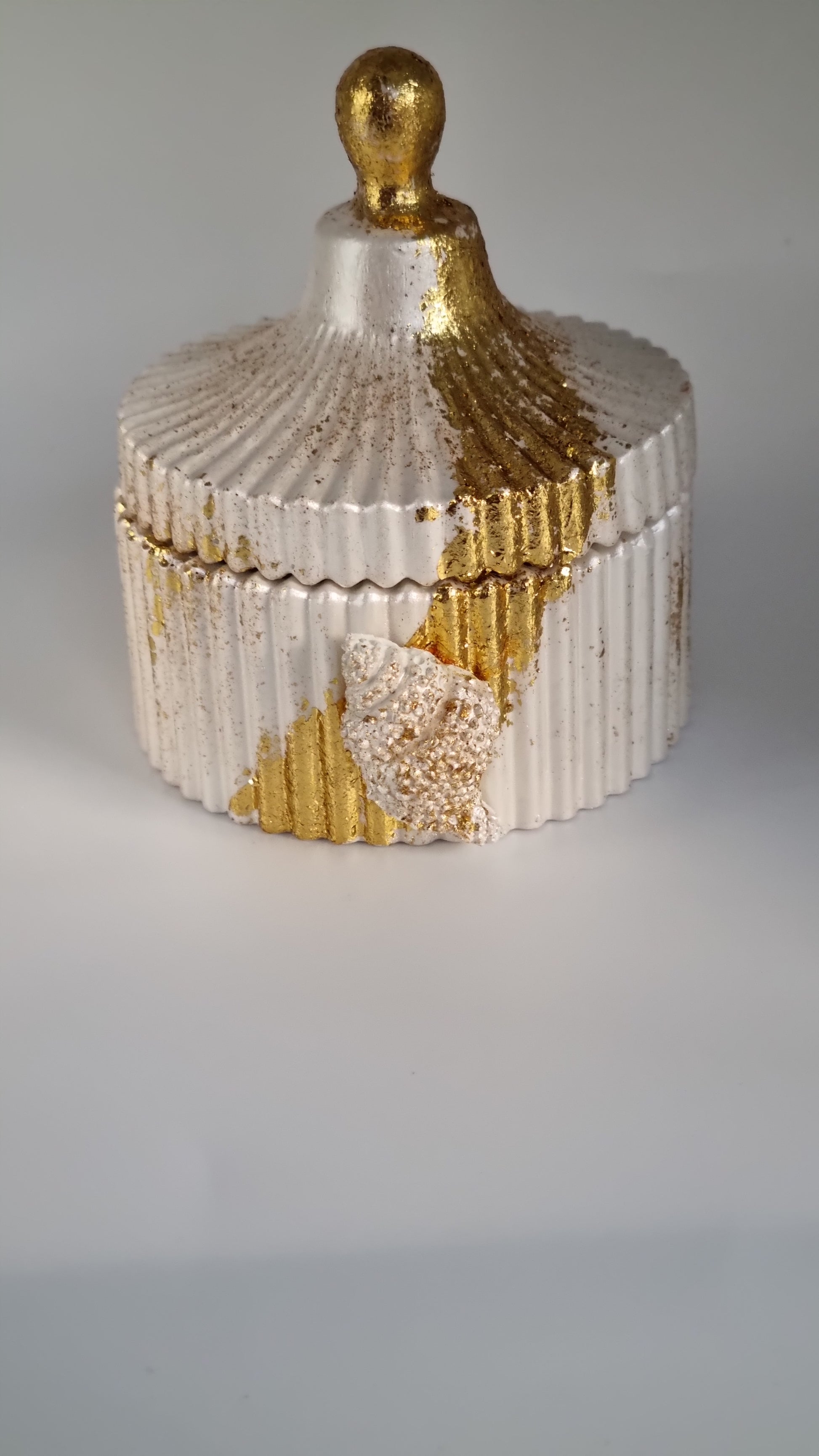 Jar from gypsum handmade very beautiful white pearl metallics color gold colour