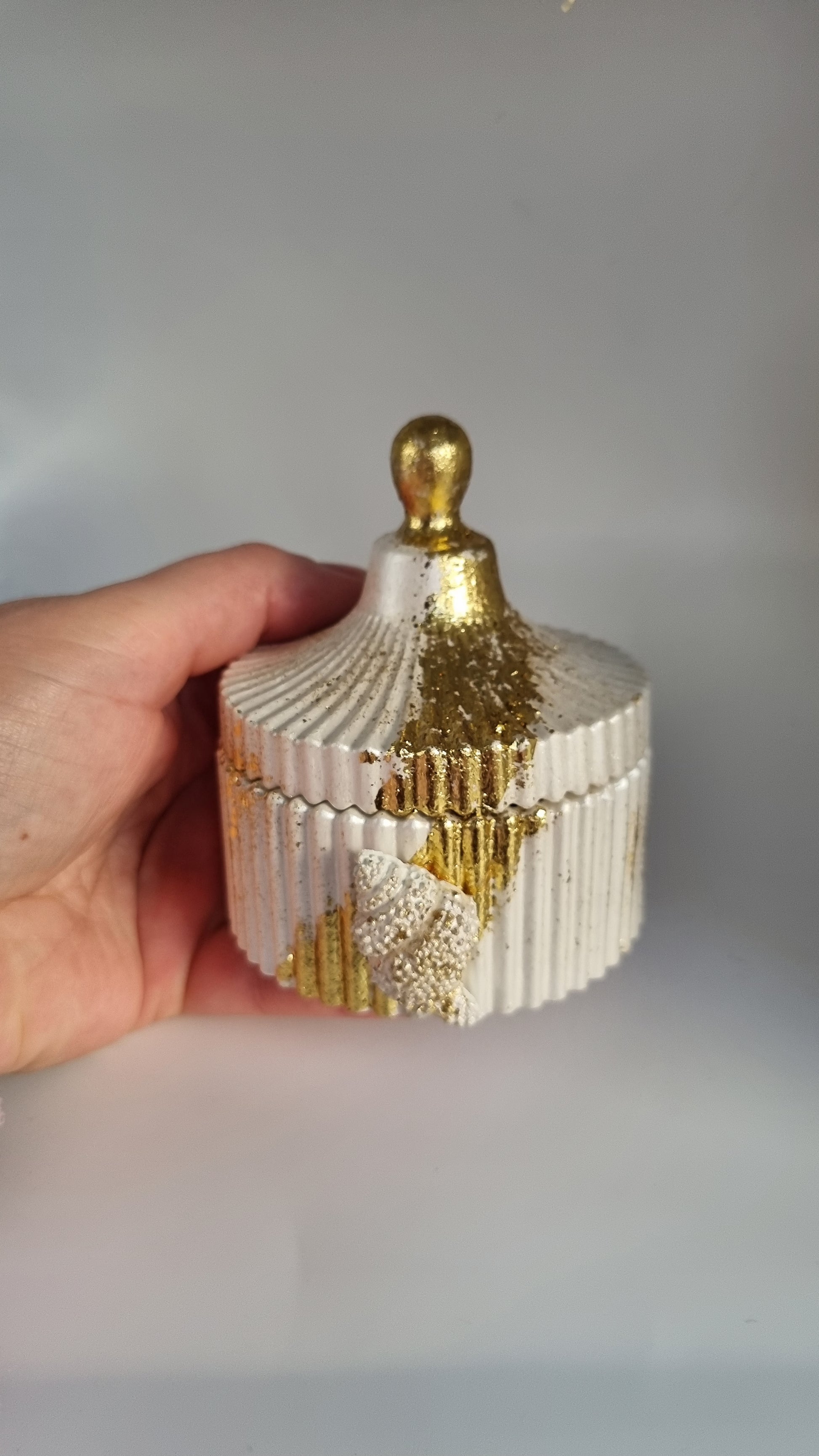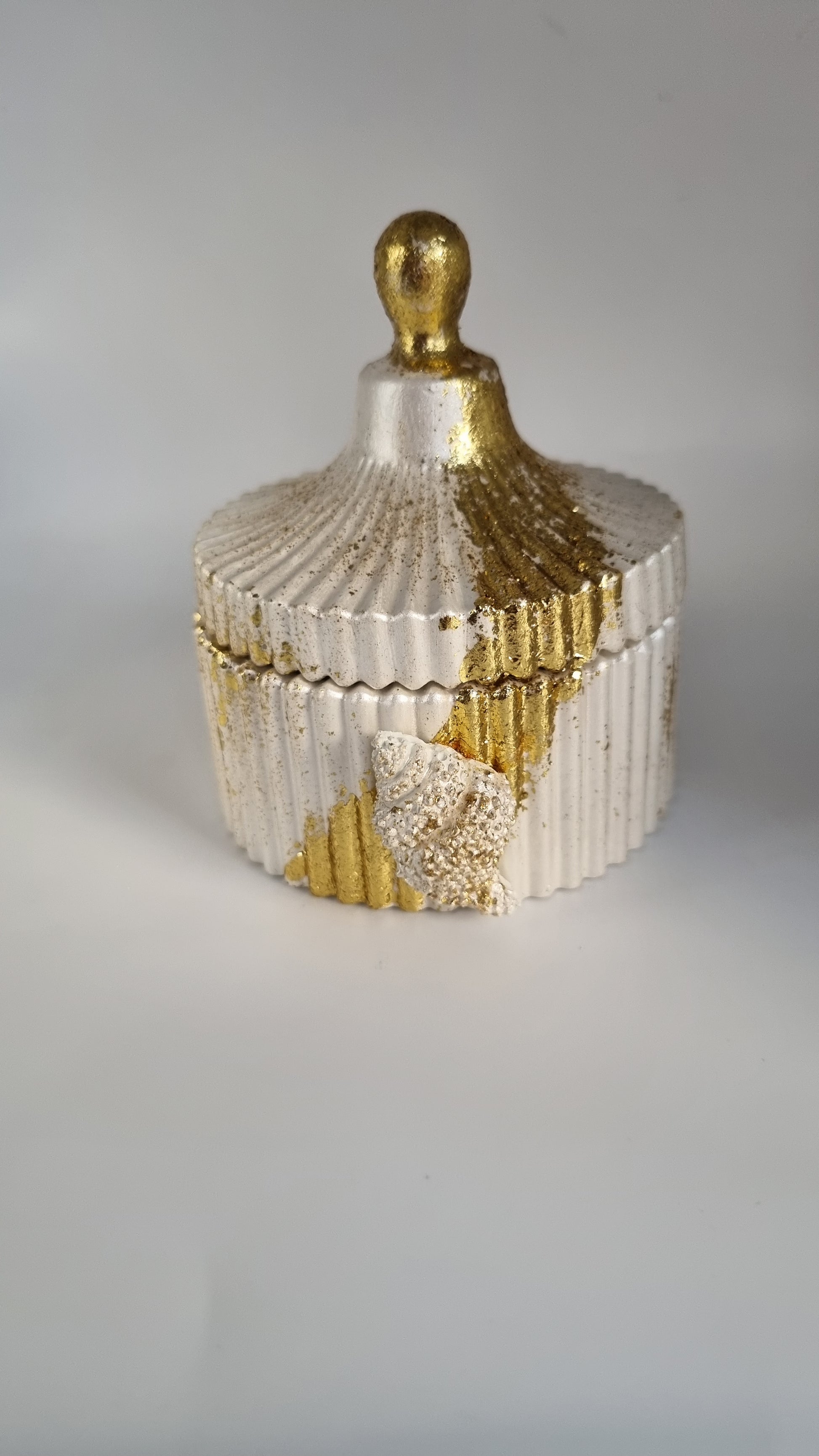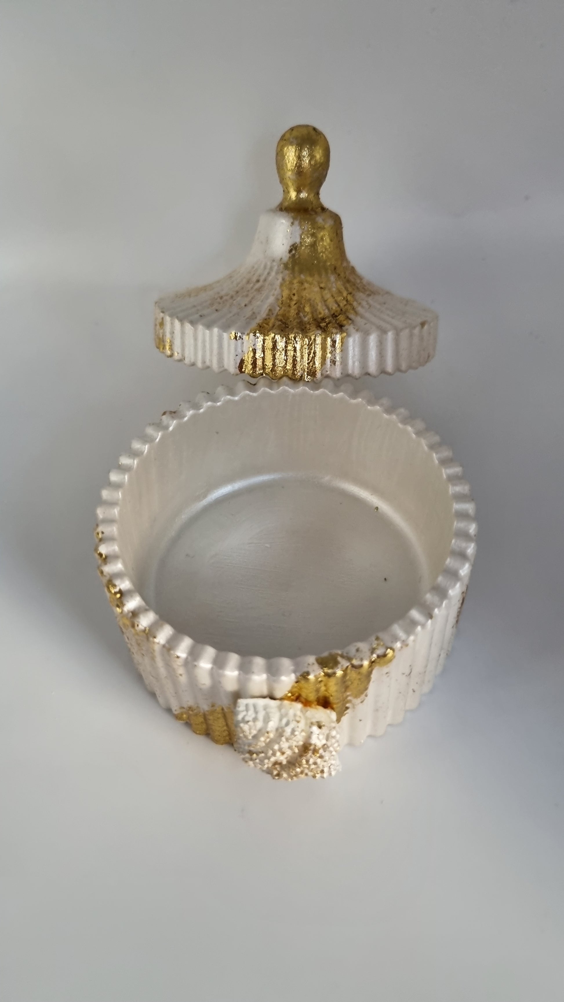 Jar from gypsum handmade very beautiful white pearl metallics color gold colour